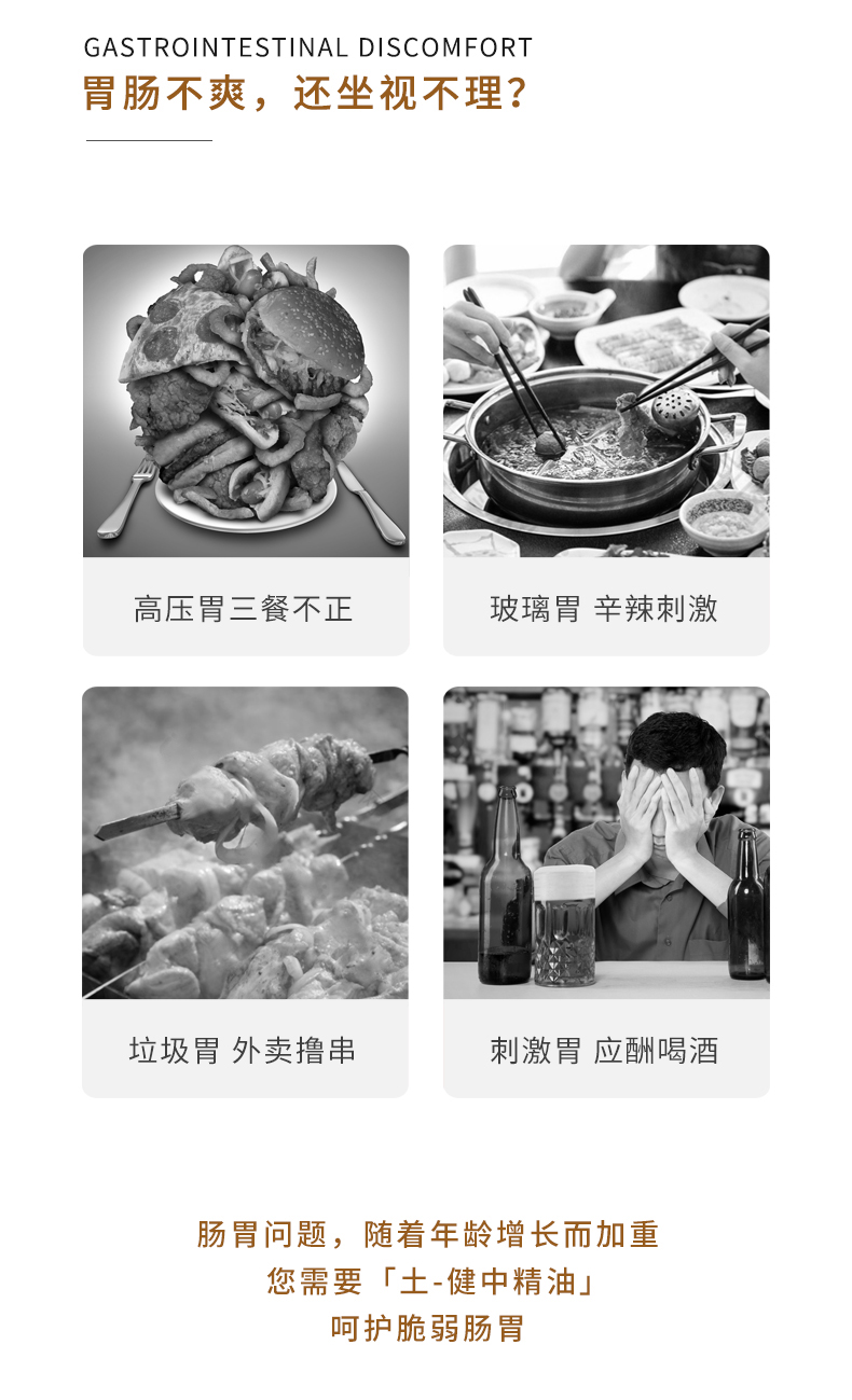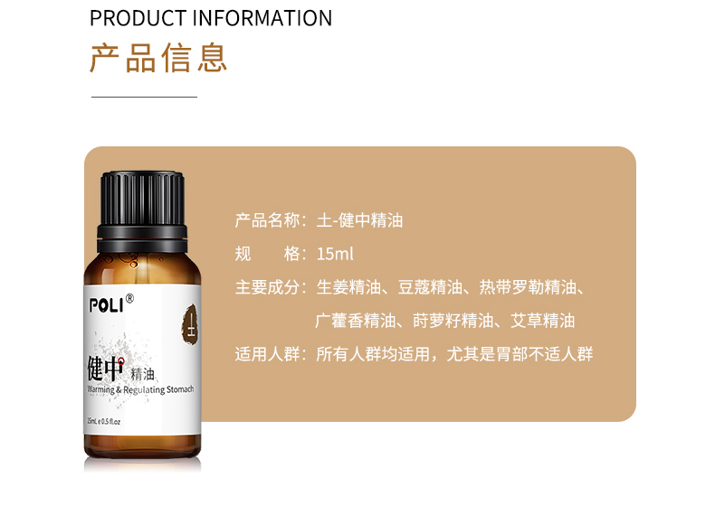 土-健中复方精华油原料 缓解胃部不适精油 颇黎按摩复方精油批发