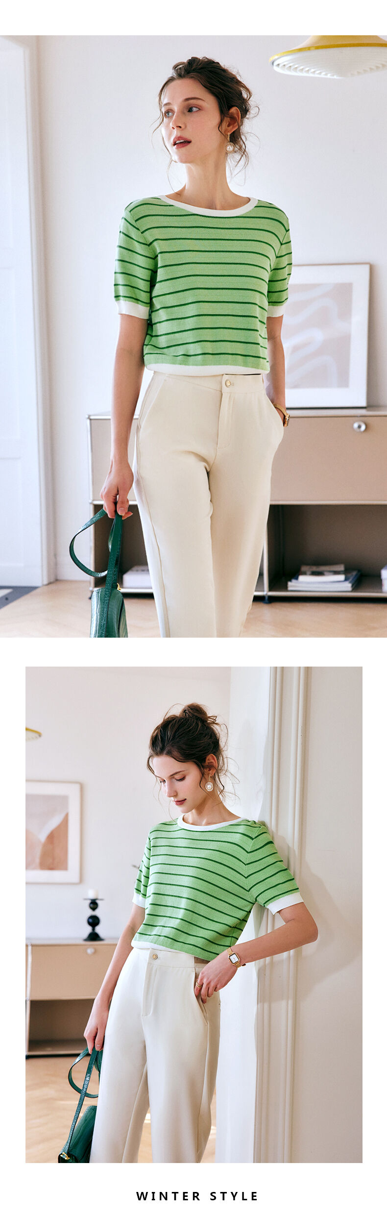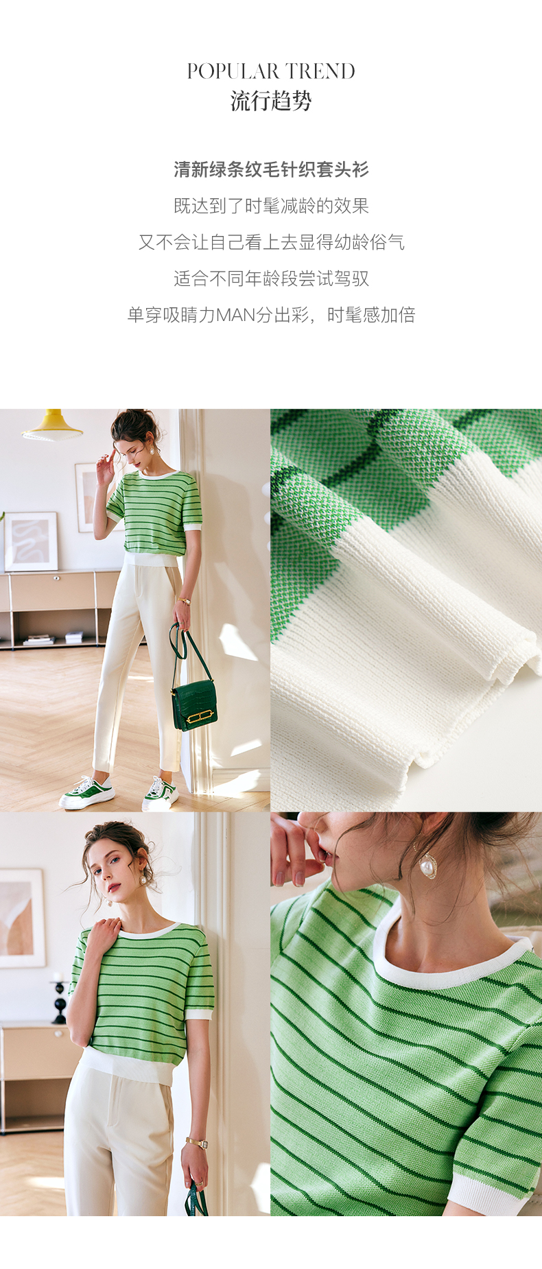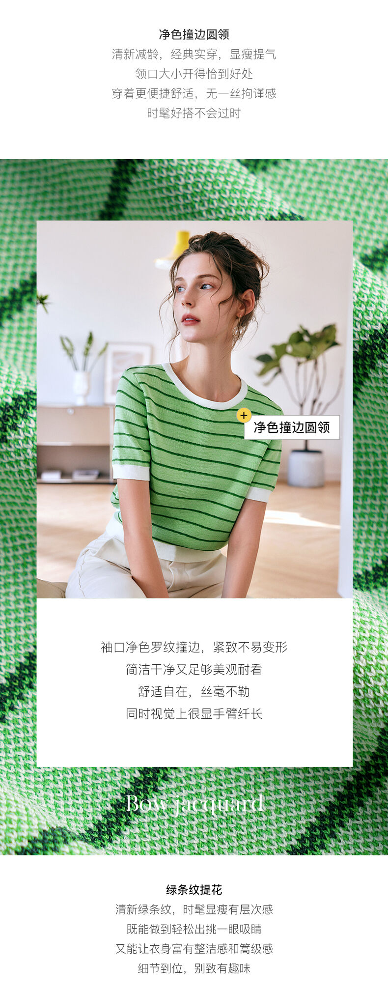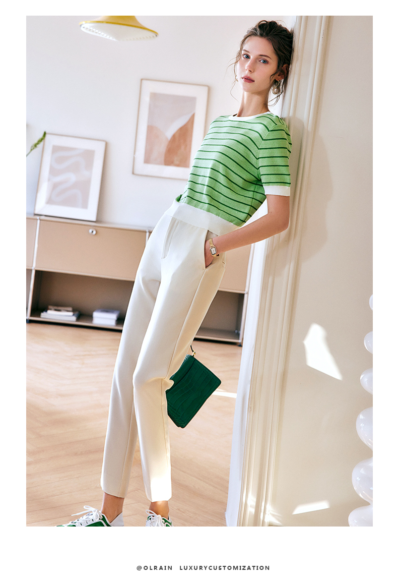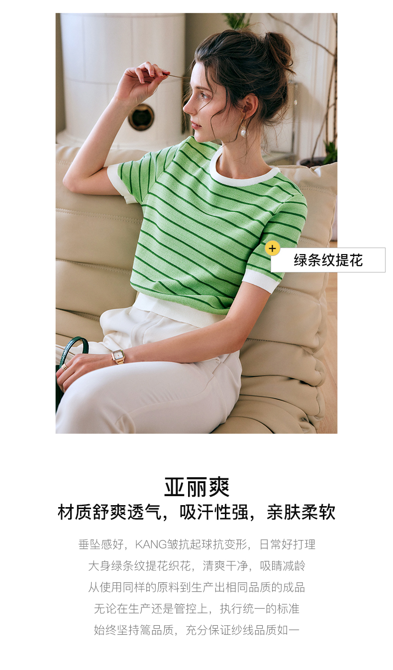 OLrain法式高级穿搭条纹针织衫女夏季2022年新款圆领修身薄款上衣