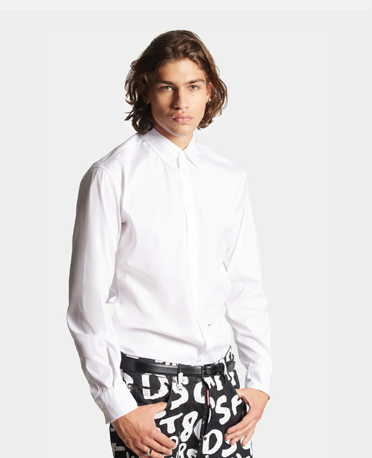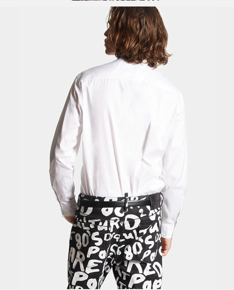 【一】DSQUARED2 男士字母徽标刺绣休闲长袖衬衫 白色 S74DM0659 S44131 100