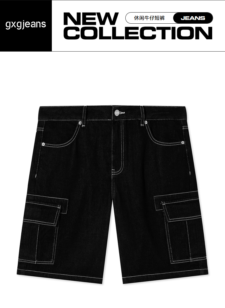 gxg.jeans男装夏季牛仔短裤男潮流明线工装休闲裤JD1250336D
