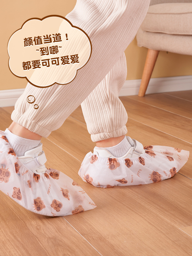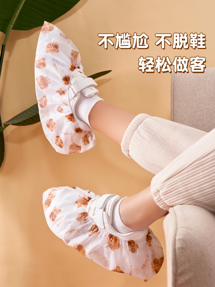 「9.9到手50只!加厚耐磨」一次性无纺布印花鞋套 加厚耐磨室内防滑居家日用待客均码厚鞋子脚套