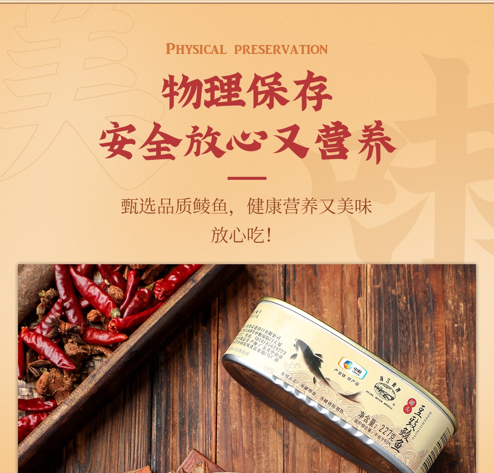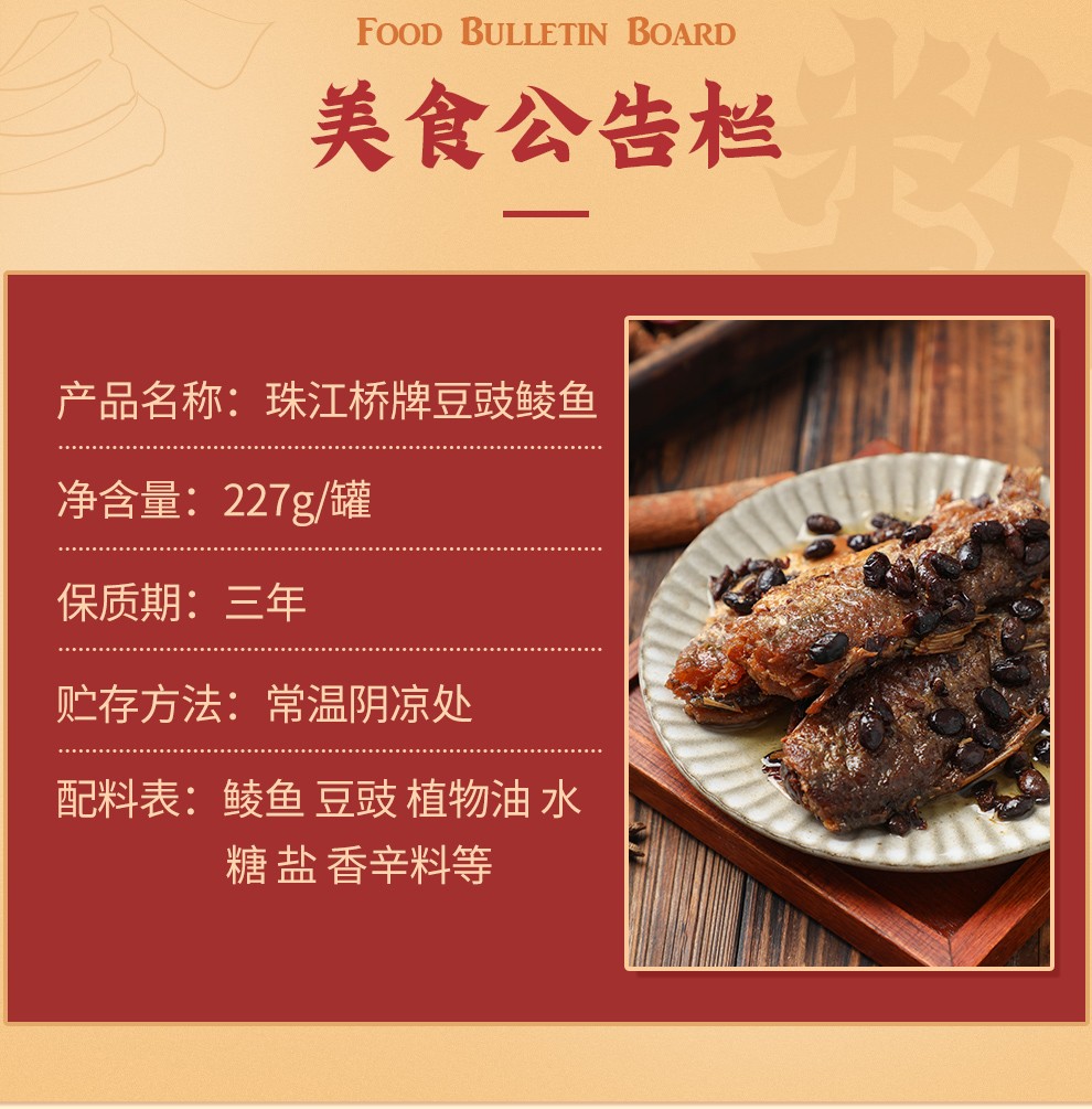 中粮珠江桥豆豉鲮鱼罐头227g*3罐长期储备食品下酒菜