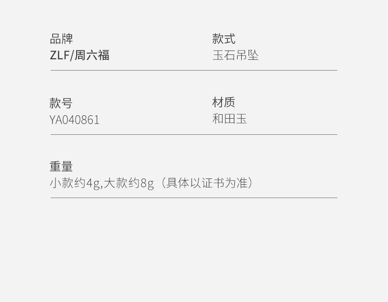 周六福 平安扣和田玉吊坠 白玉吊坠 玉石 佳礼