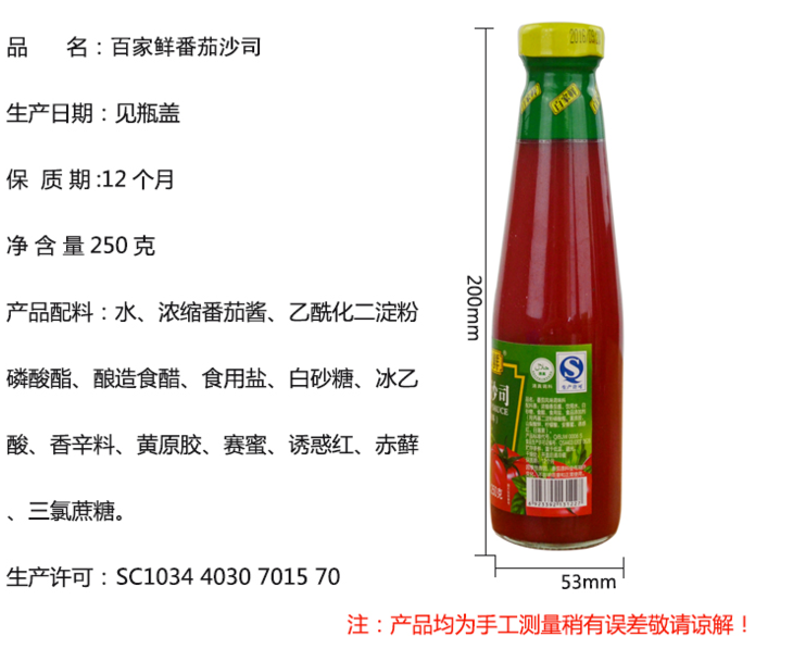 百家鲜番茄沙司250g【团购价2.76元/瓶】