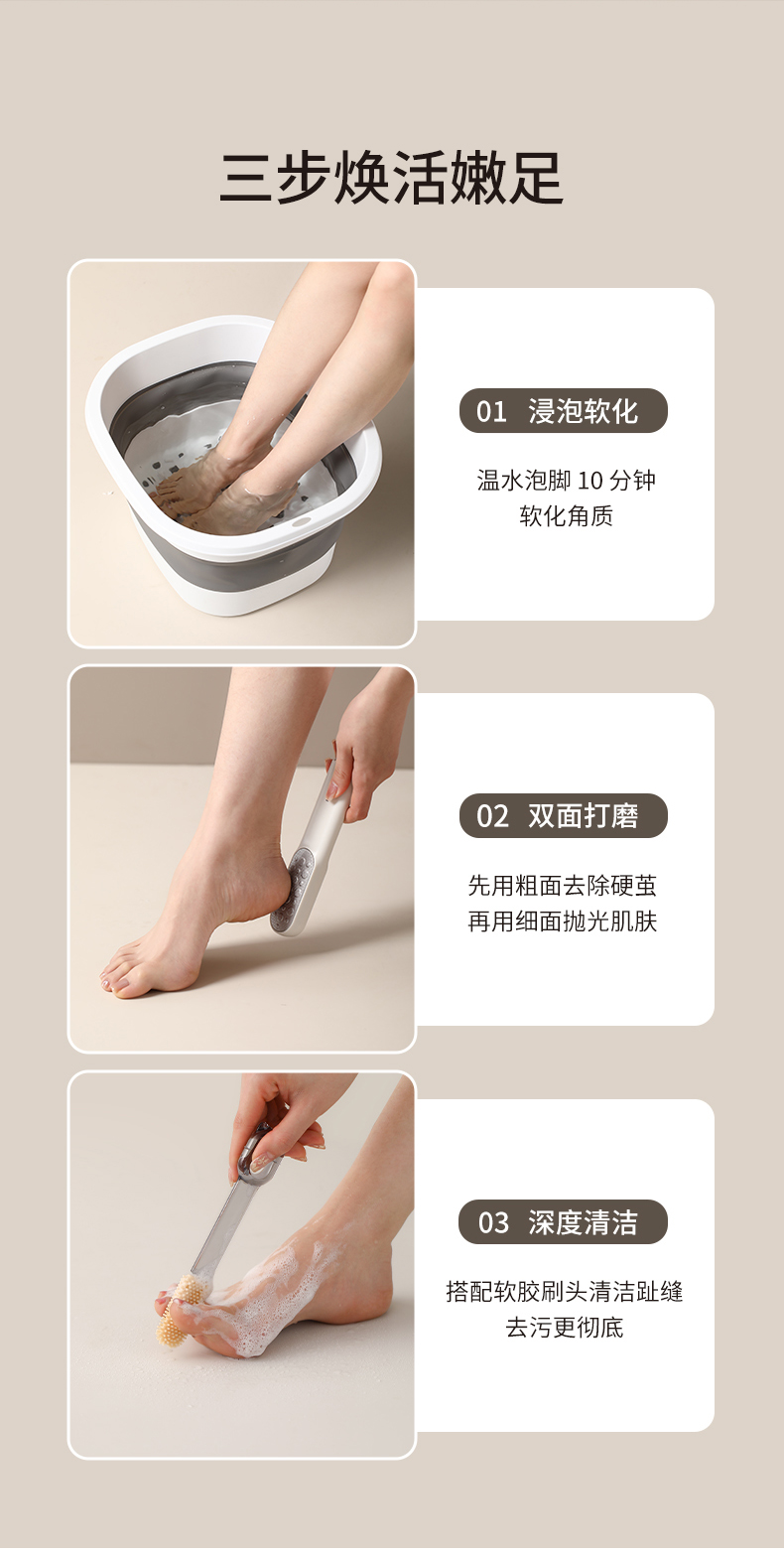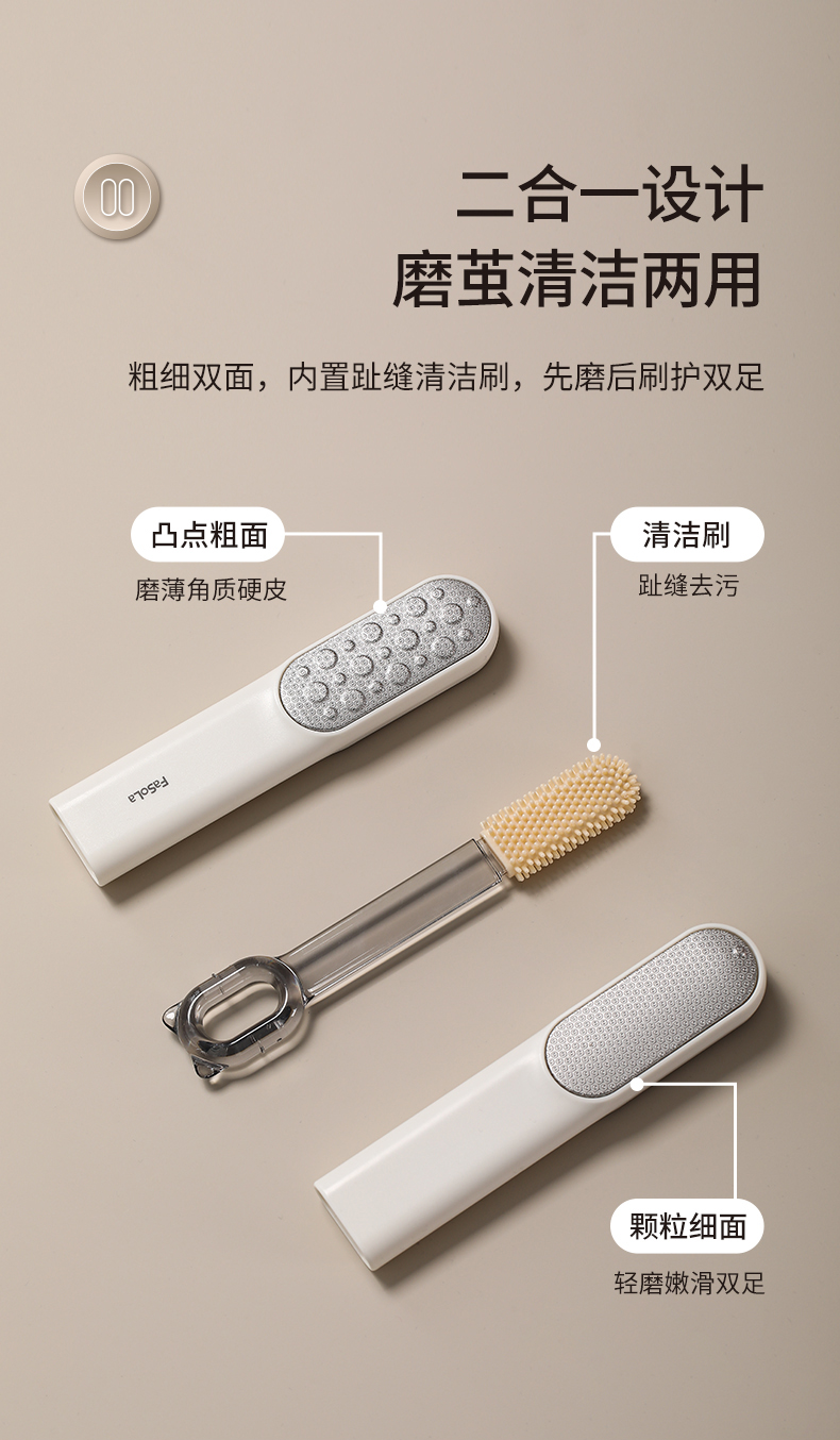 FaSoLa磨脚神器脚底老茧脚后跟去死皮磨脚石多功能脚缝脚丫清洗刷搓脚板