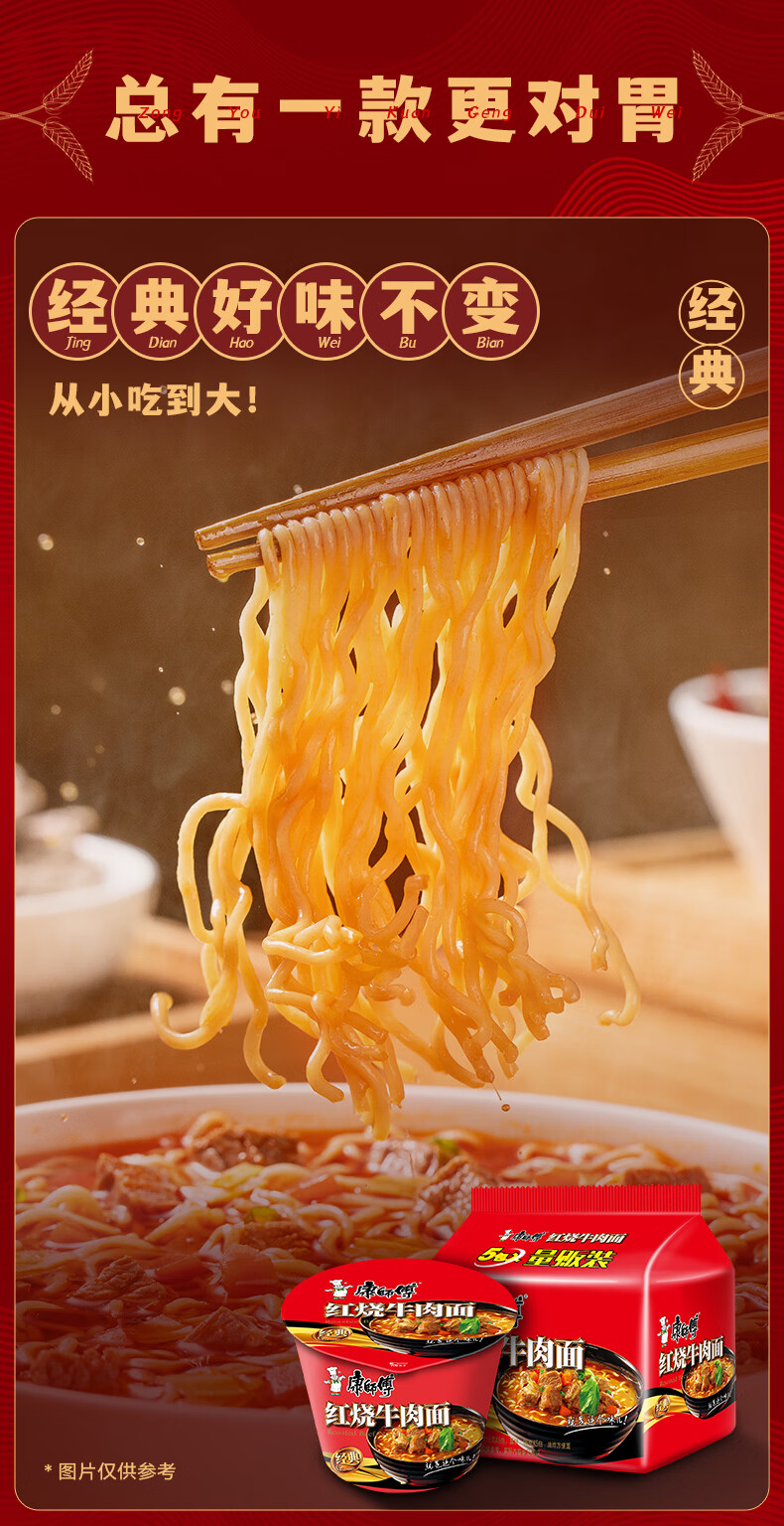 康师傅红烧牛肉面 85g*12桶 方便面整箱 泡面桶装 速食 张艺兴IP装