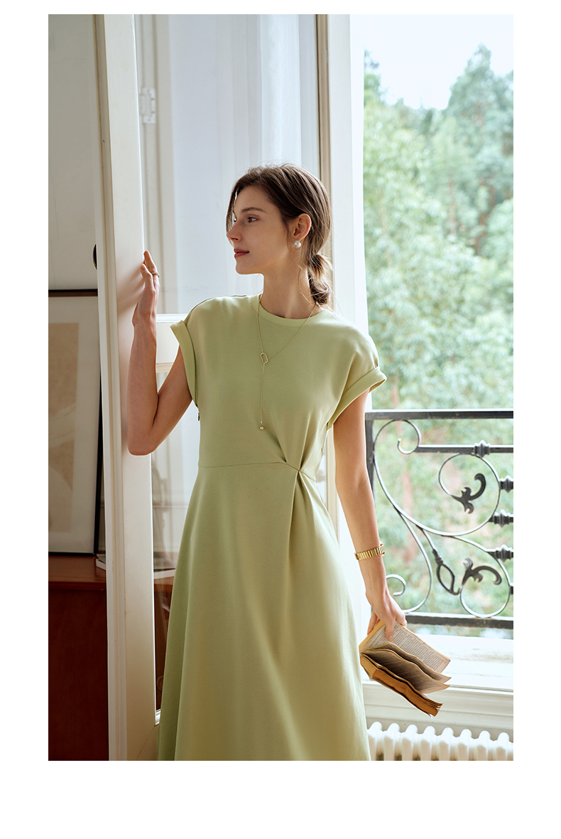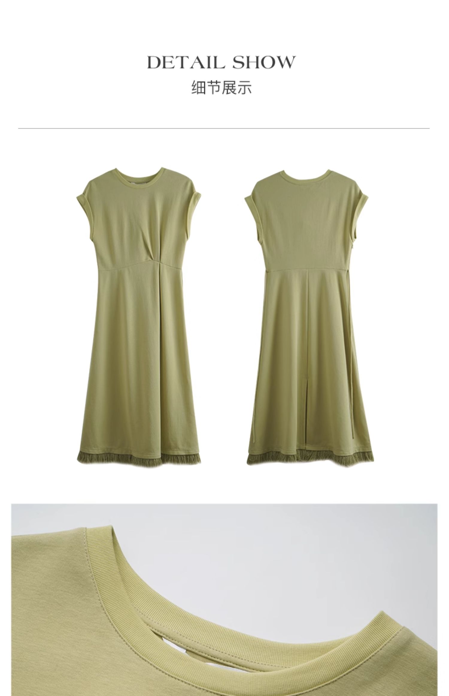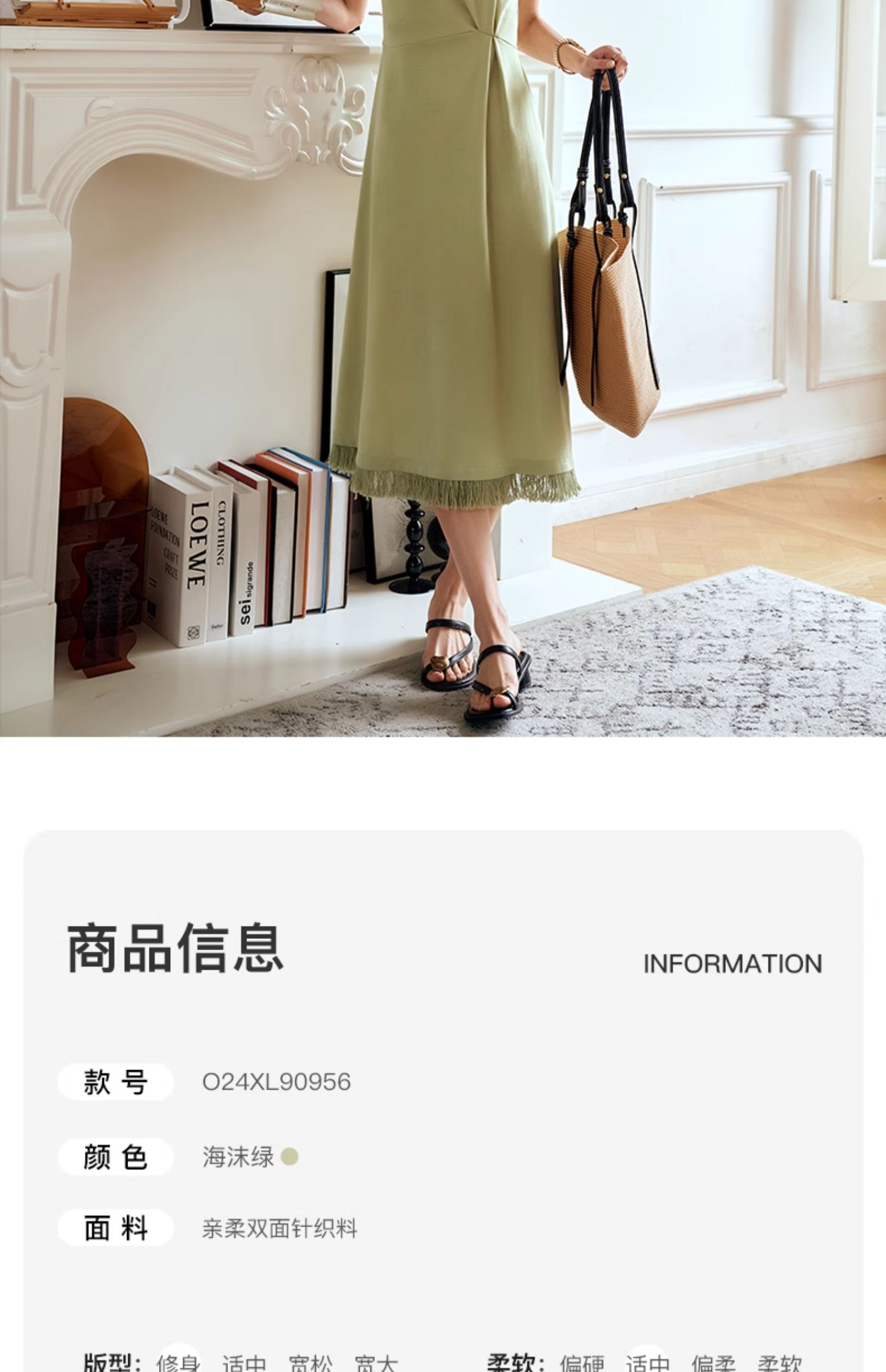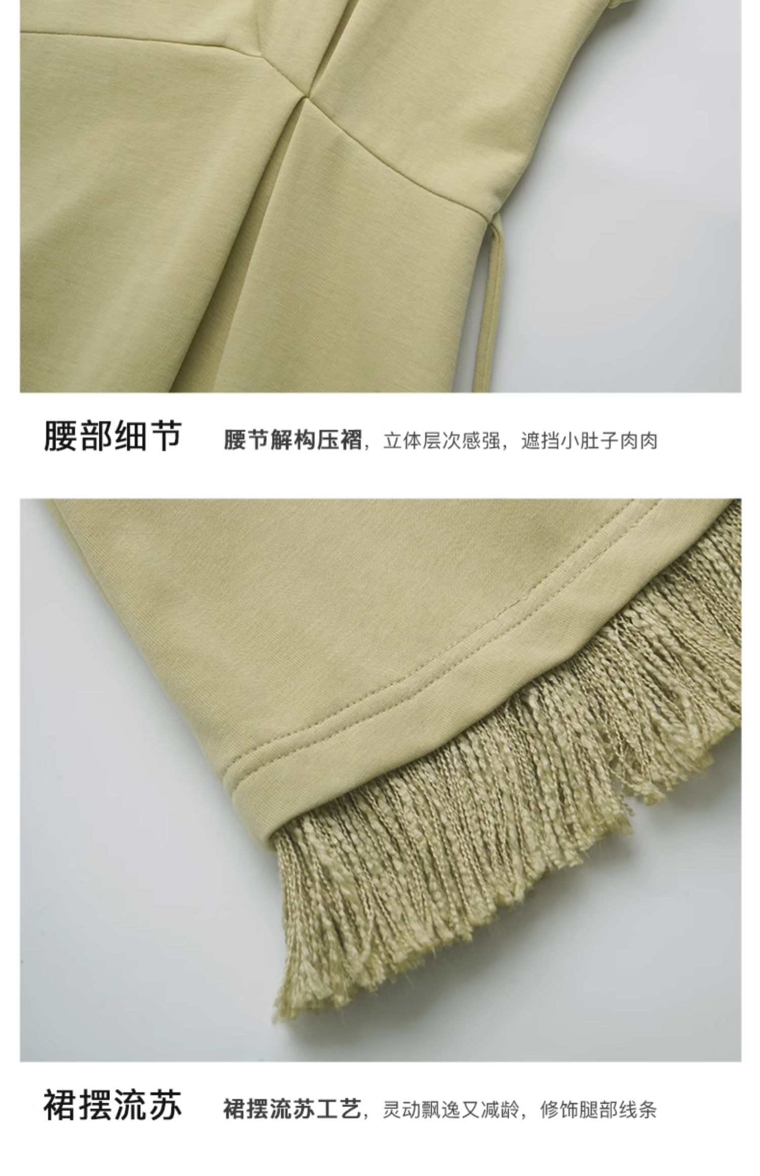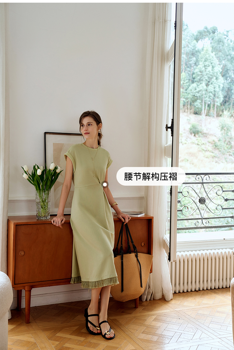 OLrain欧芮儿绿色连衣裙女夏季2024年新款设计感针织流苏收腰长裙