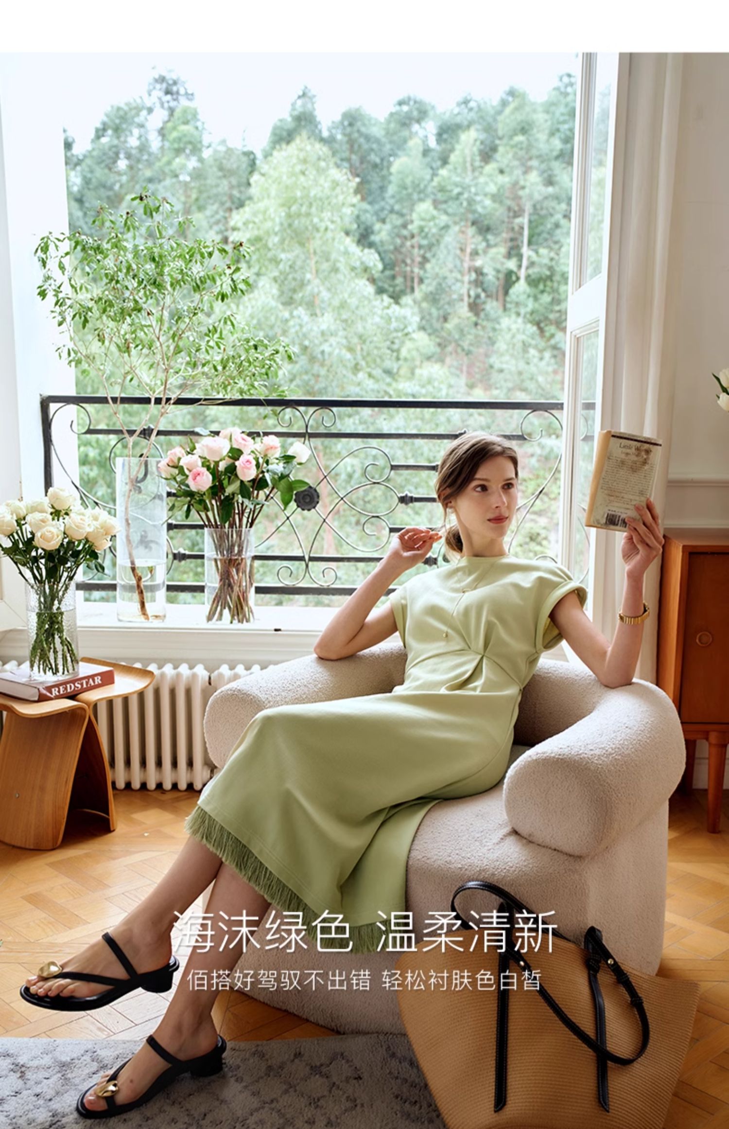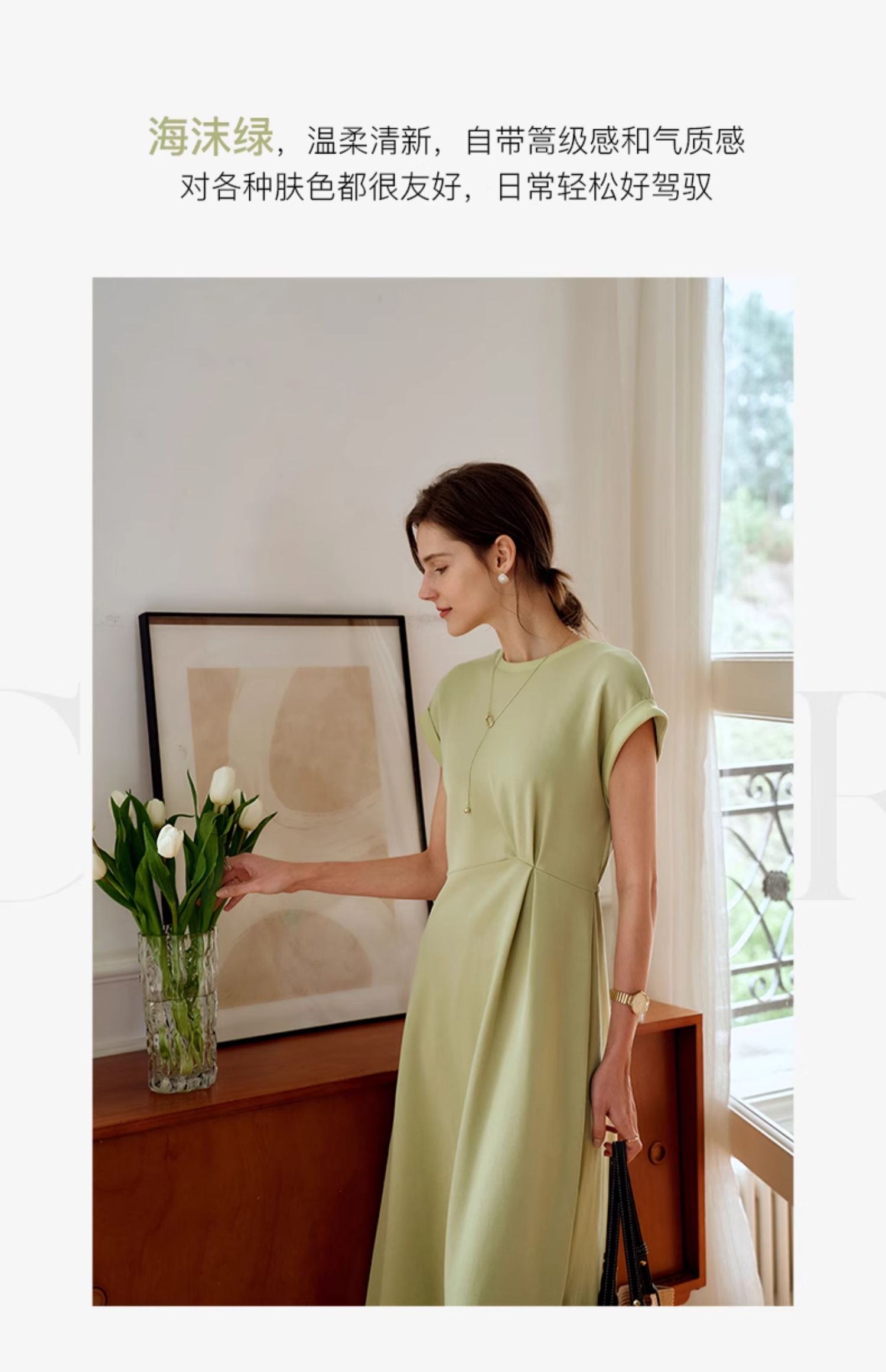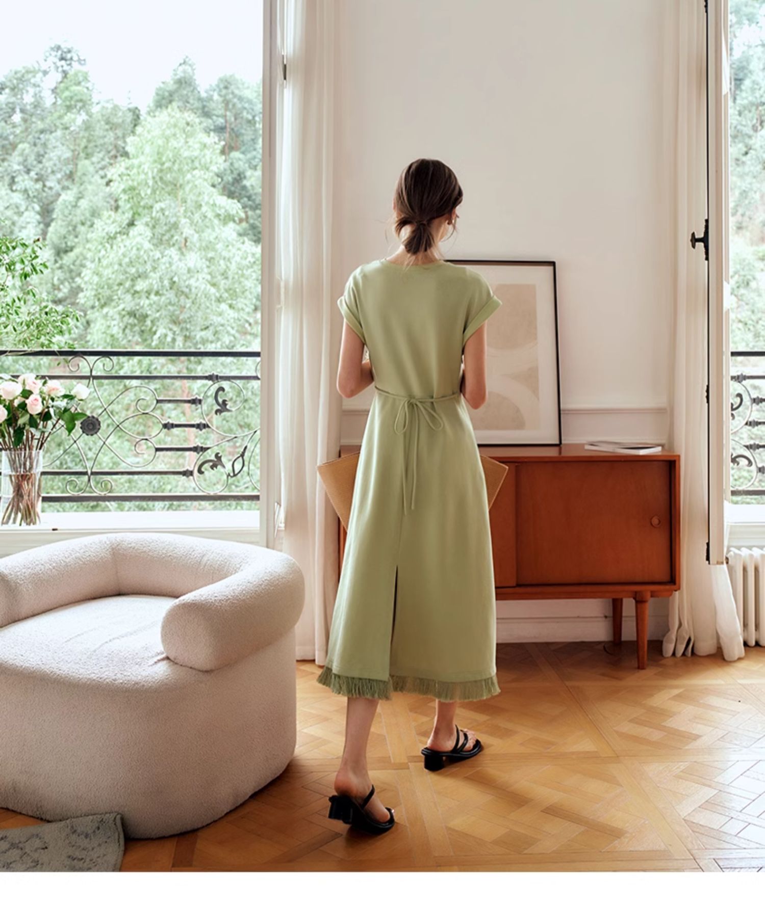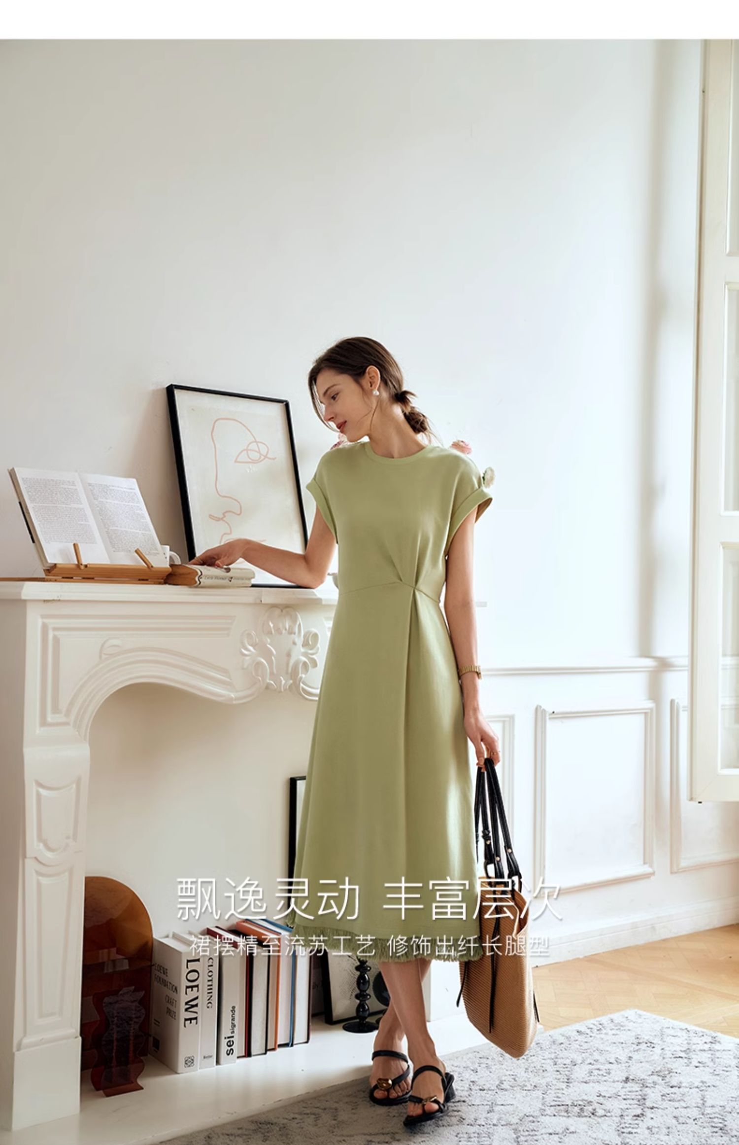 OLrain欧芮儿绿色连衣裙女夏季2024年新款设计感针织流苏收腰长裙