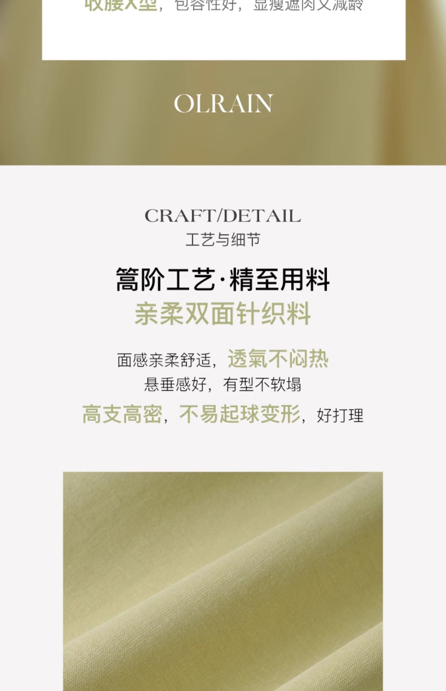 - “精致”是欧芮儿olrain品牌文化的核心,欧芮儿认为,精致的女人,不但要外在动人,更要内在迷人,内外兼修,有魅力、有气质、有内涵,自信而不自傲,优雅而不矫揉,自有万种风情而不轻浮,更不故作矜持。