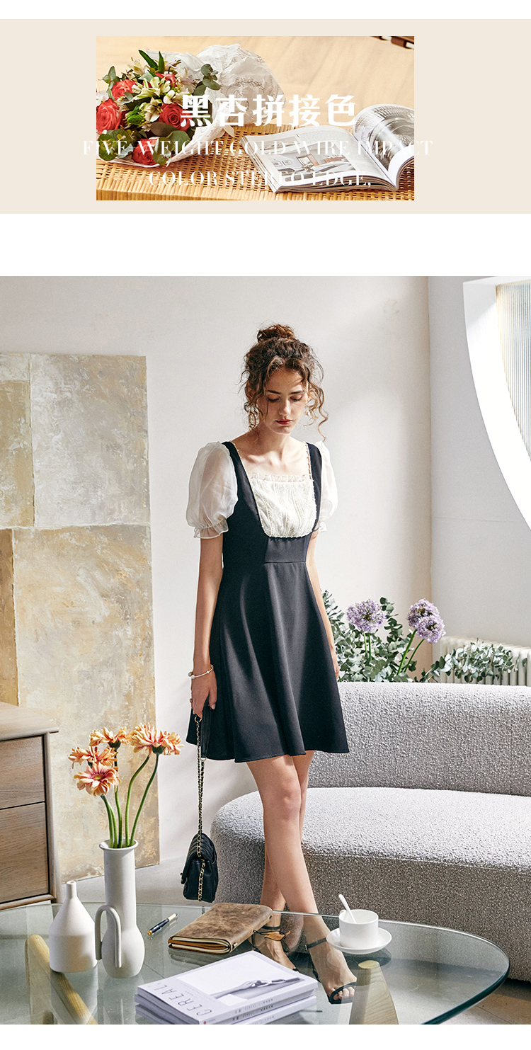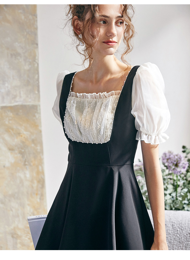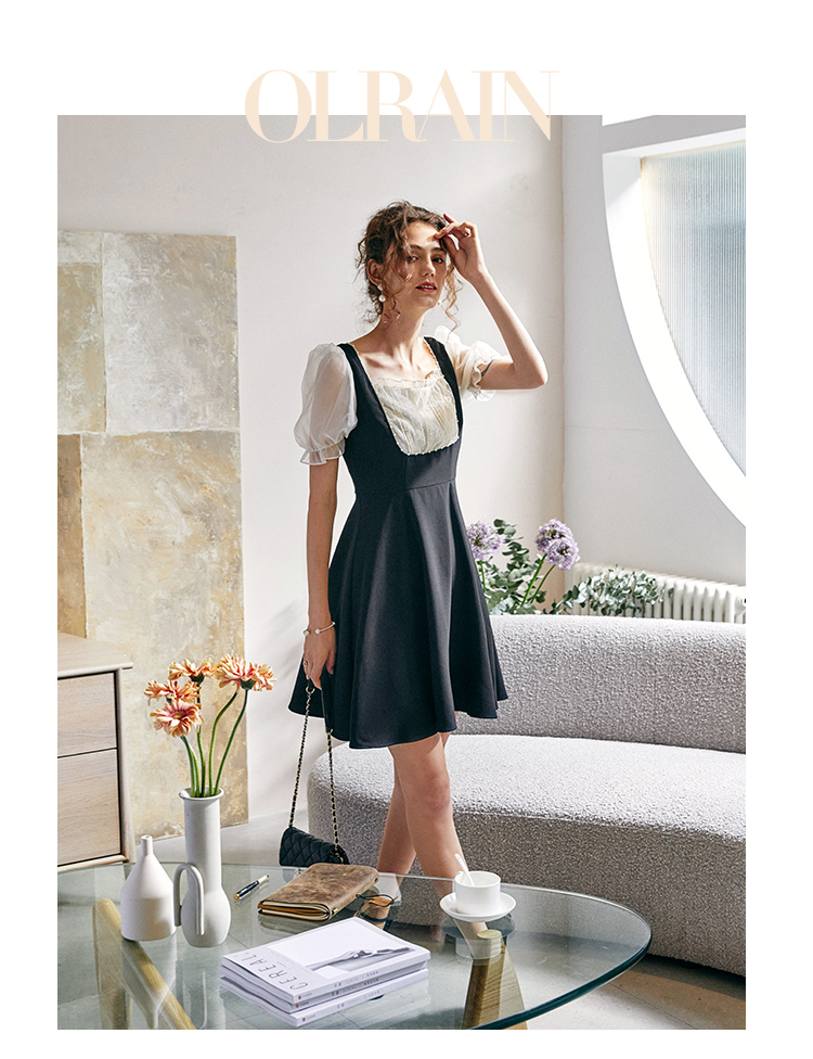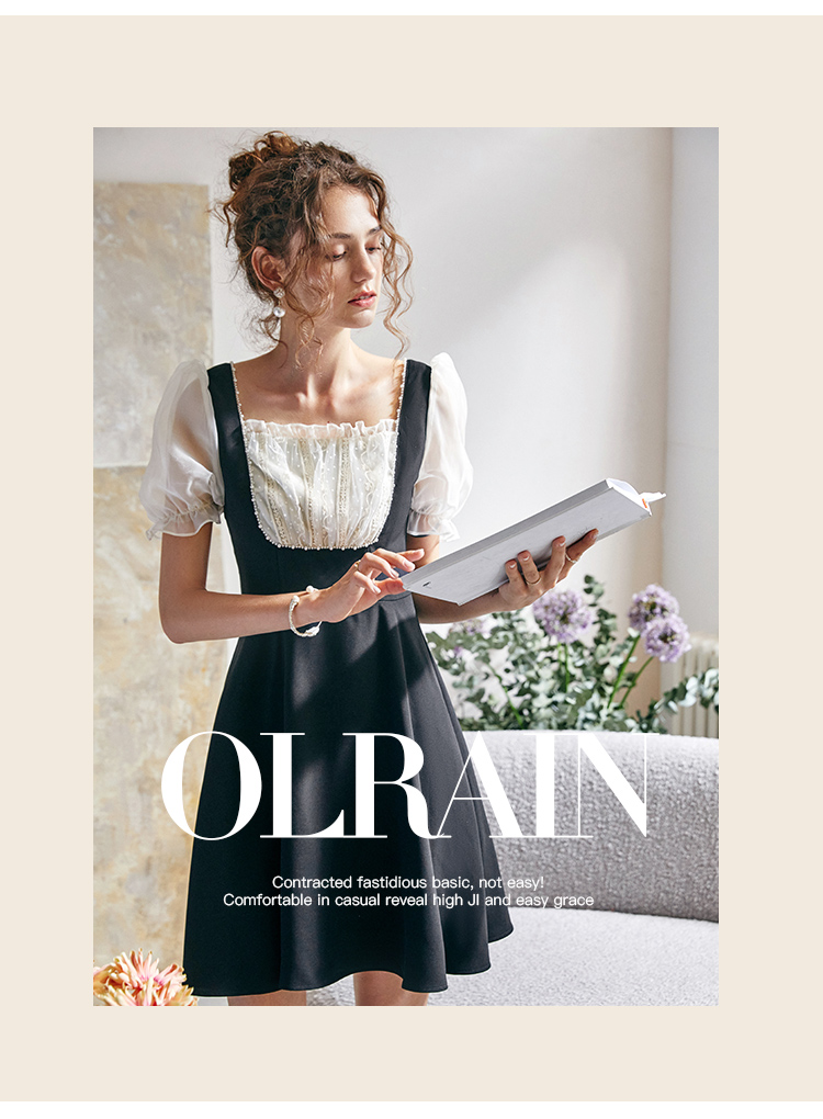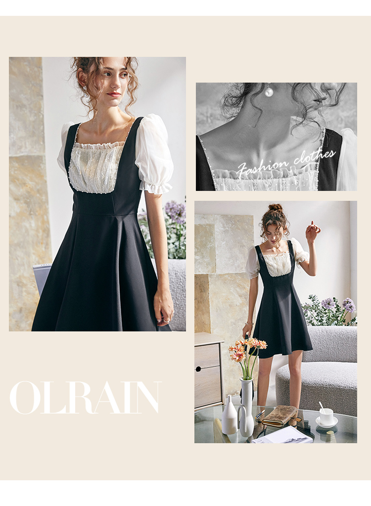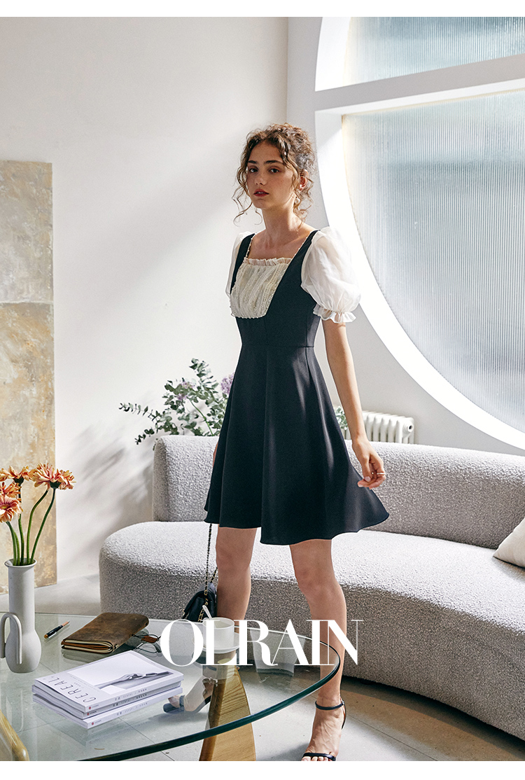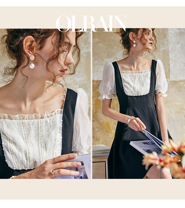 欧芮儿方领连衣裙2021新夏收腰显瘦气质减龄名媛风小礼服A字裙子