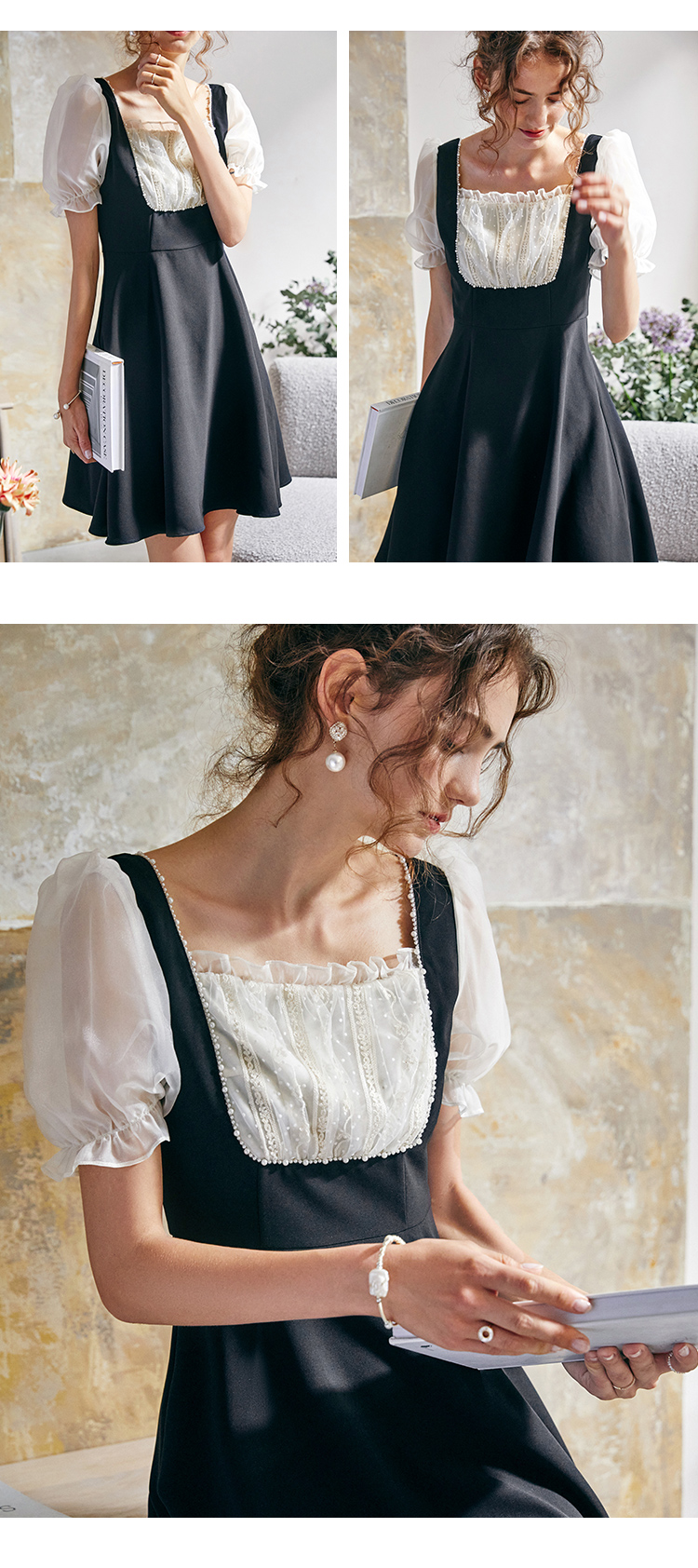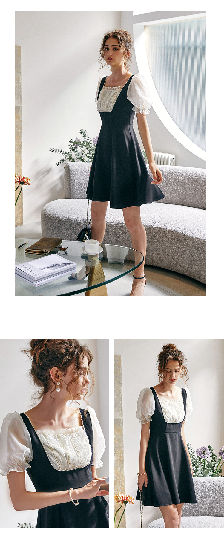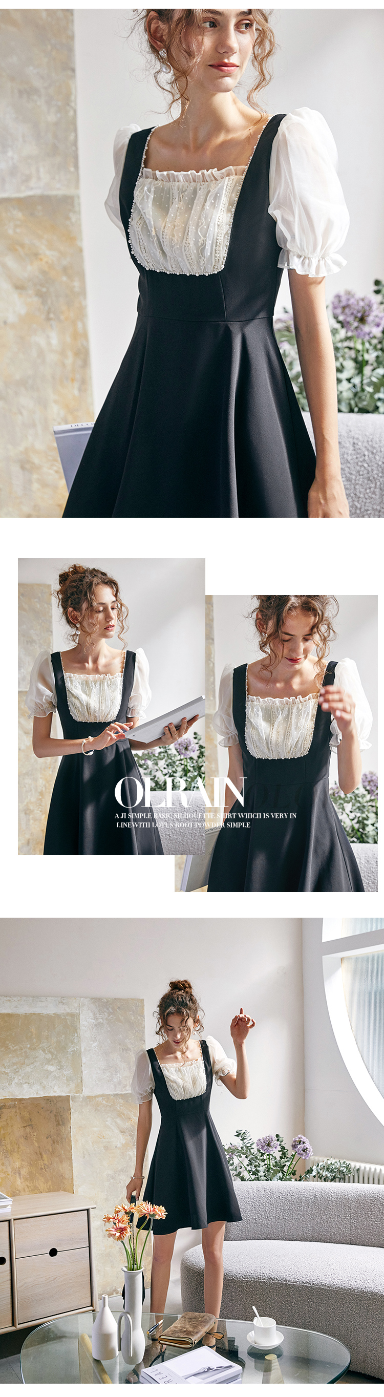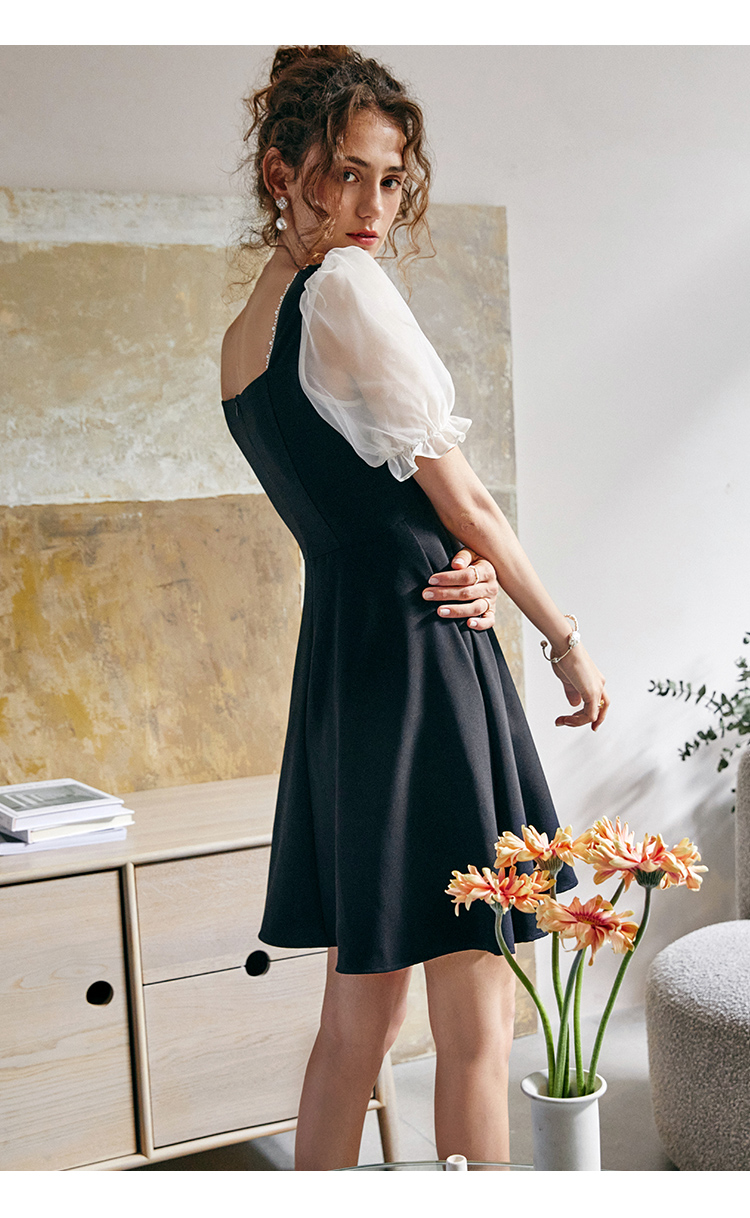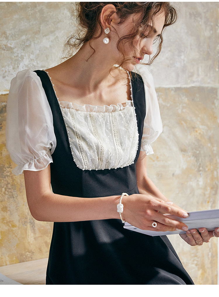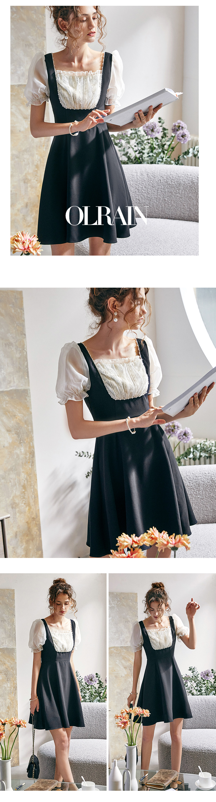 欧芮儿方领连衣裙2021新夏收腰显瘦气质减龄名媛风小礼服A字裙子