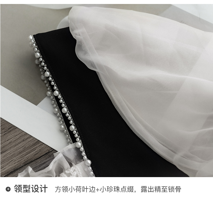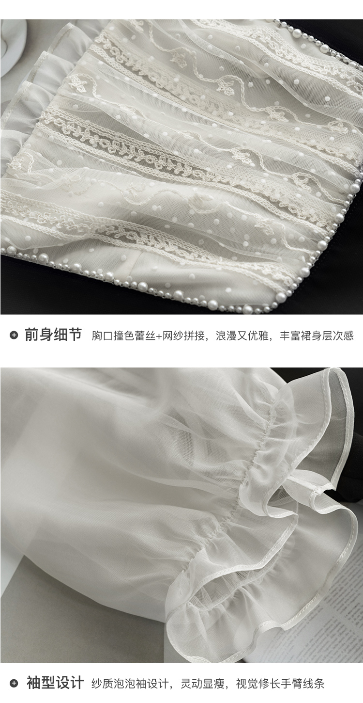 欧芮儿珠片刺绣t恤女2021年新款灯笼袖休闲宽松气质时髦优雅上衣