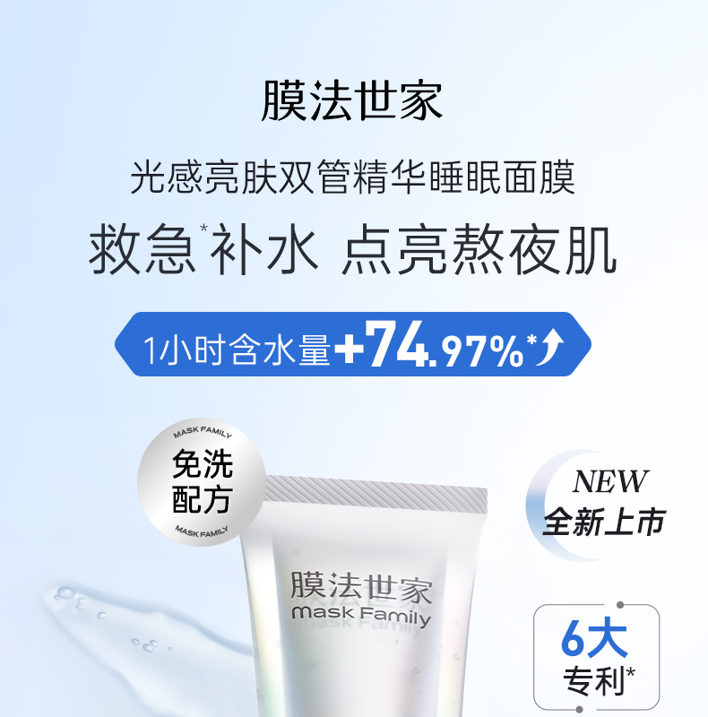 【内购秒杀𝟐𝟓元】膜法世家光感亮肤双管精华睡眠面膜75g
