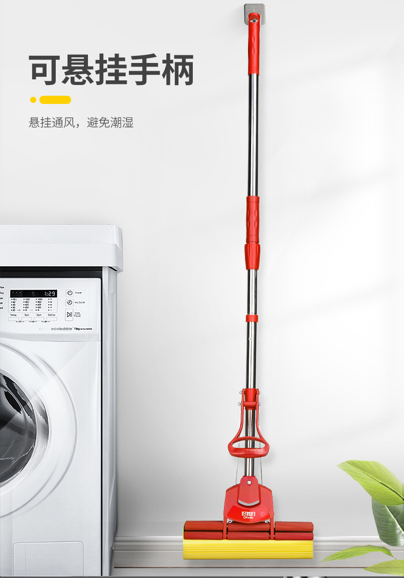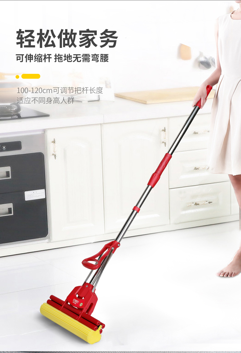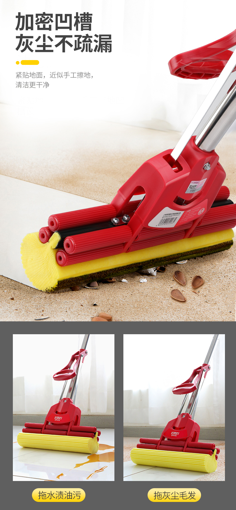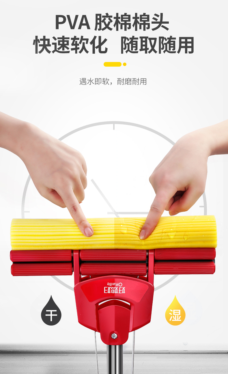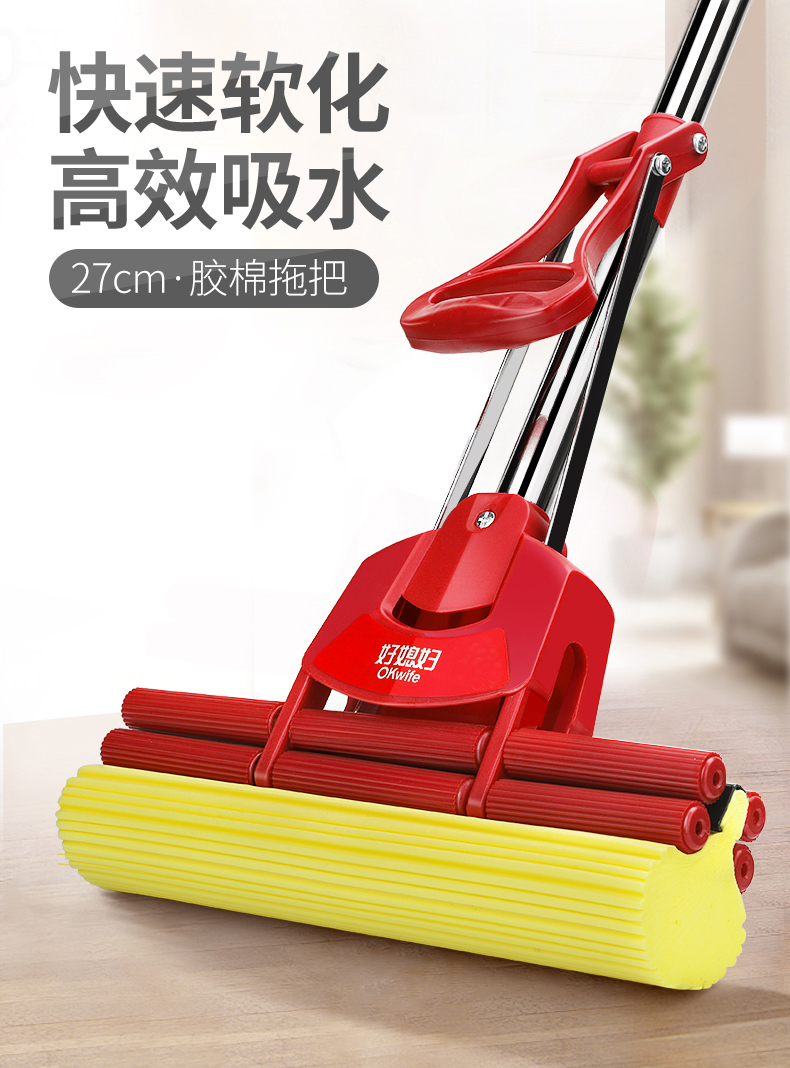 好媳妇免手洗吸水海绵拖把27CM滚轮式挤水胶棉