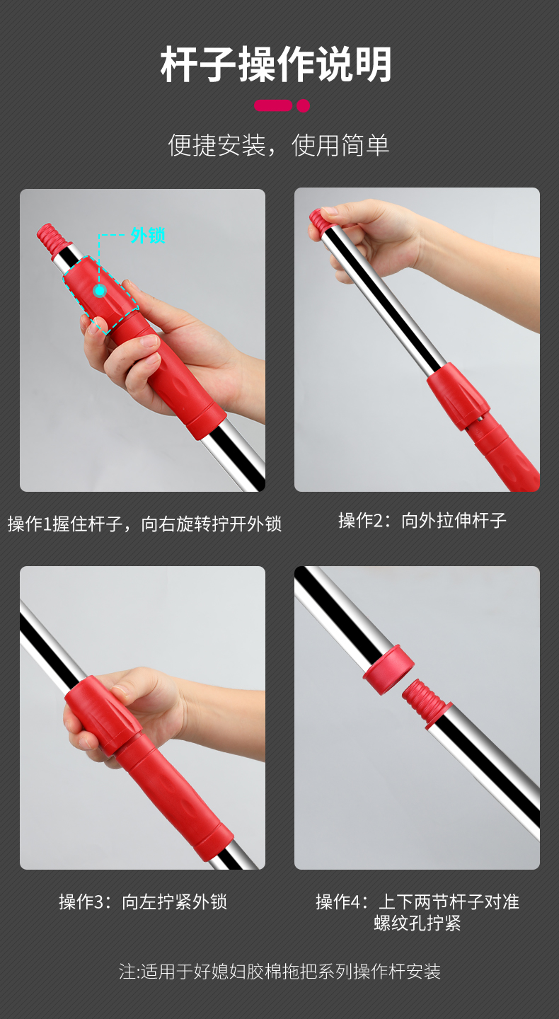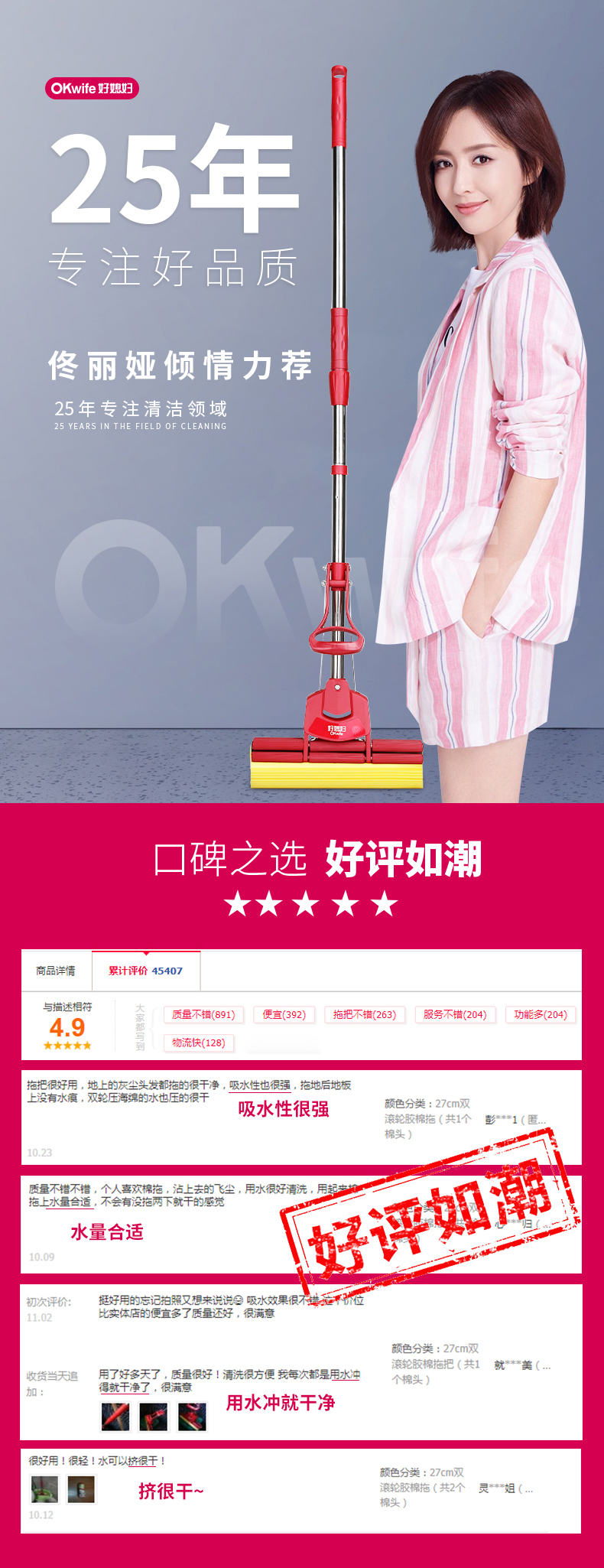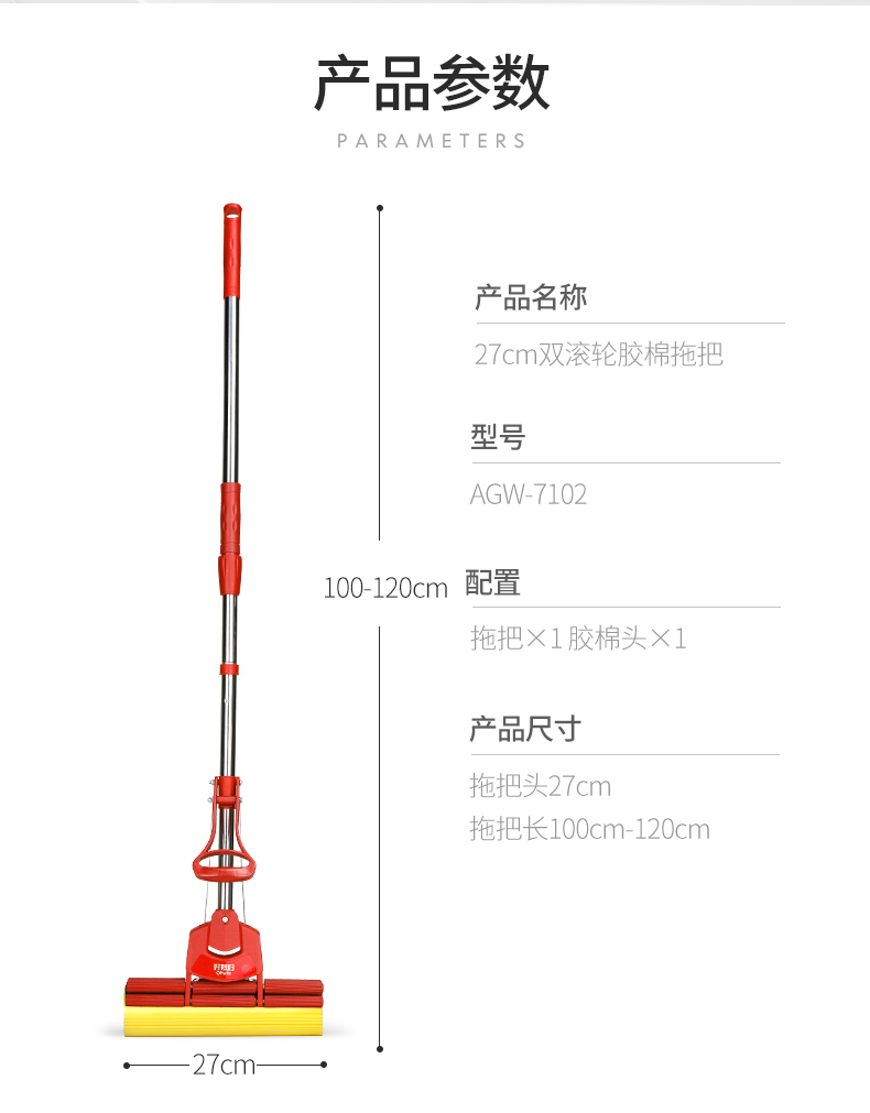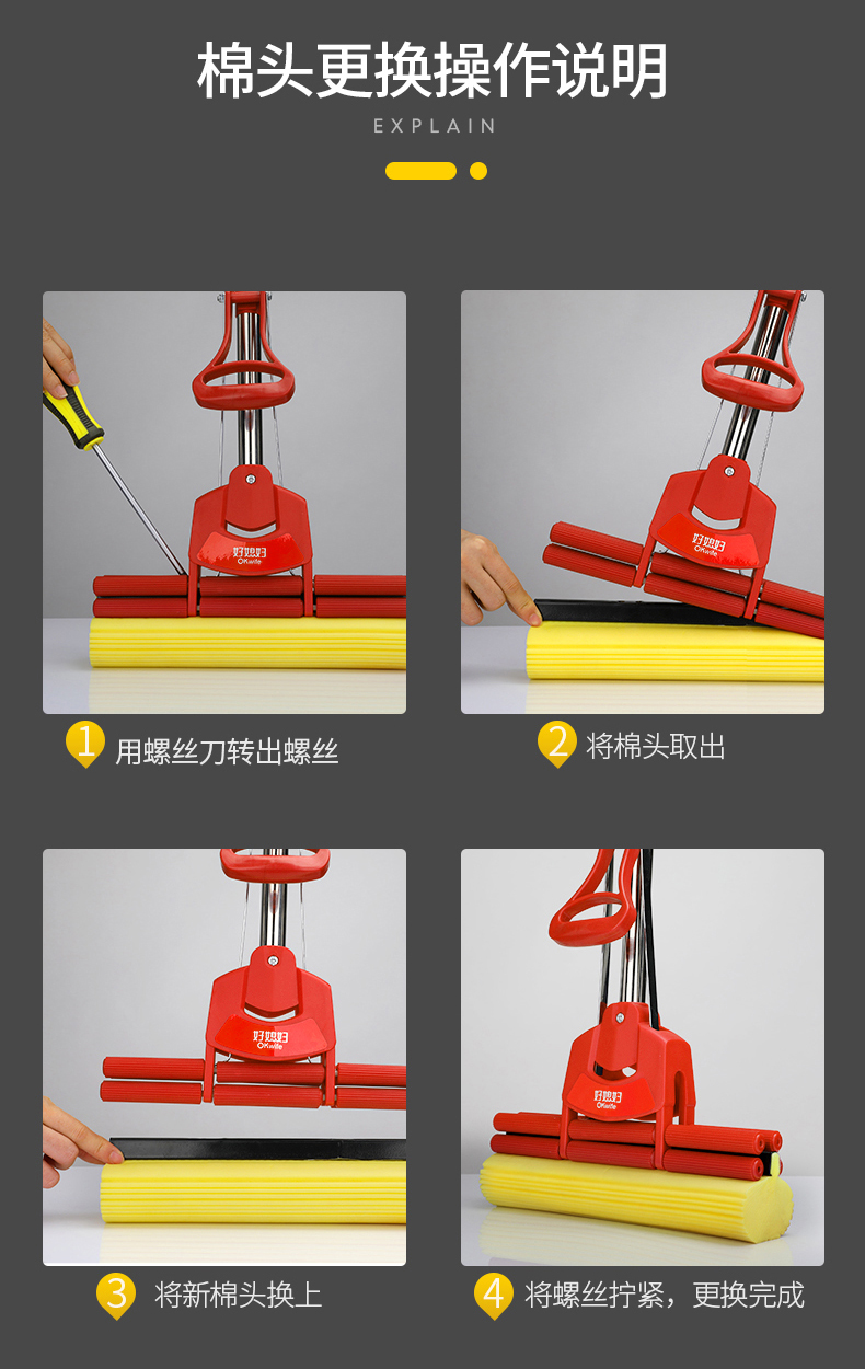 好媳妇免手洗吸水海绵拖把27CM滚轮式挤水胶棉