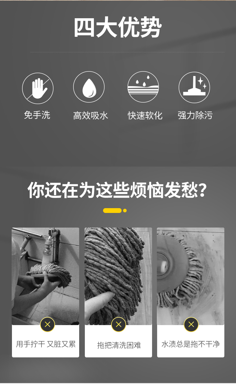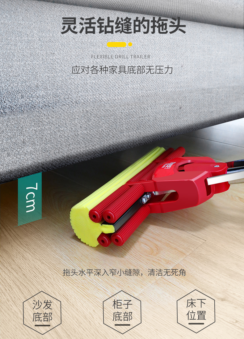 好媳妇新款对折胶棉拖大号家用吸水海绵拖把免手洗一拖净拖地神器