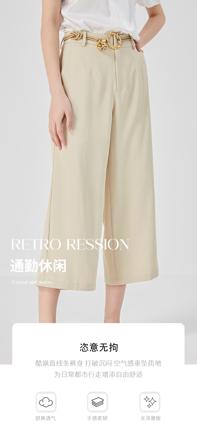 oldcolour2023夏新款高腰气质百搭阔腿显瘦七分休闲裤女O25073178