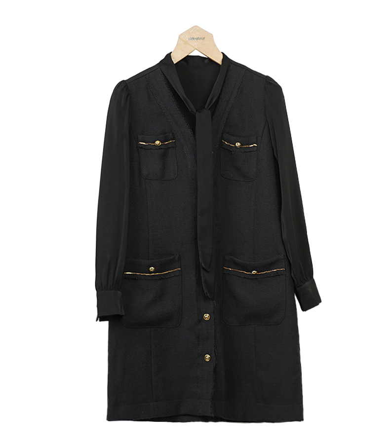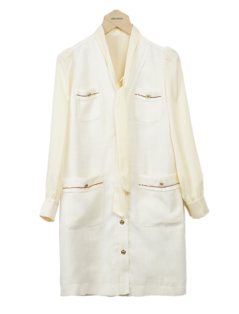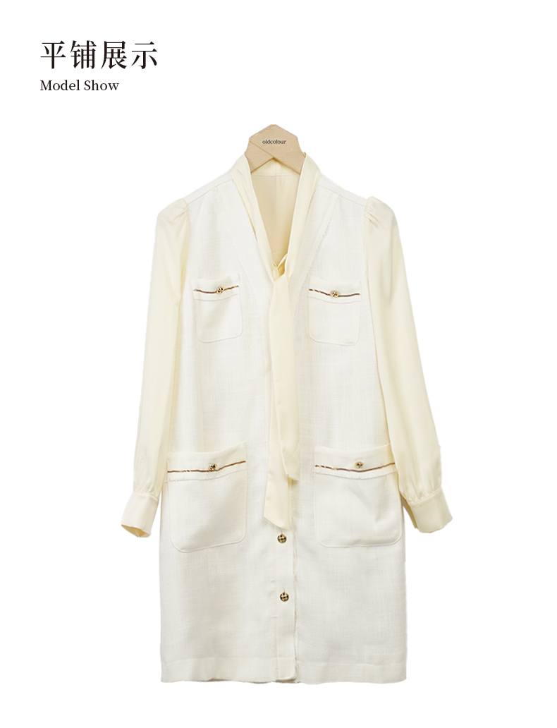oldcolour小香风连衣裙秋季新款飘带气质高级感短裙女O33103380