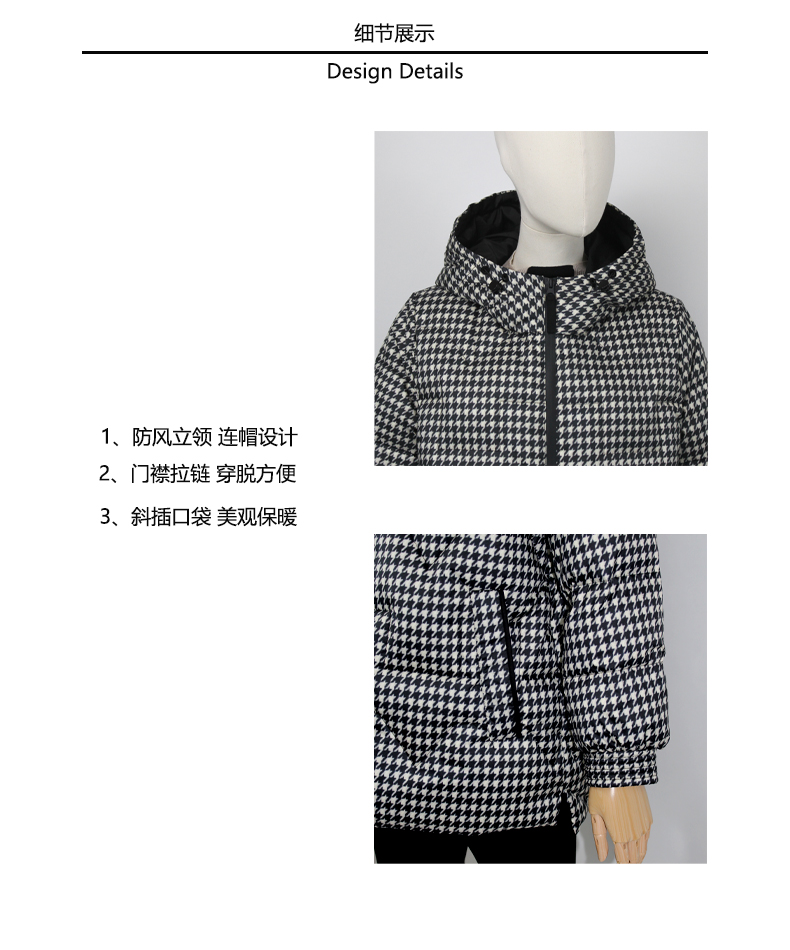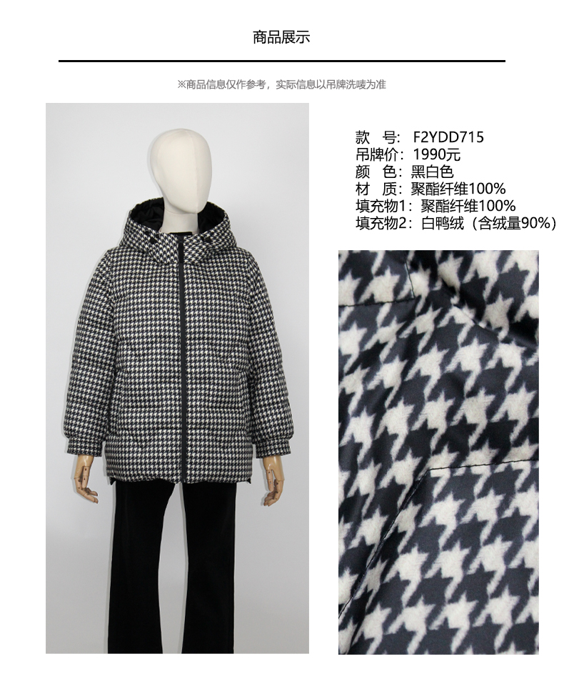 FOCALS福柯斯女装冬季新款印花休闲连帽短款羽绒服F2YDD715NW