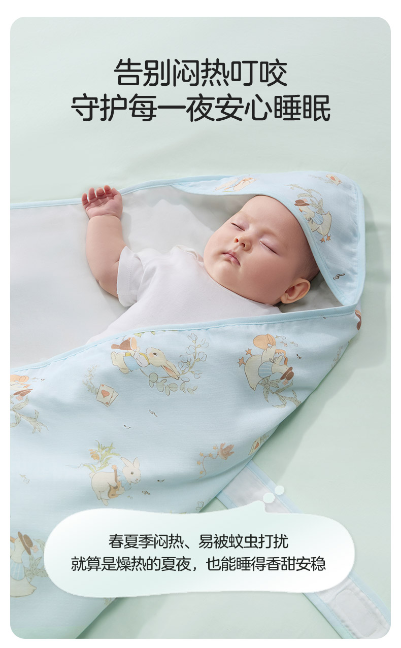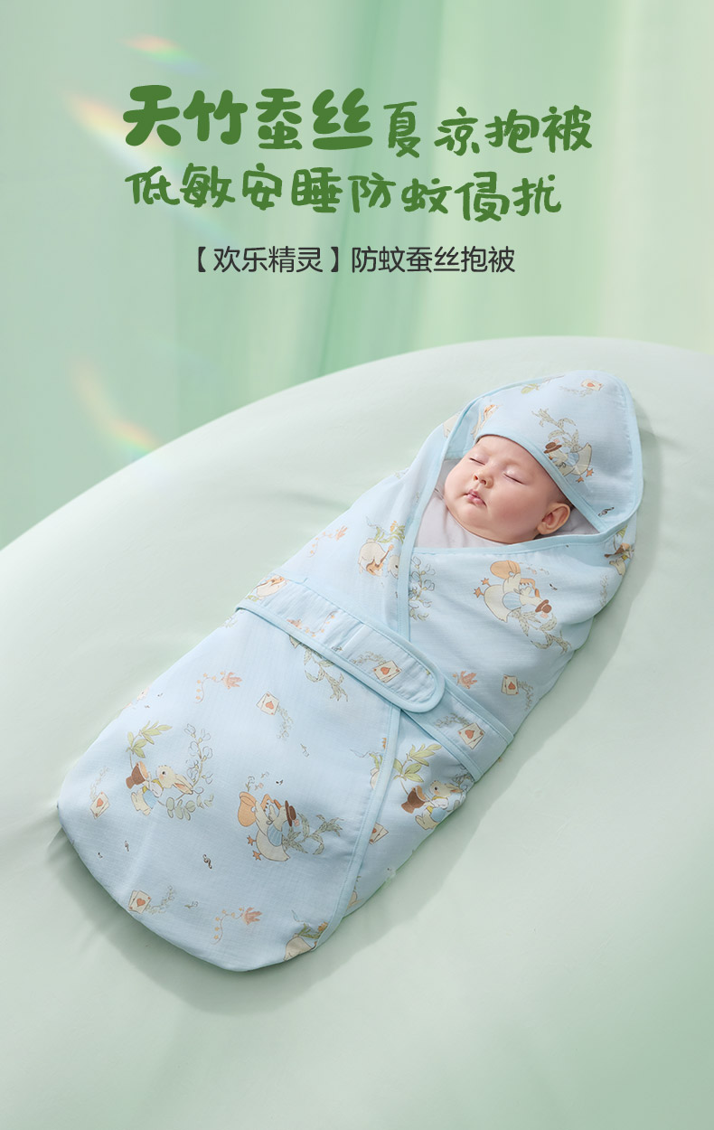 婴儿抱被夏季薄款竹棉蚕丝包被新生儿宝宝低敏防蚊包裹被