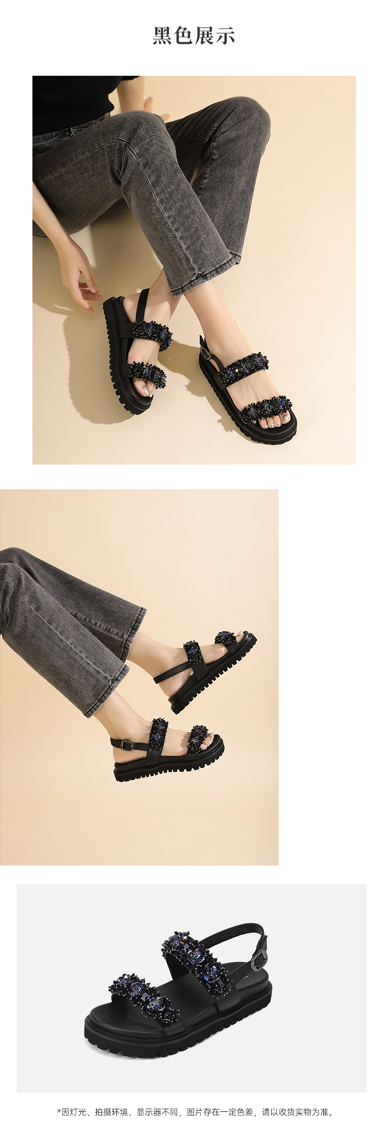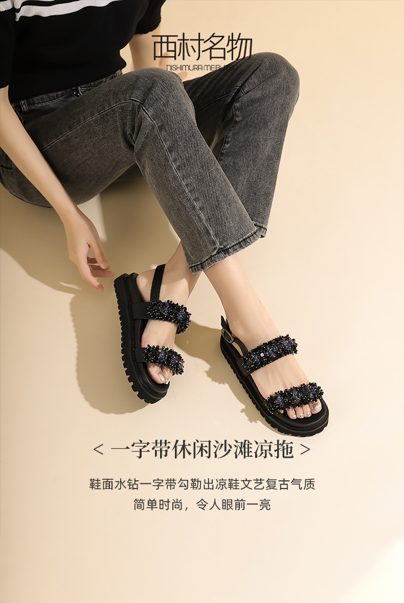 西村名物2023夏季新款平底凉鞋女法式一字带休闲沙滩凉拖23521