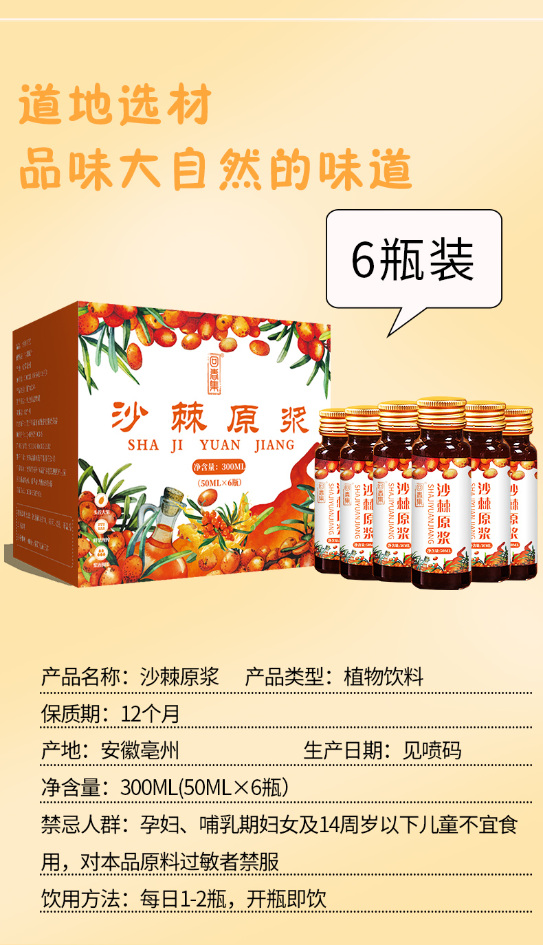 【传统配方 四季常备】沙棘原浆 畅饮酸爽 贴心小黄瓶 远离亚健康