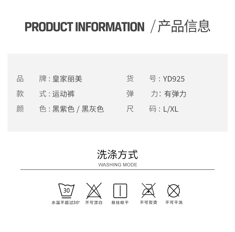 【特卖商品,不退不换】皇家丽美薄款修身显瘦透气舒爽有弹力运动裤YD925
