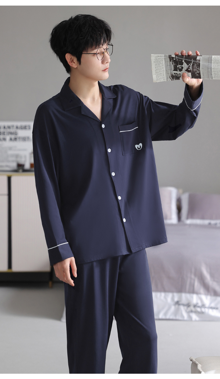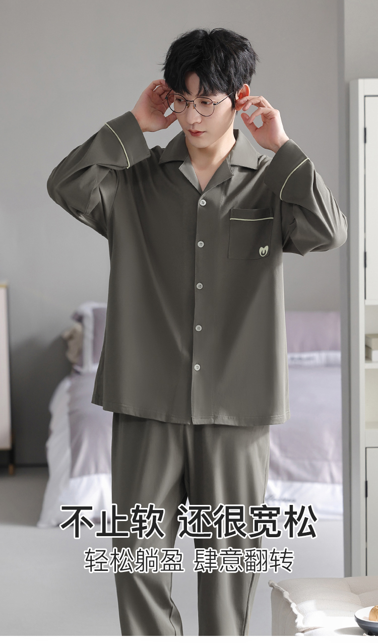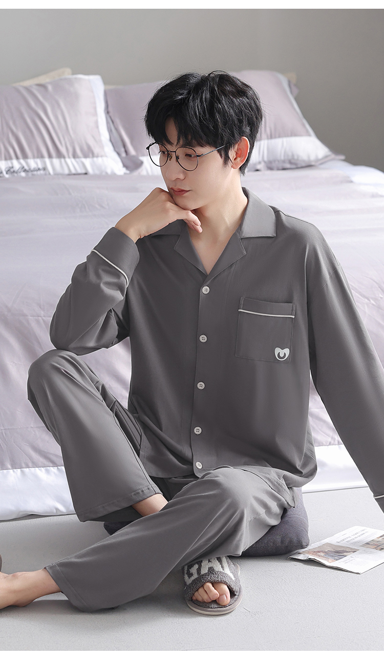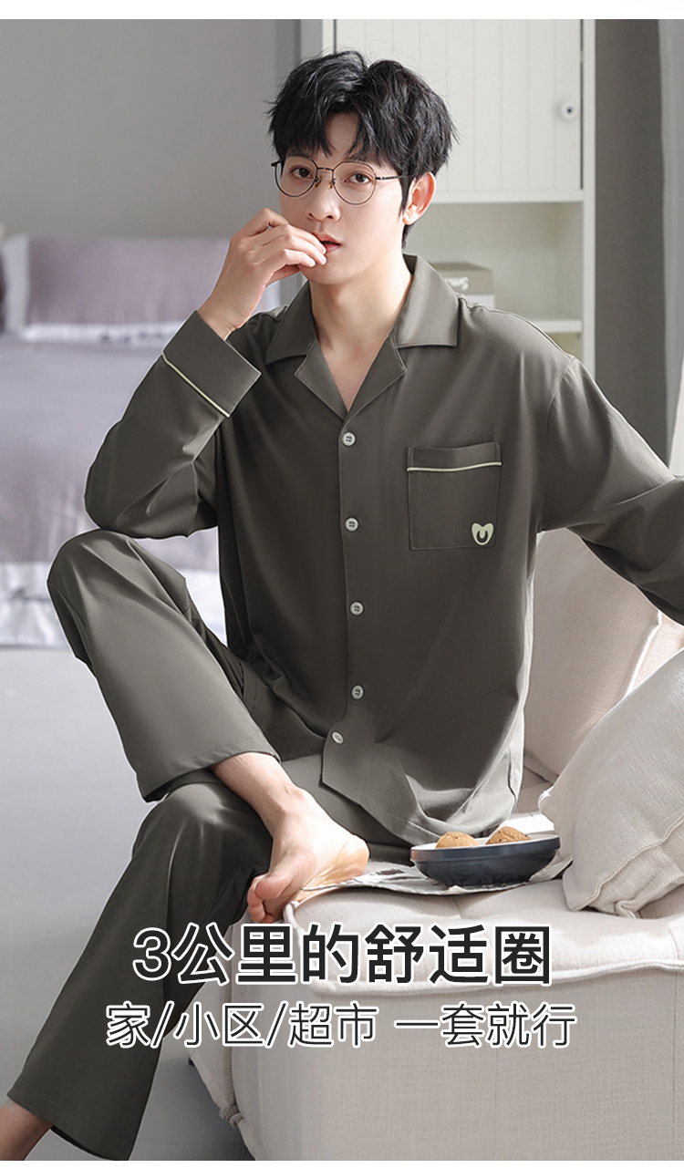 【L-XXL】男款长袖开衫家居服睡衣套装猫人(纯棉)