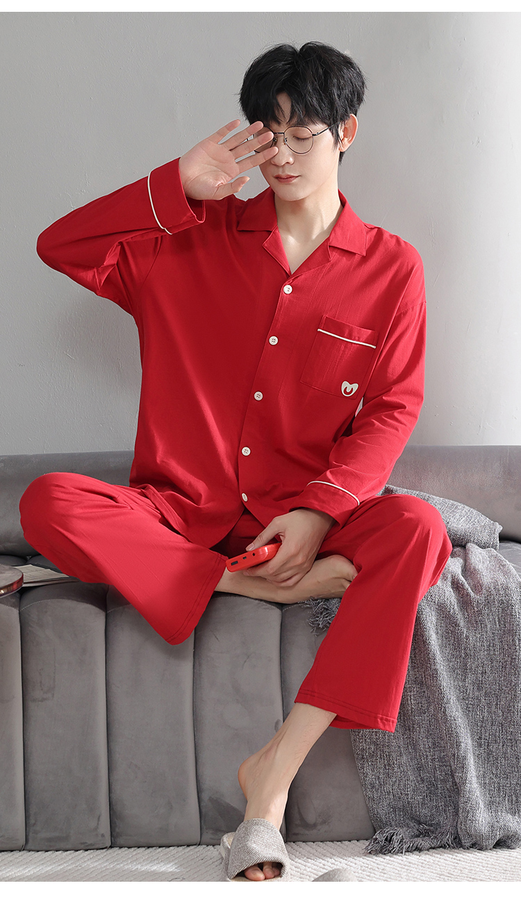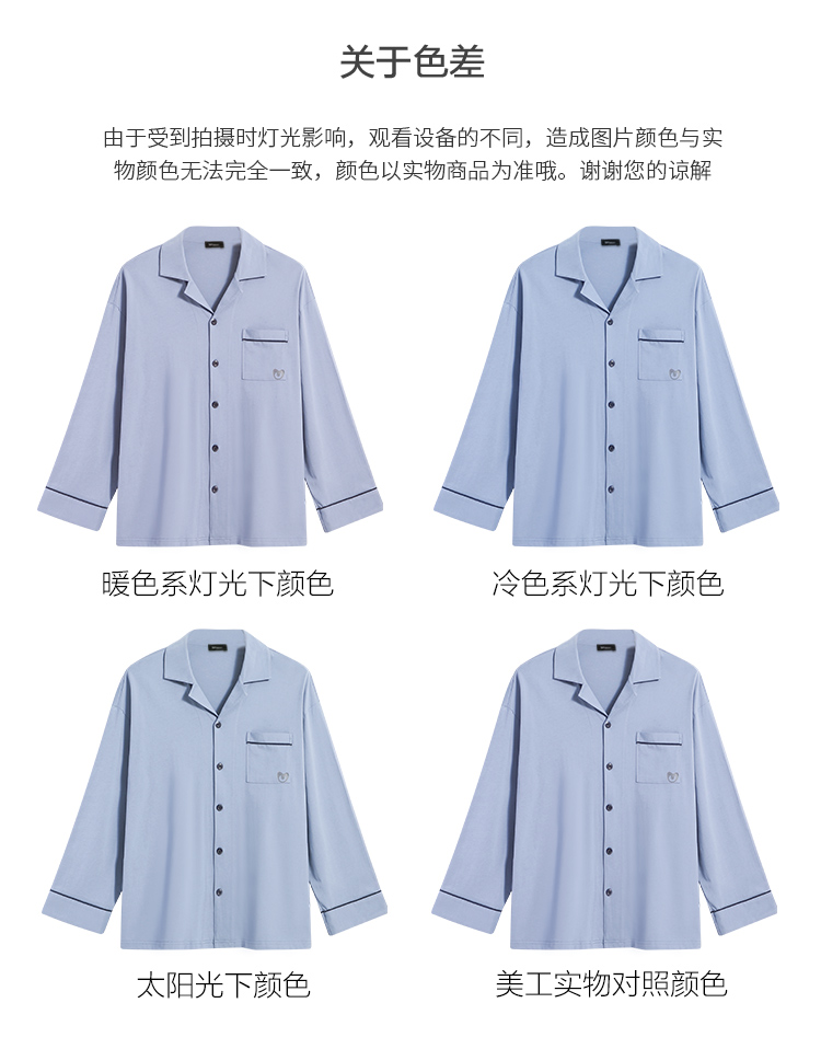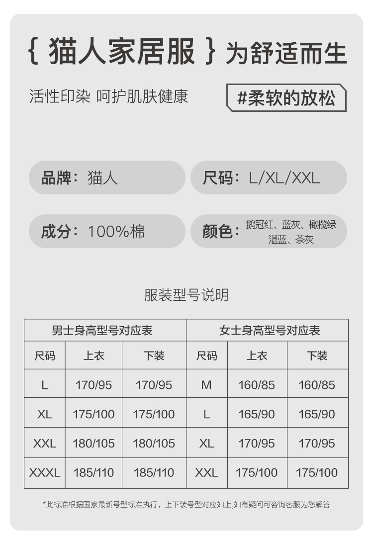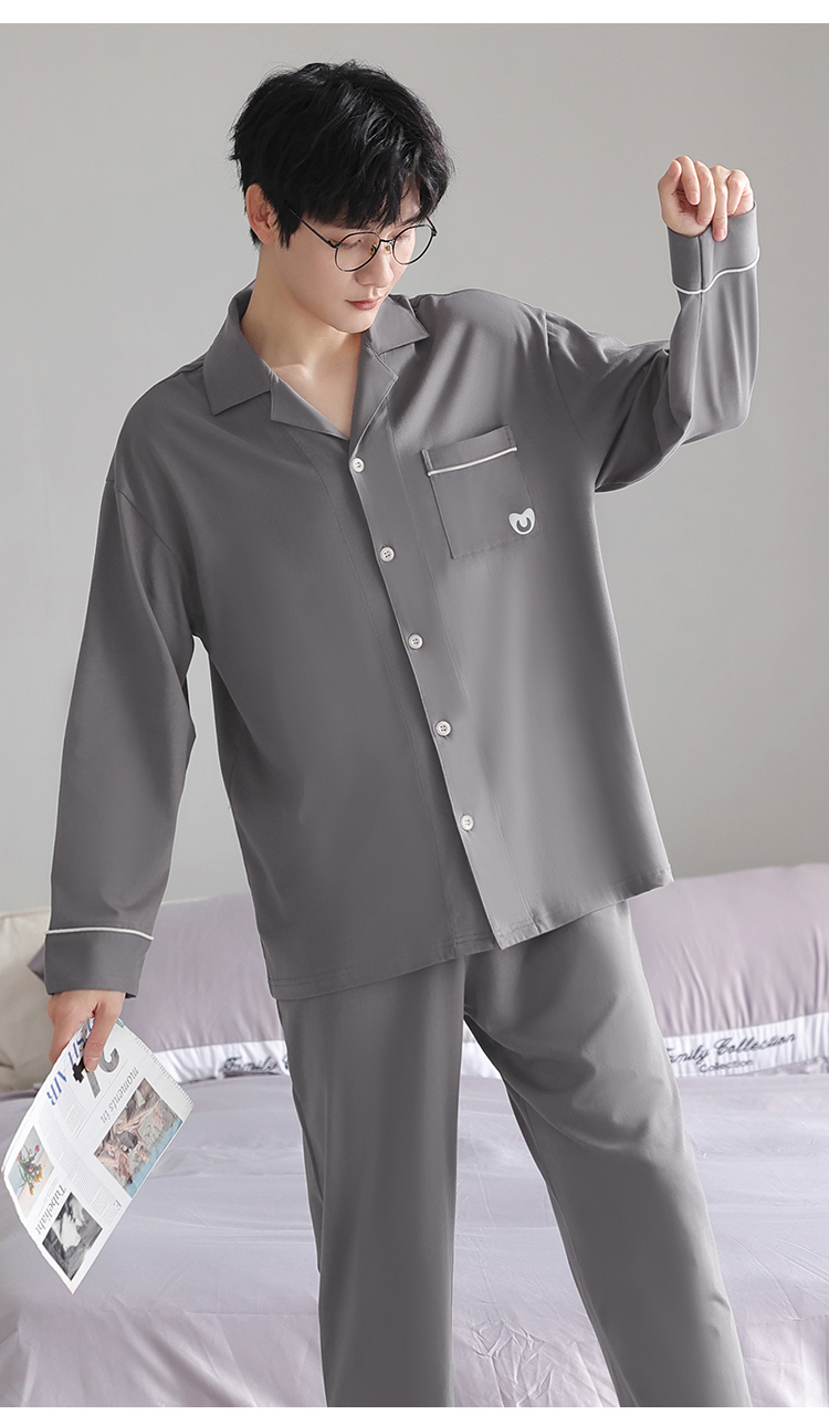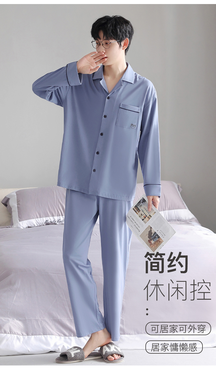 【L-XXL】男款长袖开衫家居服睡衣套装猫人(纯棉)