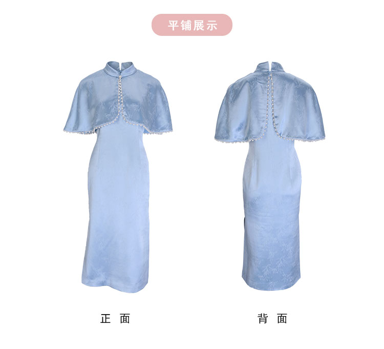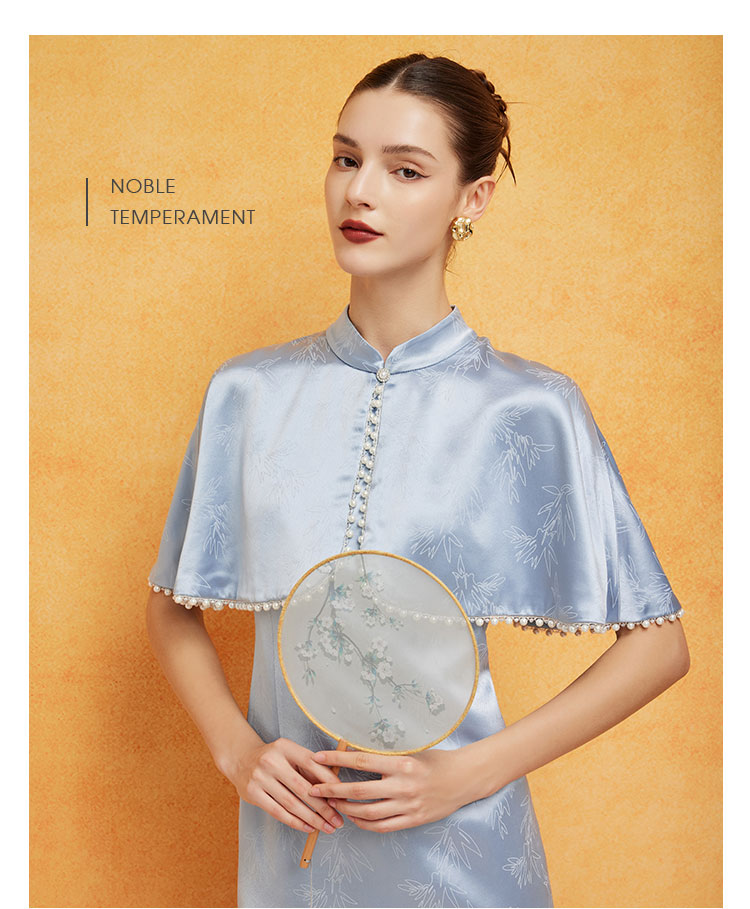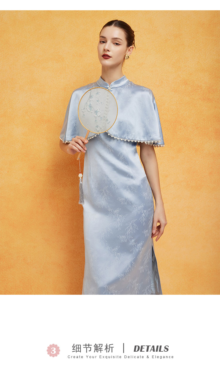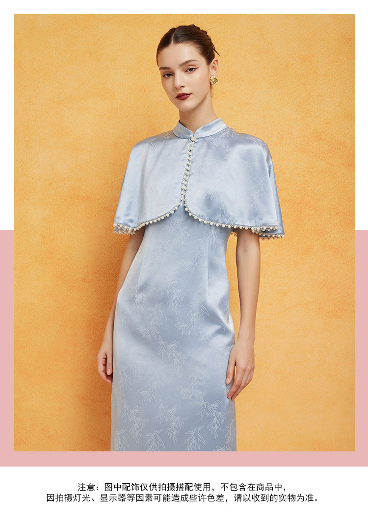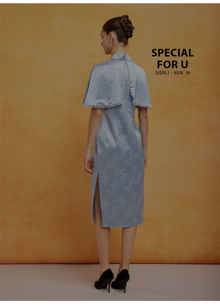 PF8E9斯尔丽2024新款改良旗袍式披肩醋酸提花料精致烫钻工艺优雅连衣裙