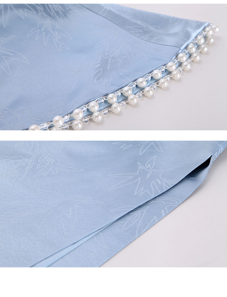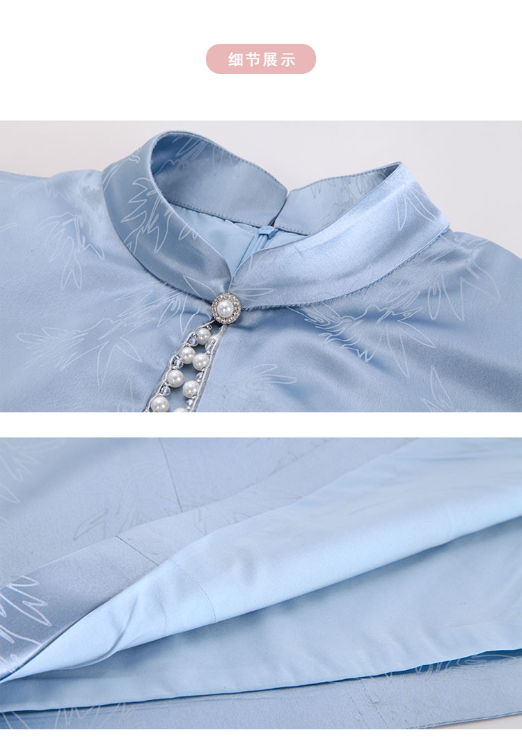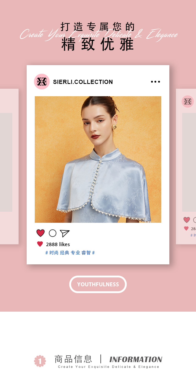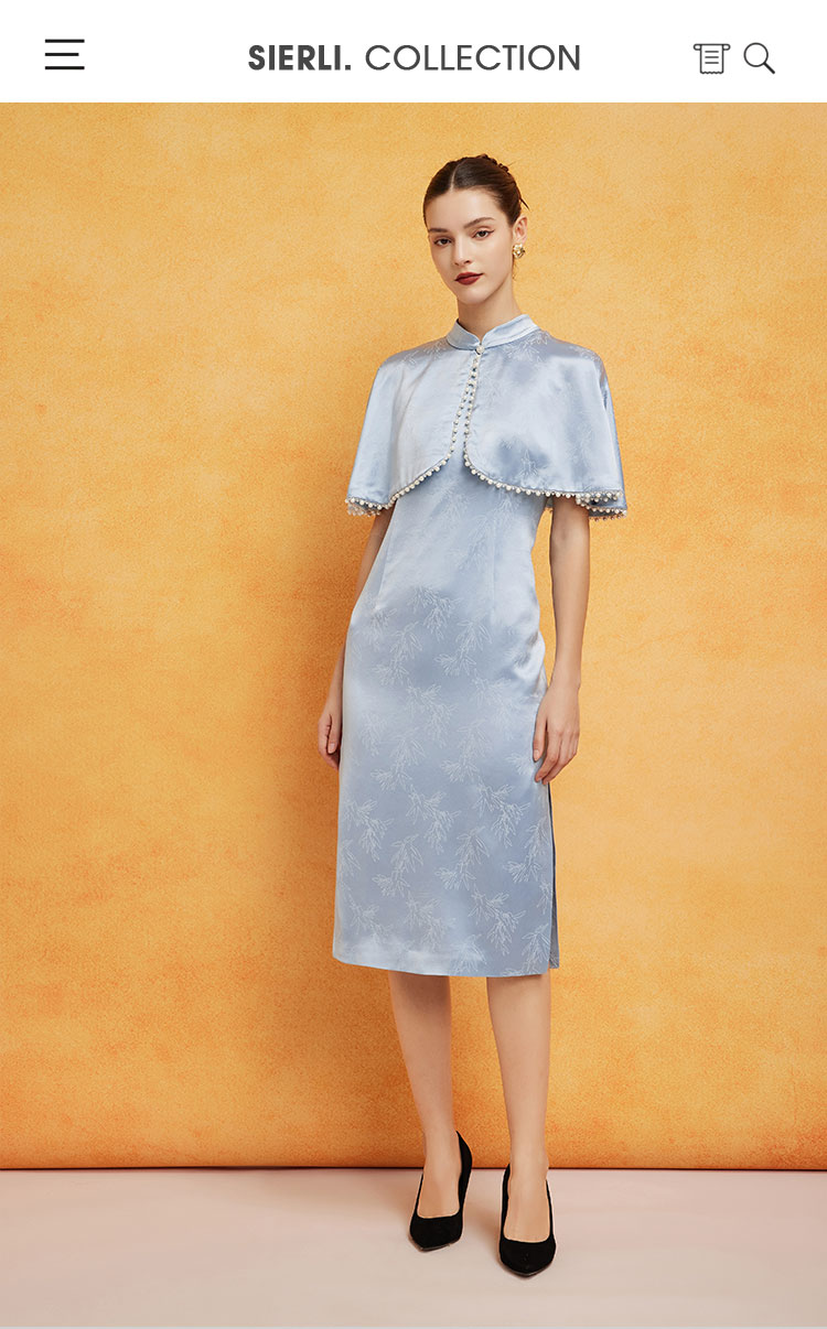 PF8E9斯尔丽2024新款改良旗袍式披肩醋酸提花料精致烫钻工艺优雅连衣裙