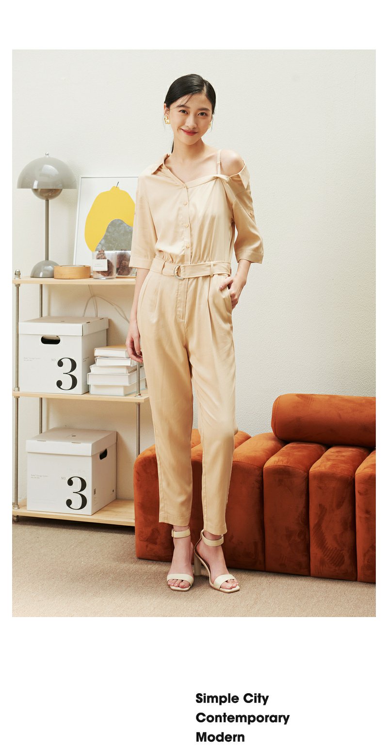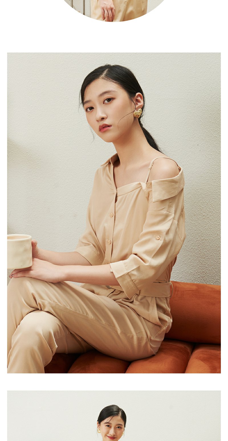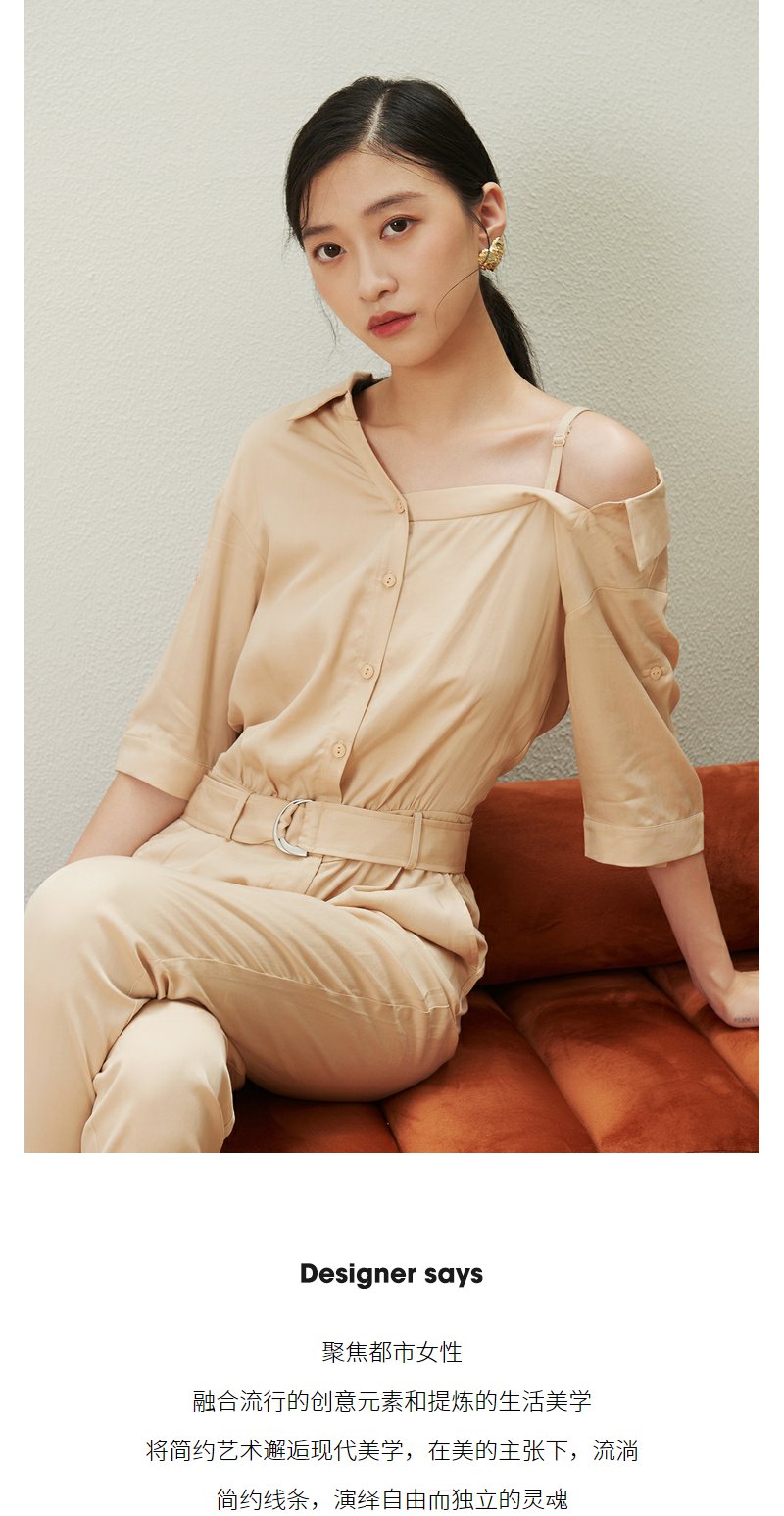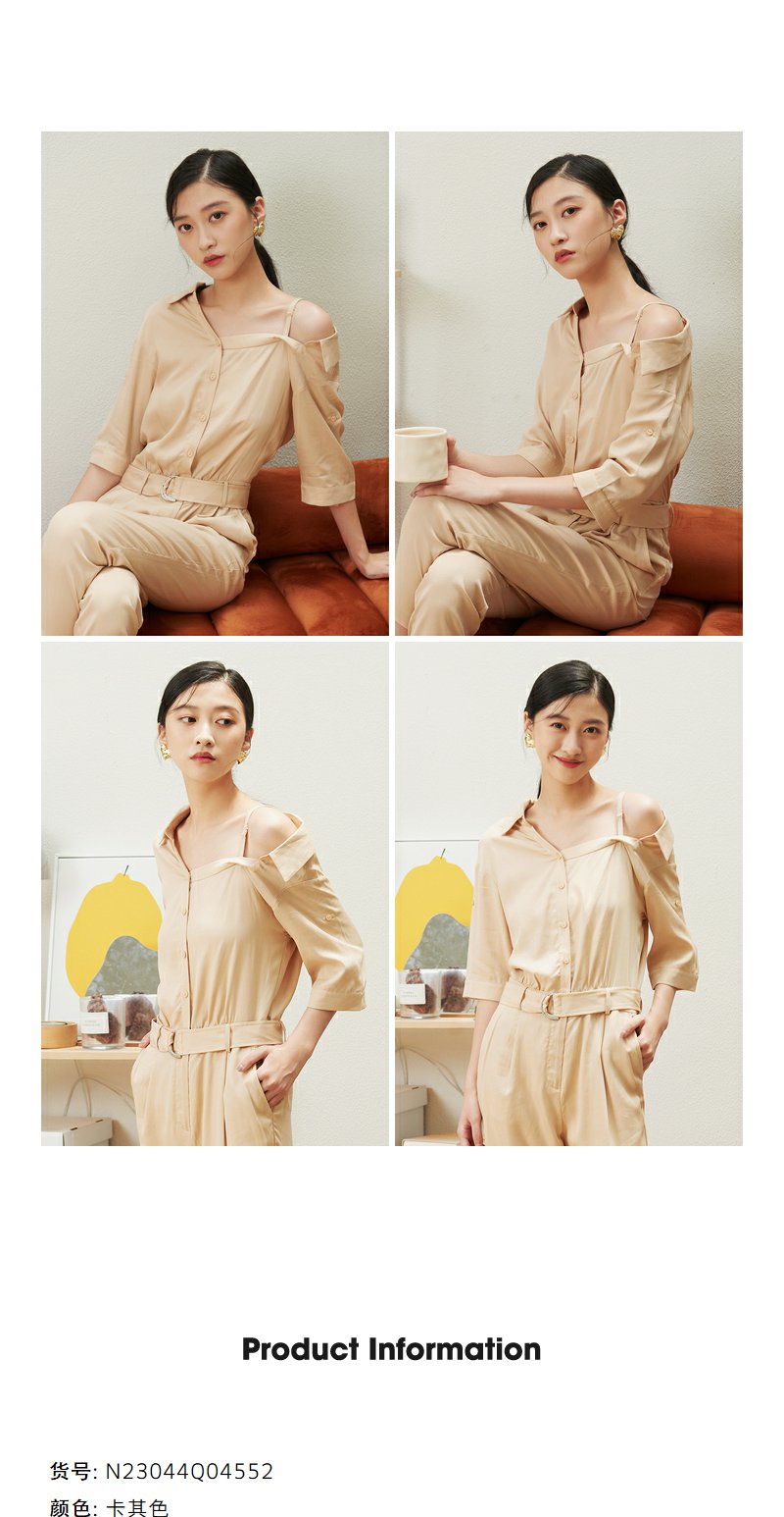 NEELLY纳俪商场同款时尚连体裤套装秋季设计感露肩上衣百搭阔腿裤N23044Q04552