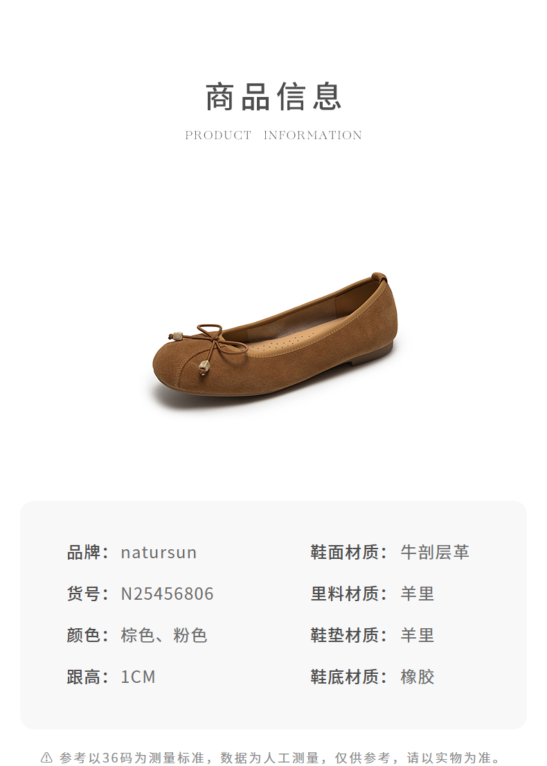natursun小香风平底单鞋晚晚芭蕾舞鞋温柔风浅口单鞋N25456806