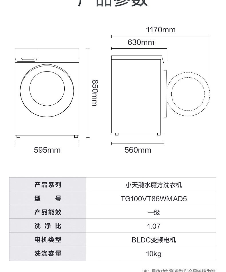 小天鹅 TG100VT86WMAD5 滚筒洗衣机 10公斤家用大容量水魔方防缠绕护形护色变频除菌