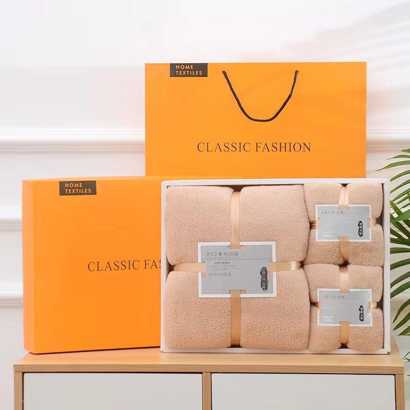 珊瑚绒毛巾浴巾礼盒装 银行年会活动伴手礼商务三件套礼盒套装