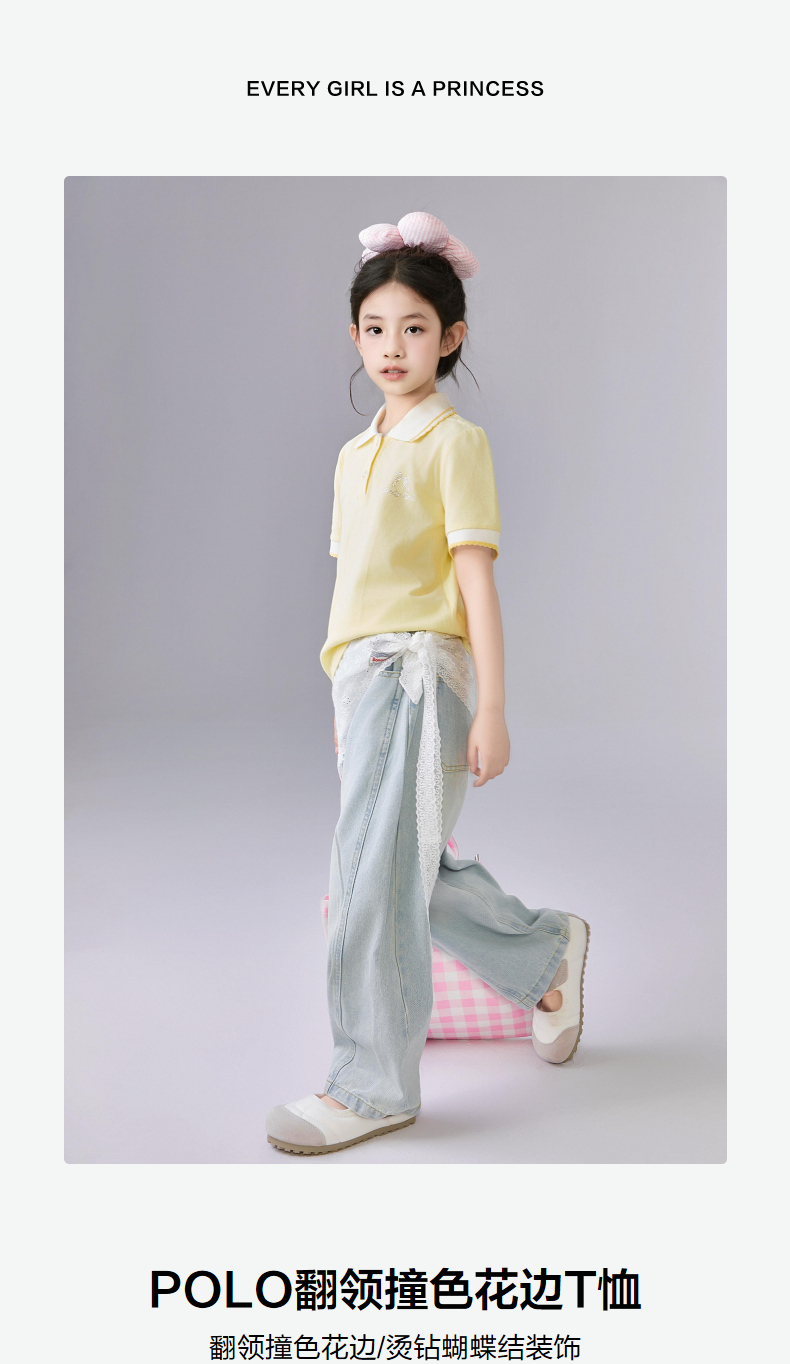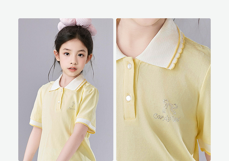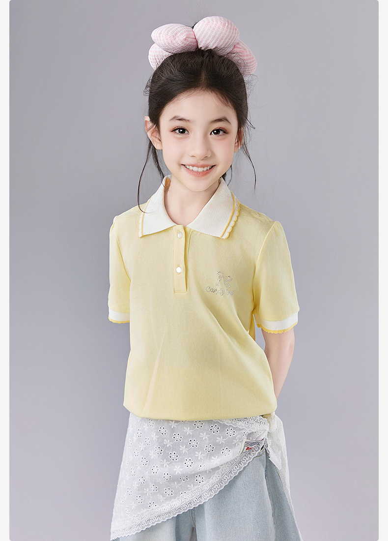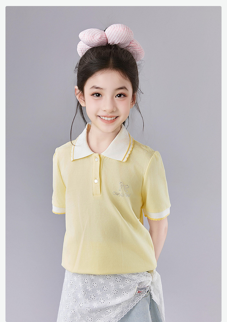 笛莎Deesha 童装女童T恤女童POLO翻领撞色花边T恤