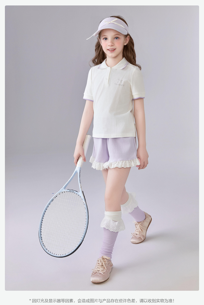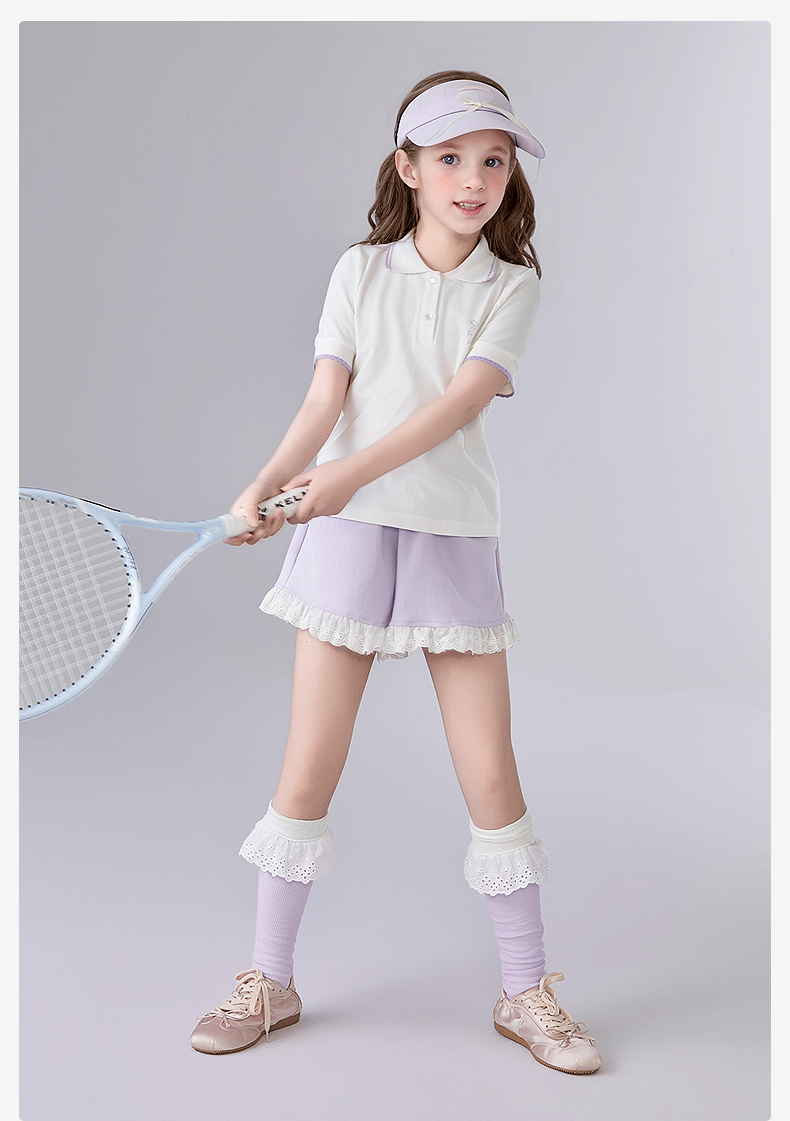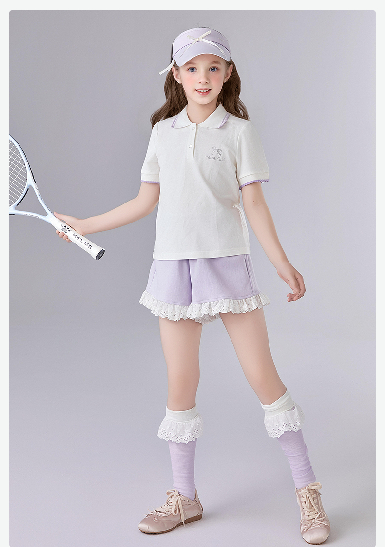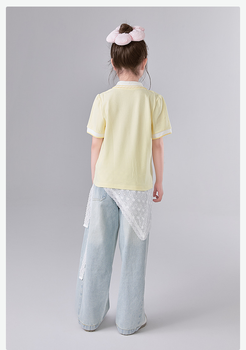 笛莎Deesha 童装女童T恤女童POLO翻领撞色花边T恤