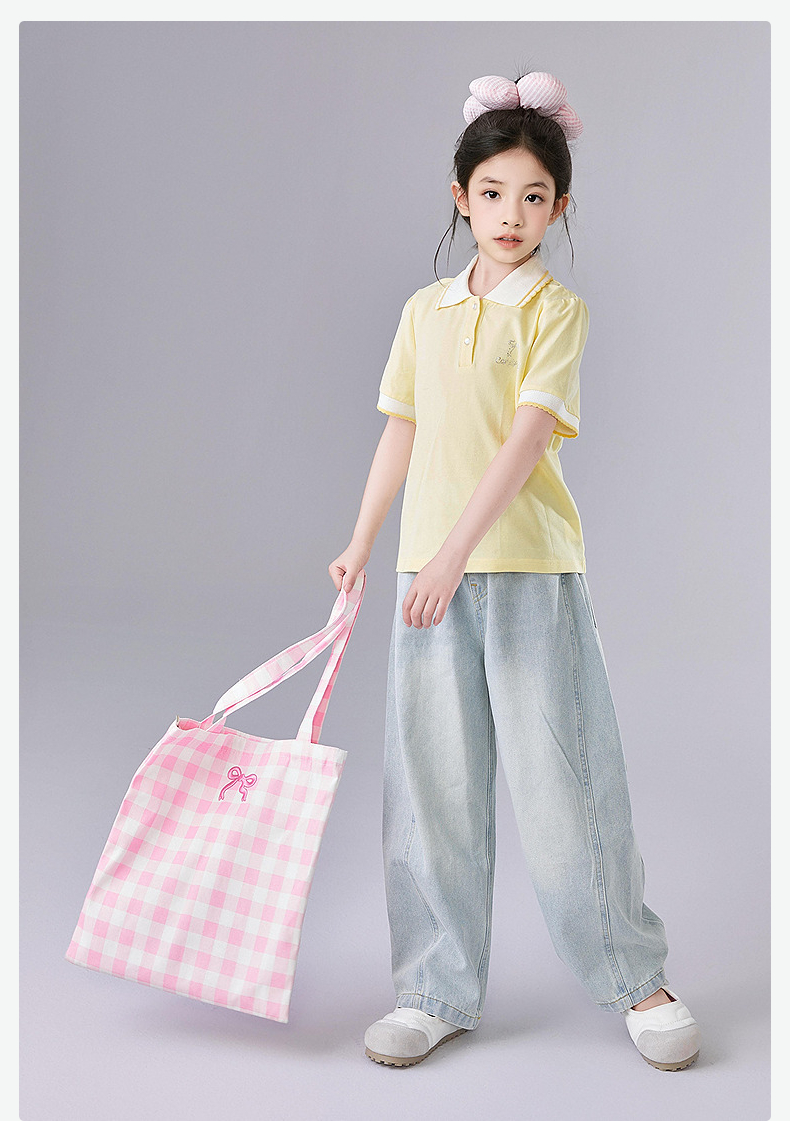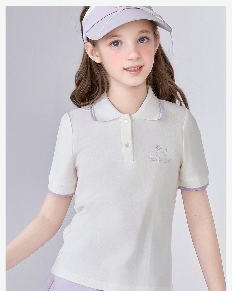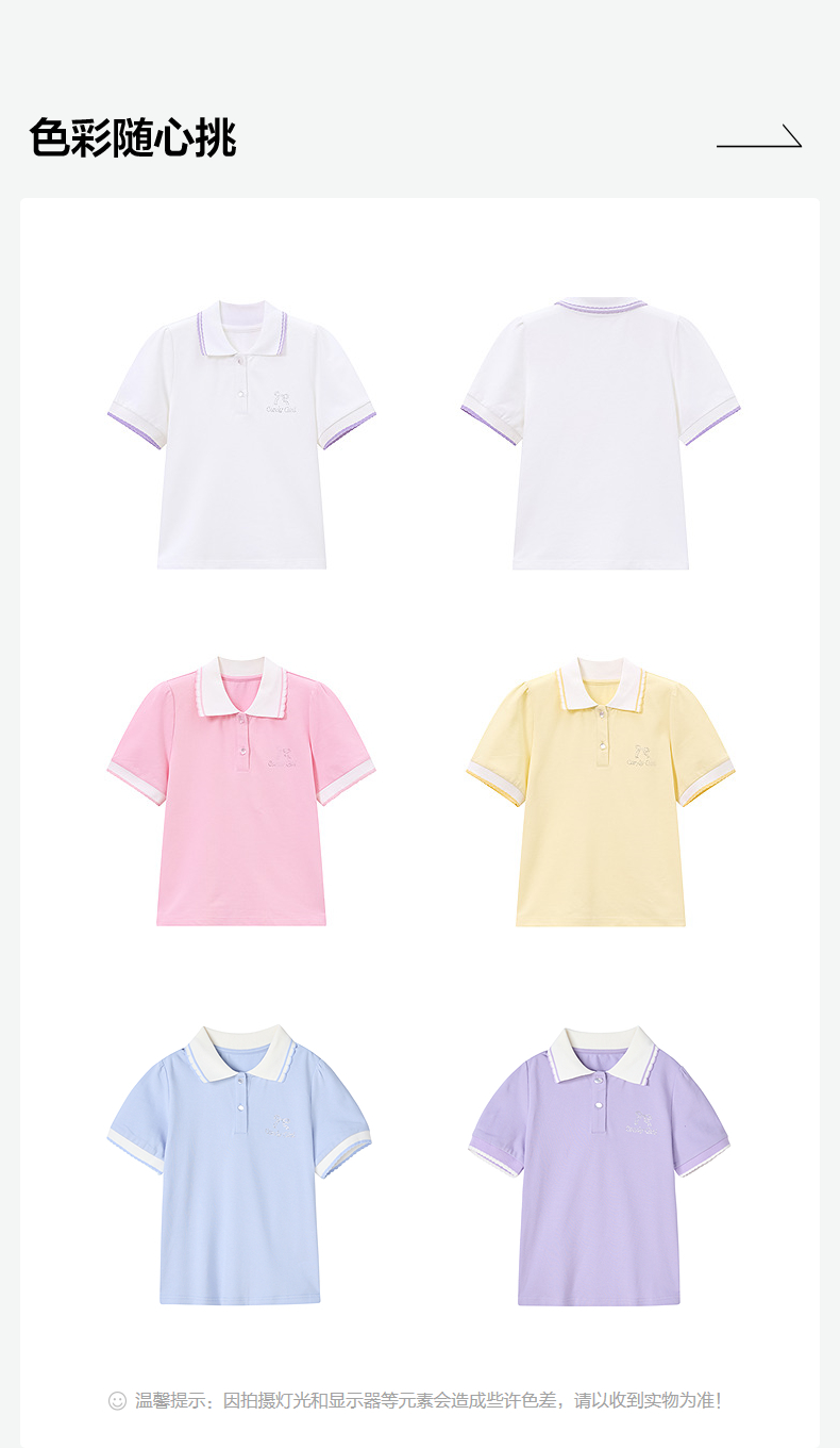 笛莎/Deesha 【松饼熊】2026年夏季新款女童甜美学院风娃娃领短袖T恤