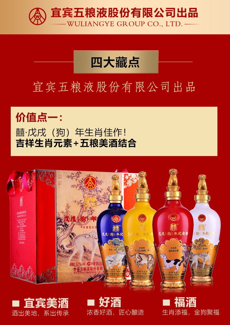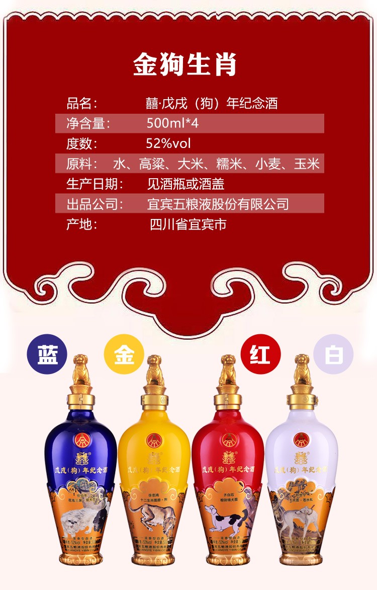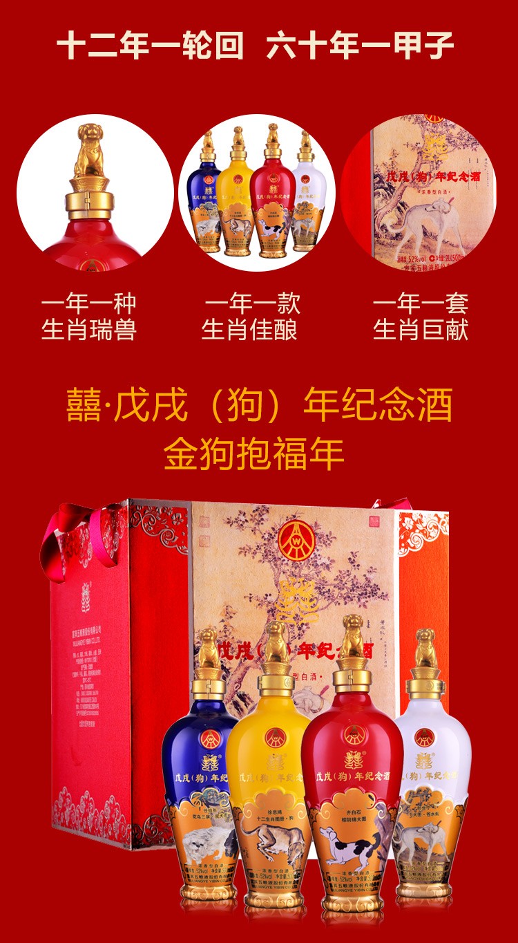 52五粮液戊戌(狗)年纪念酒 500ml×4