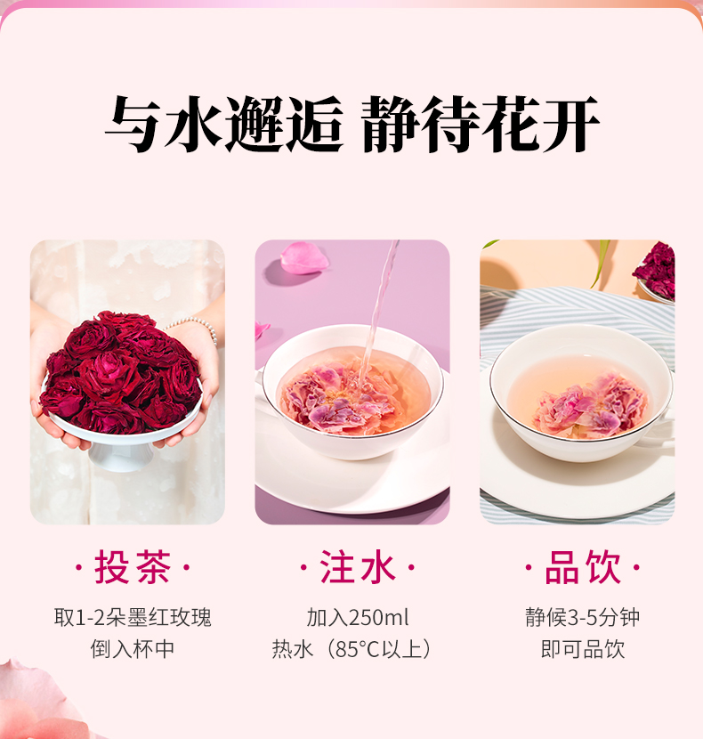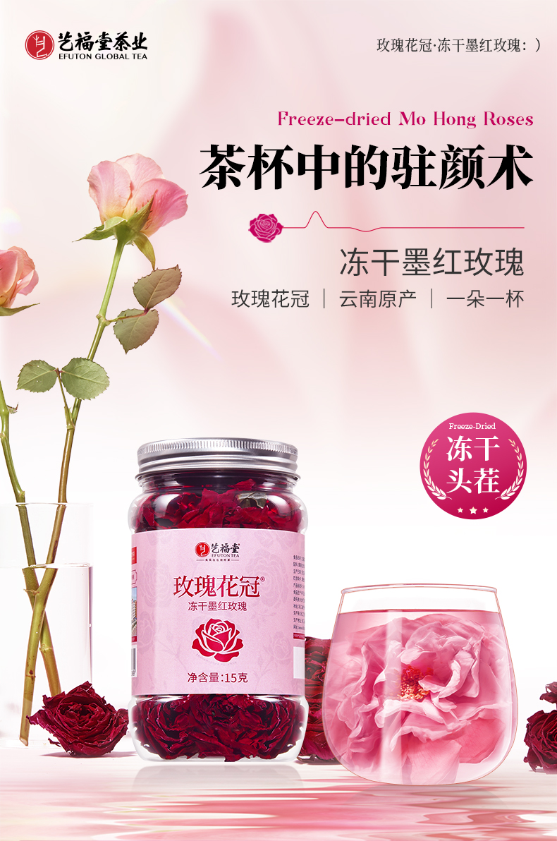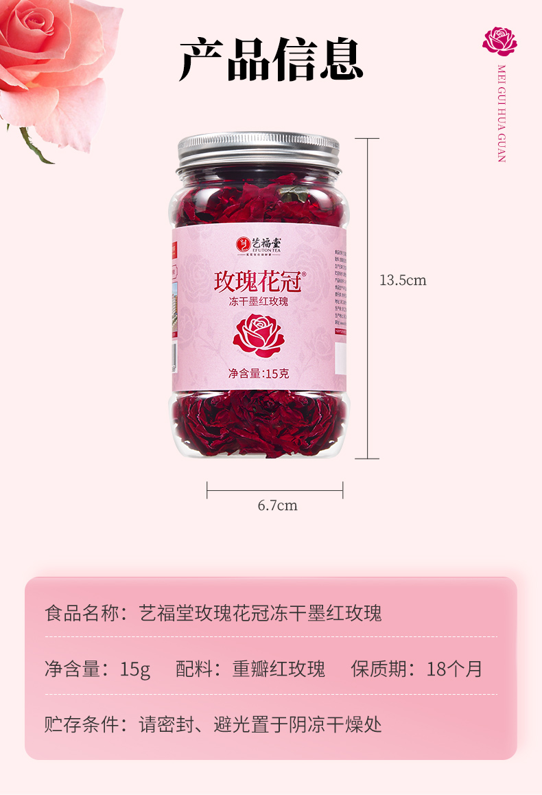 艺福堂玫瑰花冠冻干墨红玫瑰15g/罐
