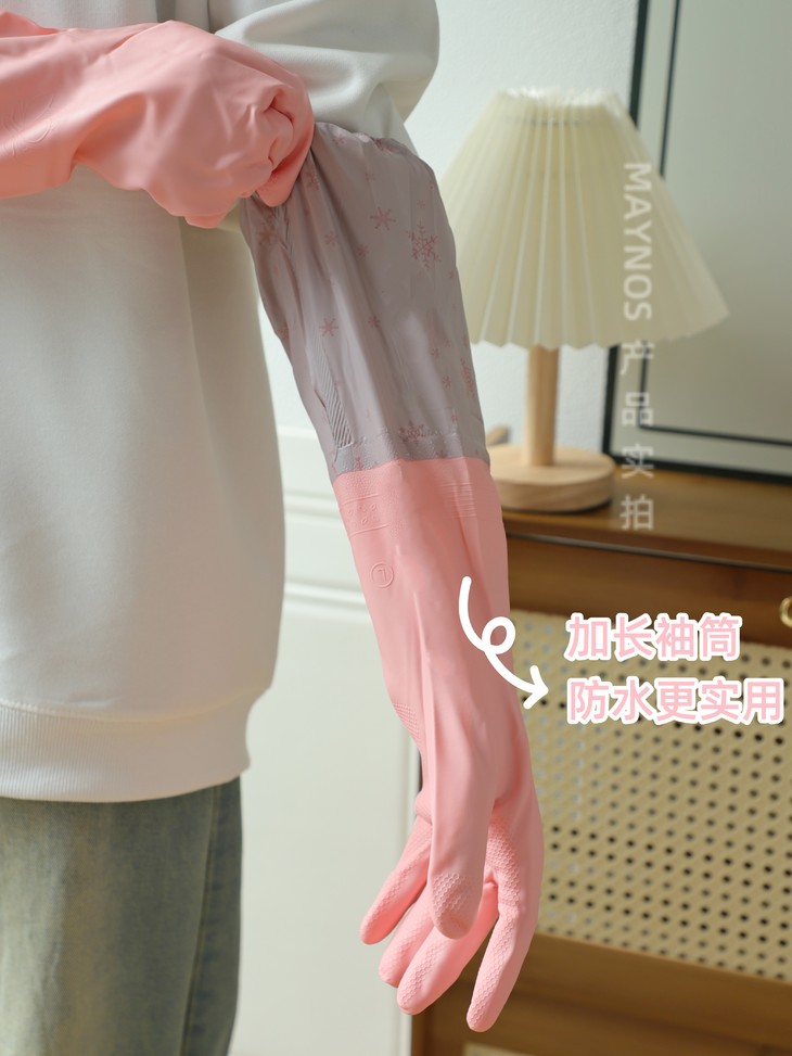 【MAYNOS加长款加绒家务手套】加长袖筒设计,穿戴不易掉