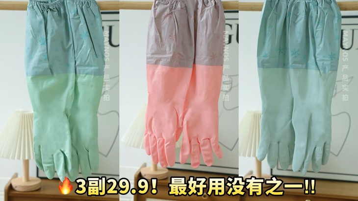 【MAYNOS加长款加绒家务手套】升级款品质,加绒加厚加长,优质PVC材料,安全无异味,贴心细节设计,耐磨防滑防水防油,某宝1双29元,今日29.9到手3双!经久耐用,使用寿命超长!
