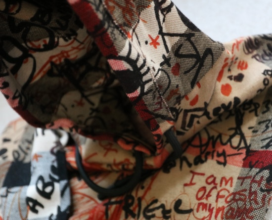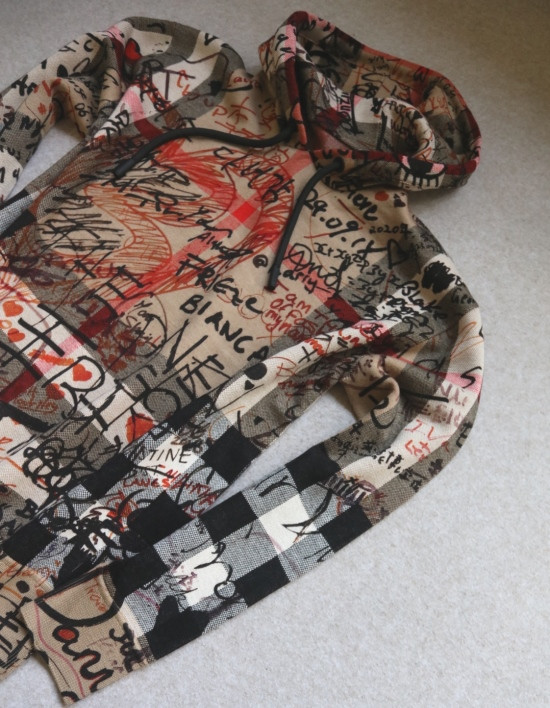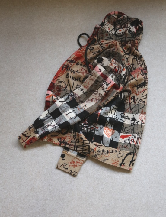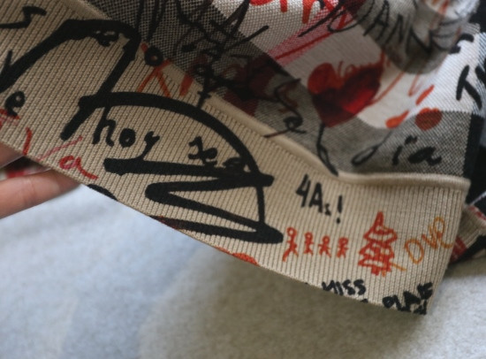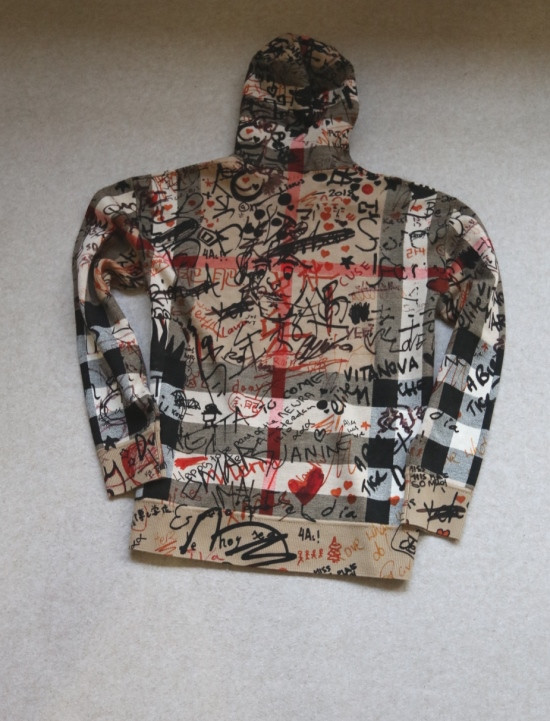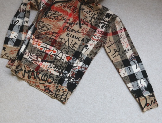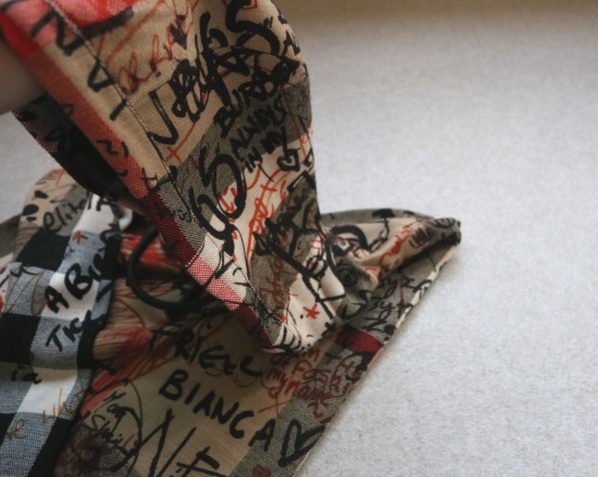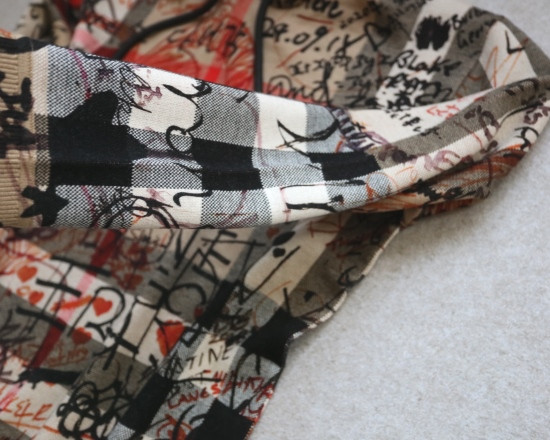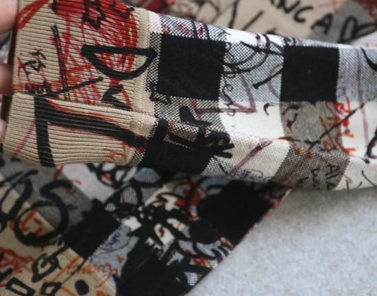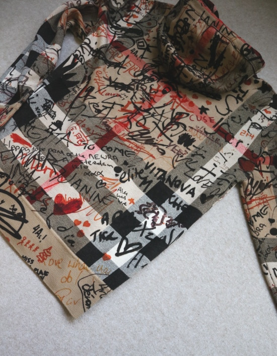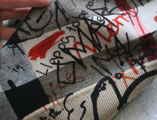 格纹 都是提织出来的 涂鸦 是在表层进行的数码印染 各路明星的草写签名
