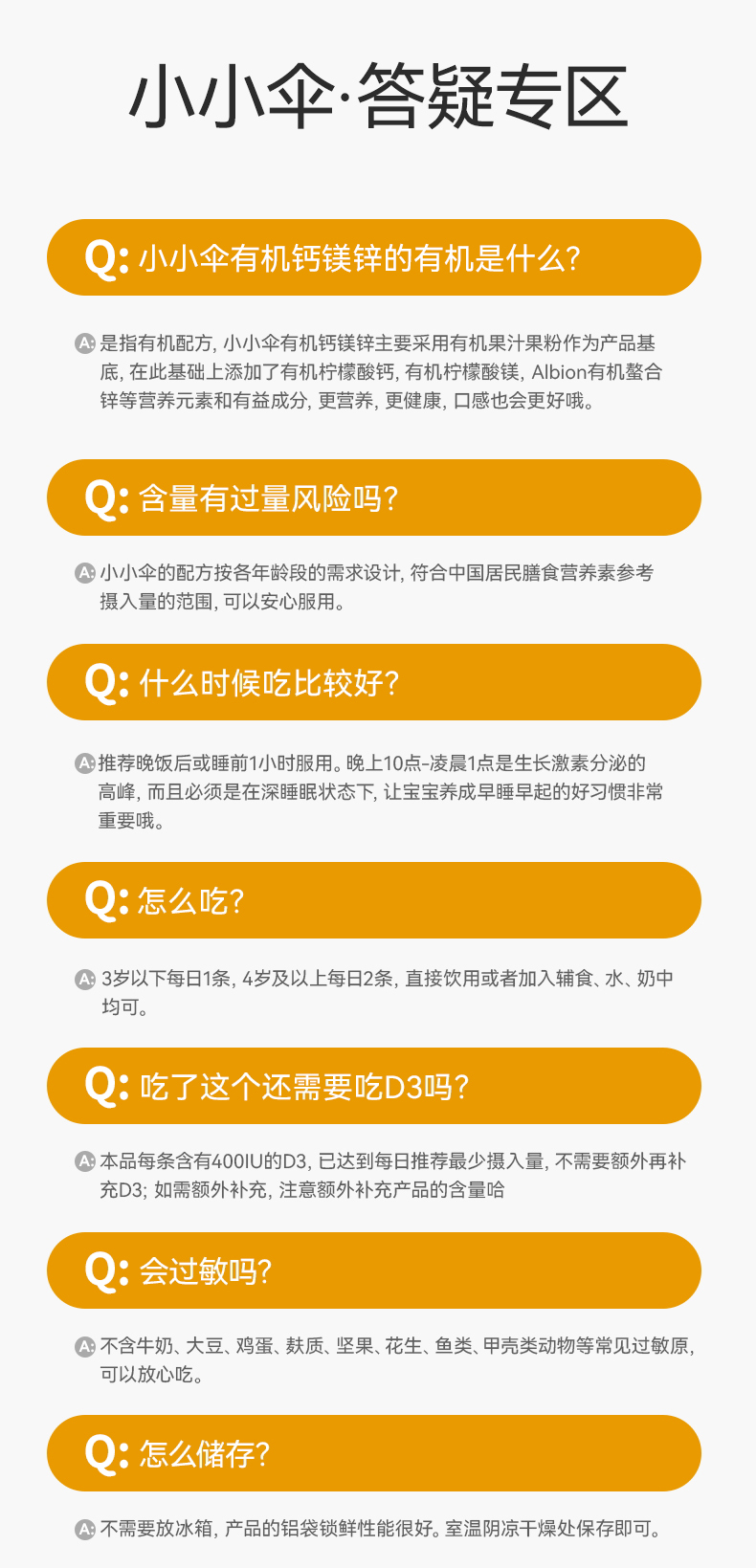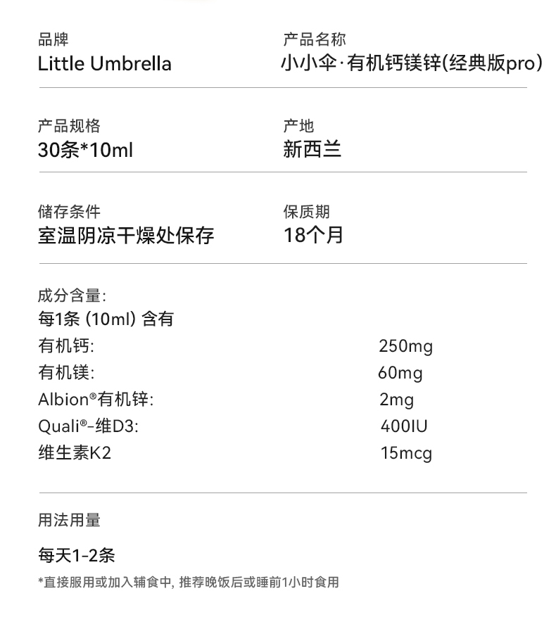 效期至27年5月【央视推荐】小小伞液体有机钙镁锌Pro10m*30条/盒《赠品链接》