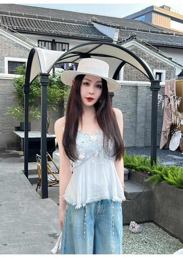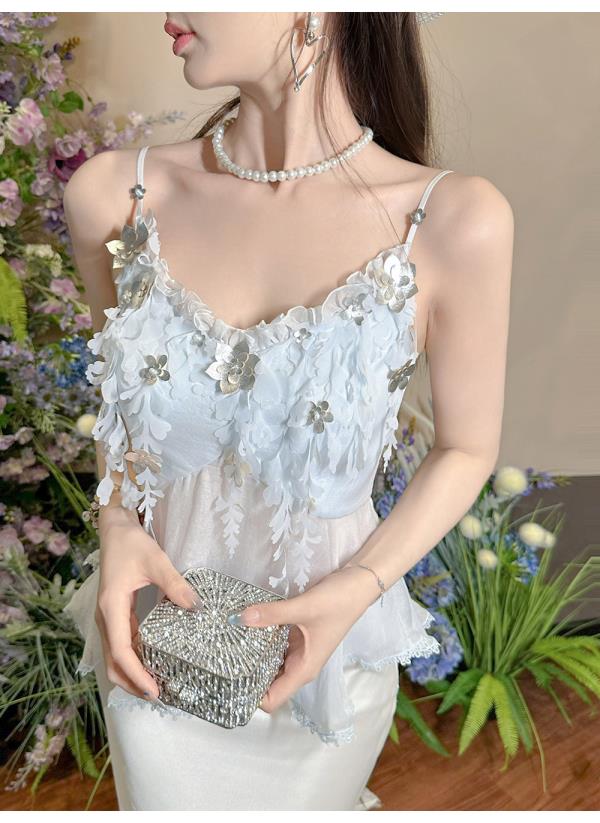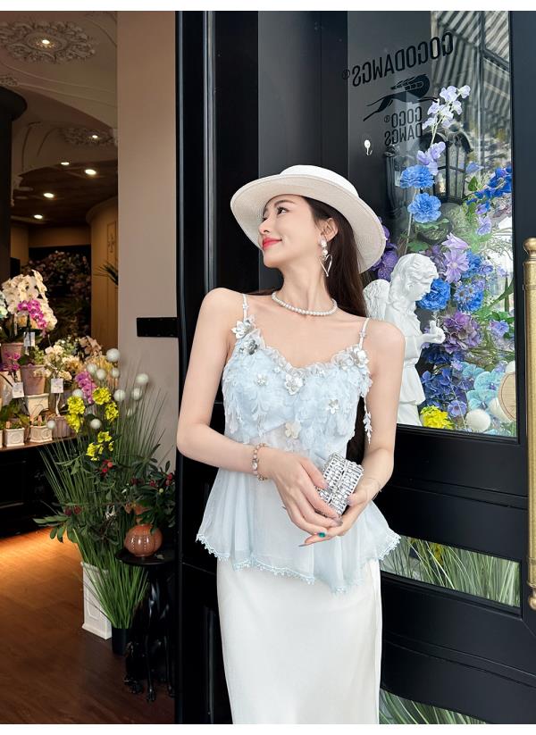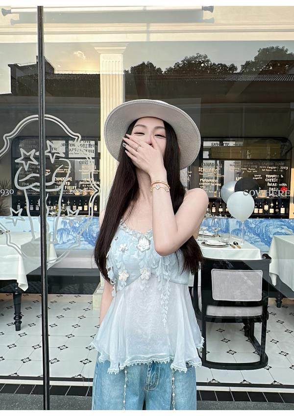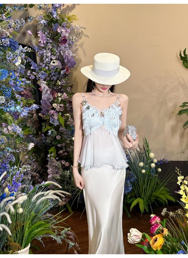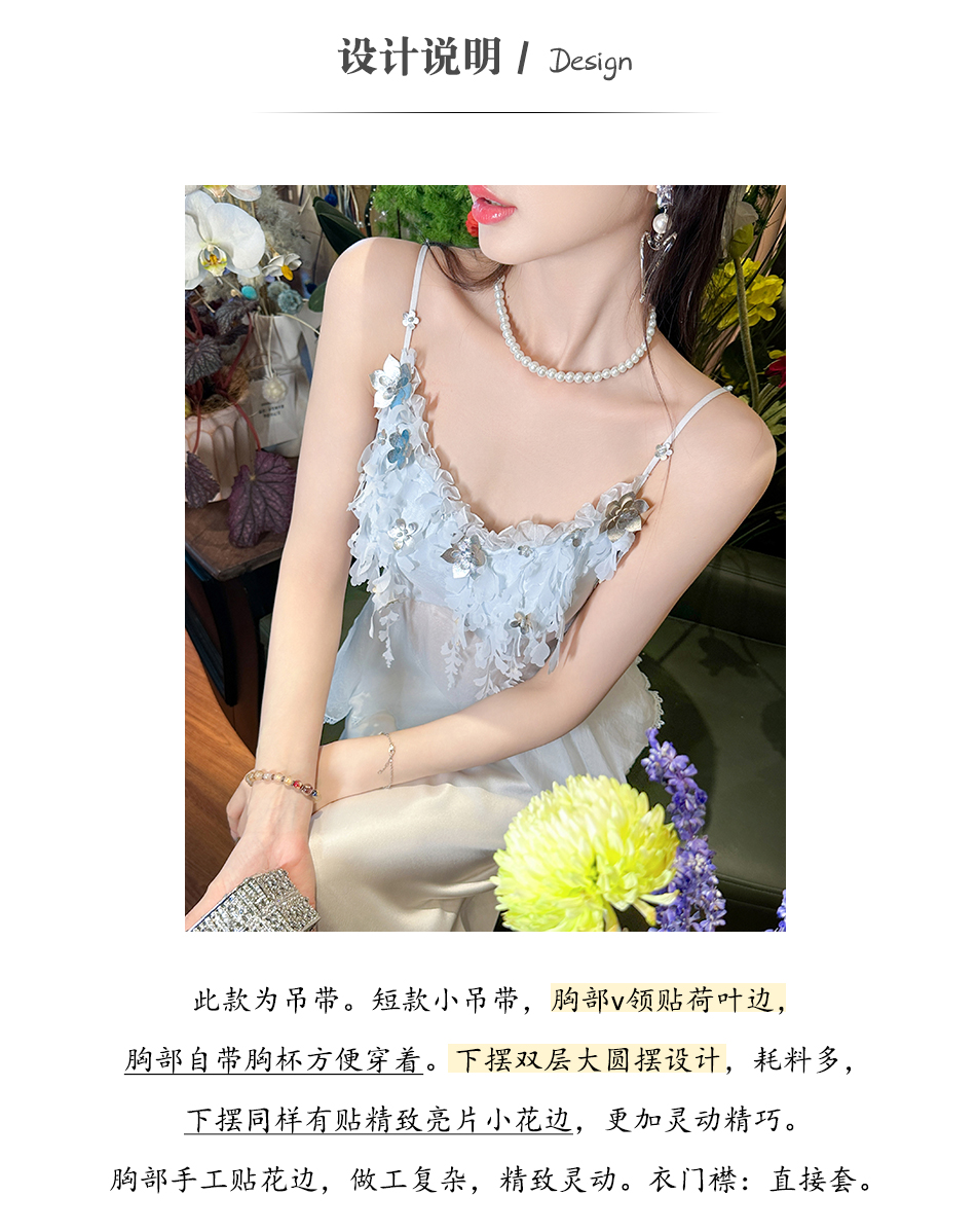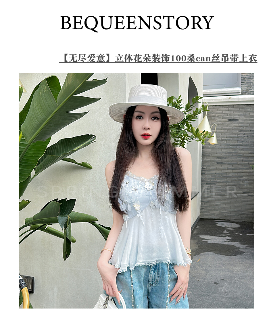 BeQueenStory【无尽爱意】花朵装饰100桑蚕丝自带胸垫吊带上衣