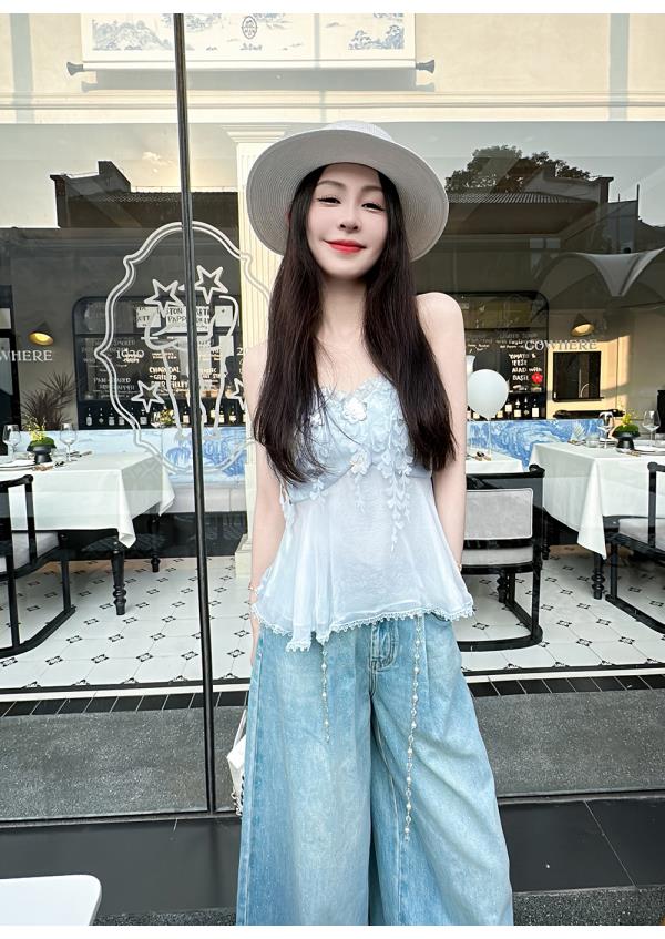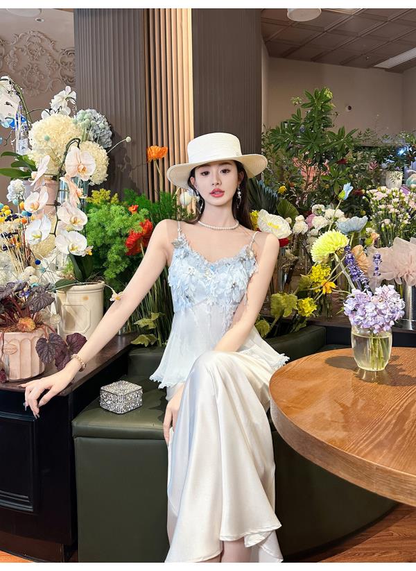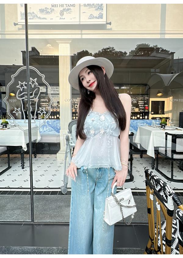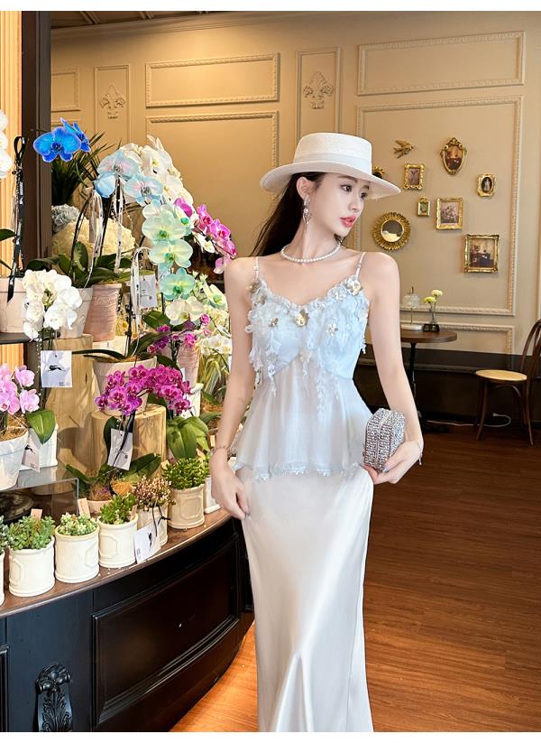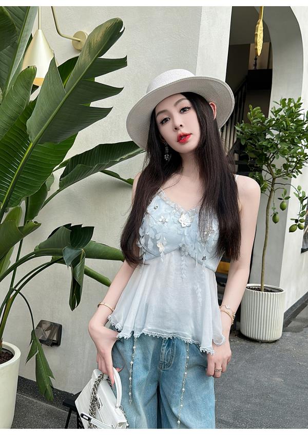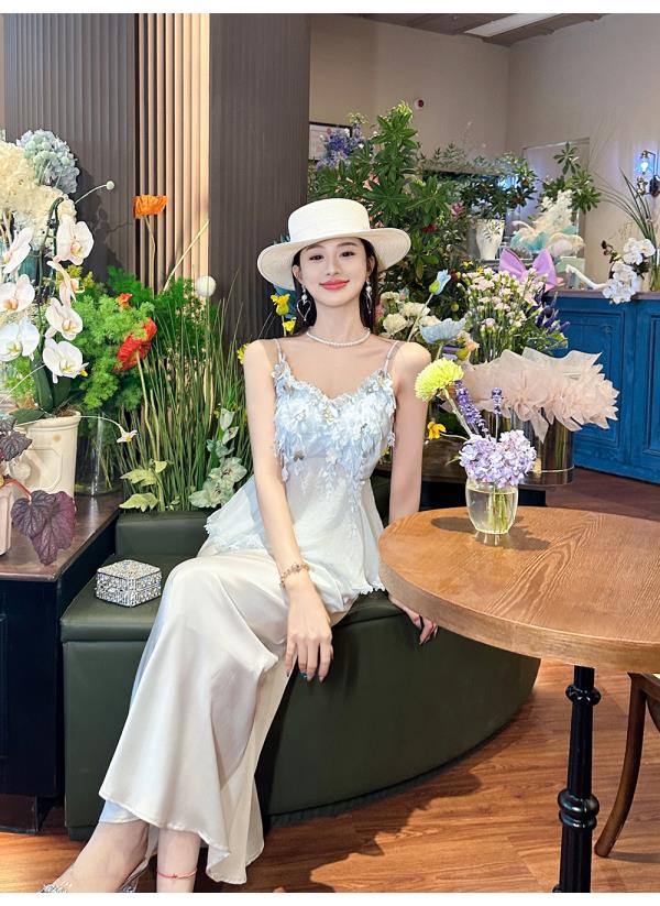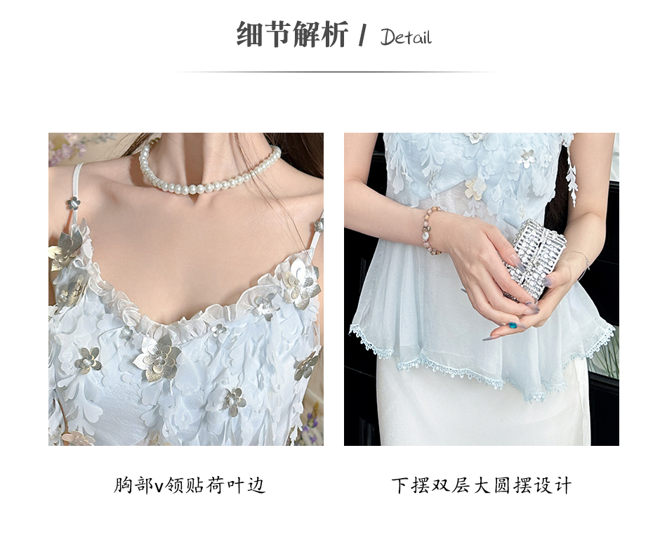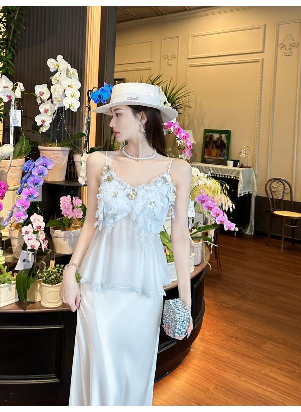 BeQueenStory【无尽爱意】花朵装饰100桑蚕丝自带胸垫吊带上衣