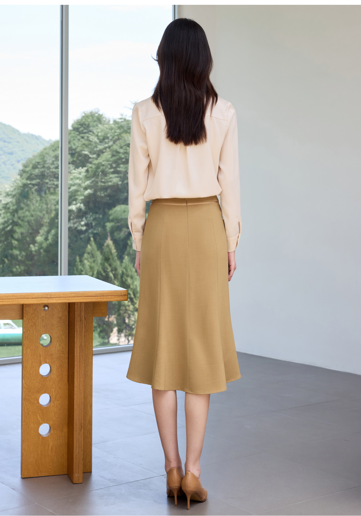 IWY/气质米杏色长袖衬衫套裙女正式场合接待职业装衬衣半裙套装24B591+25S789