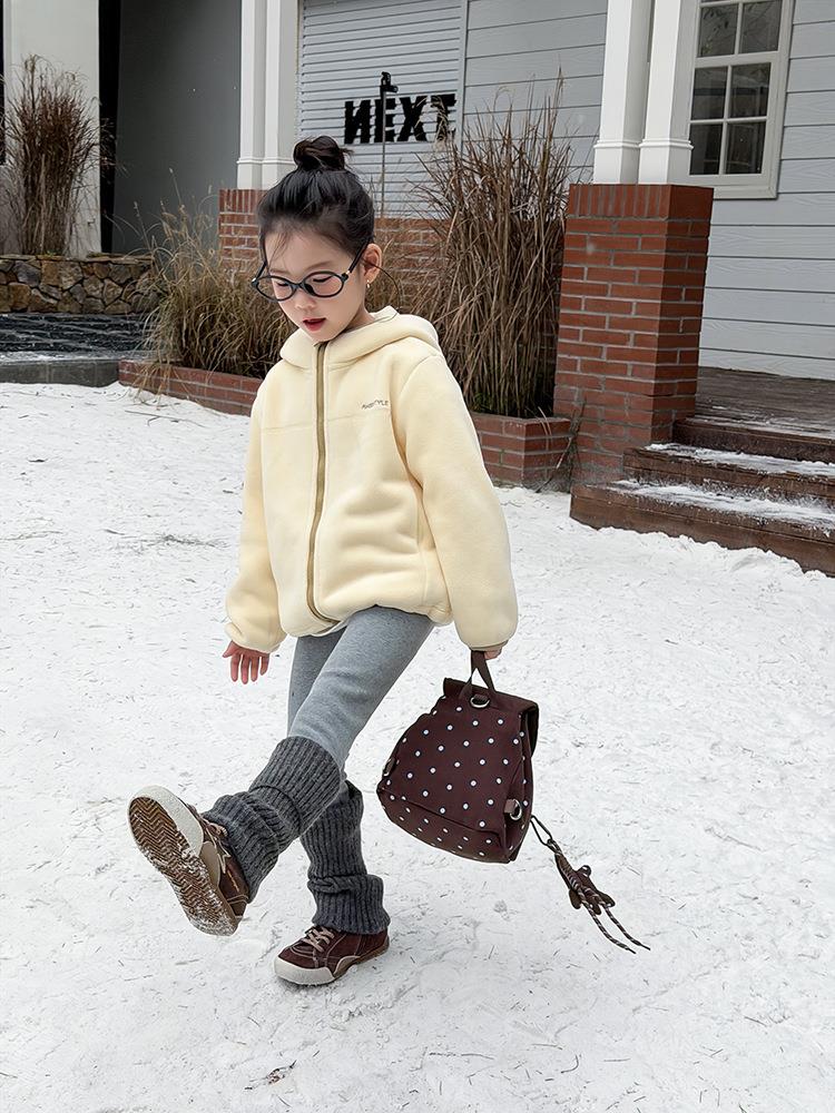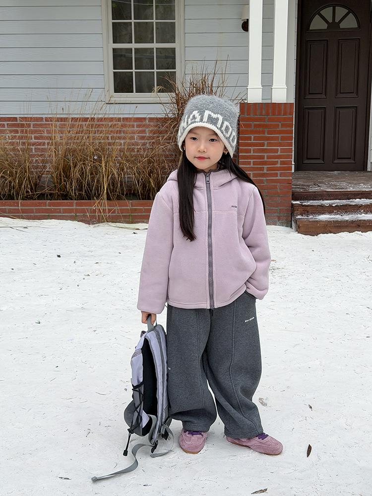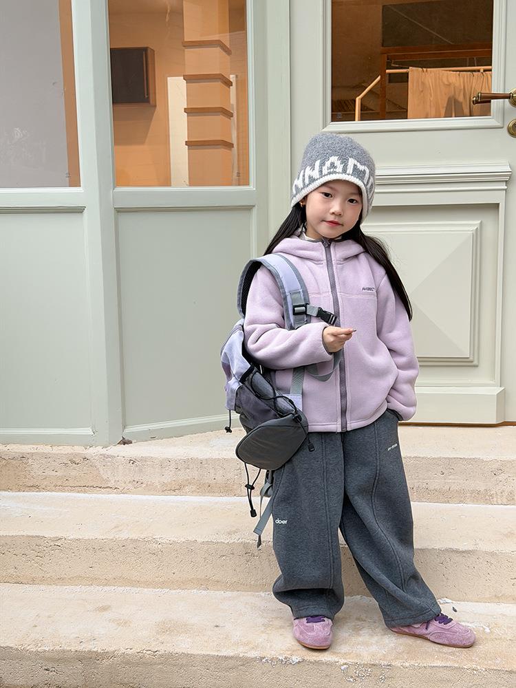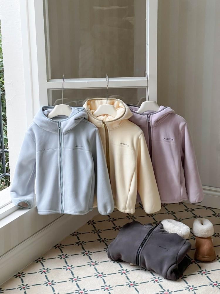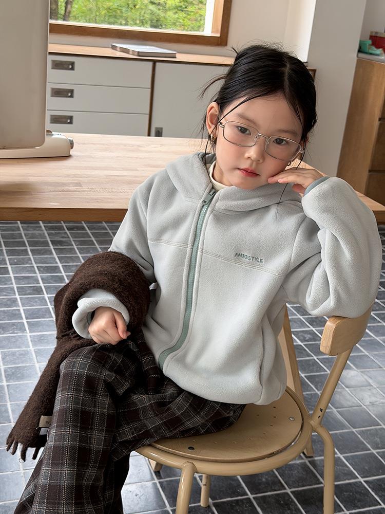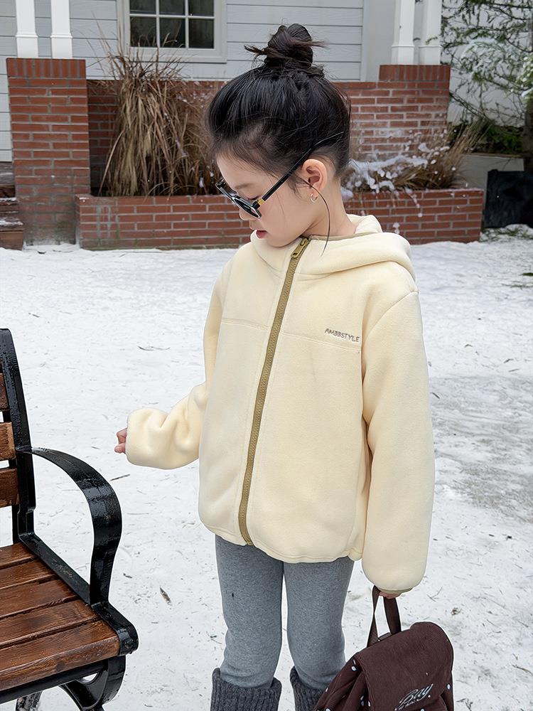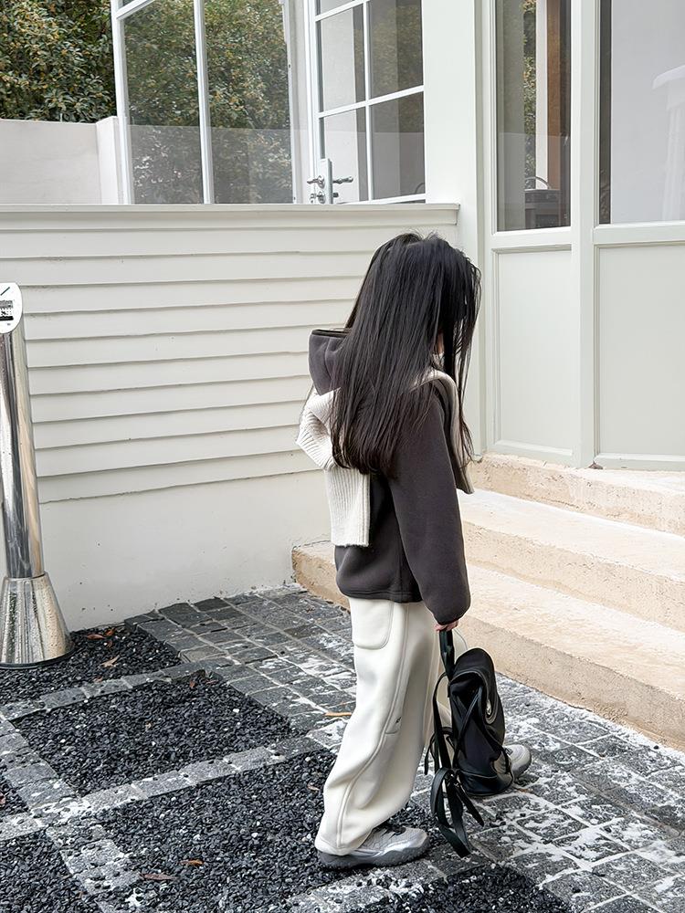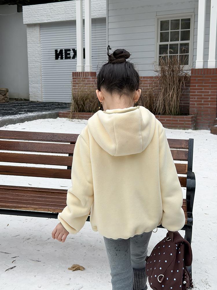 艾摩贝贝儿童冬季软而不压保暖休闲校园时髦卫衣软萌毛绒连帽外套