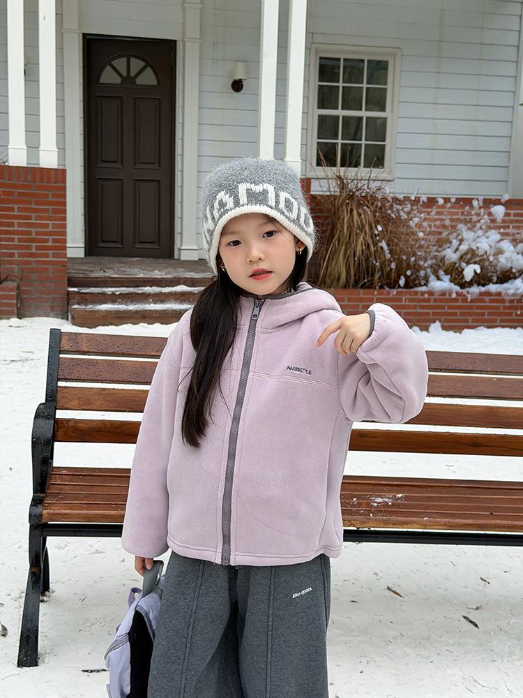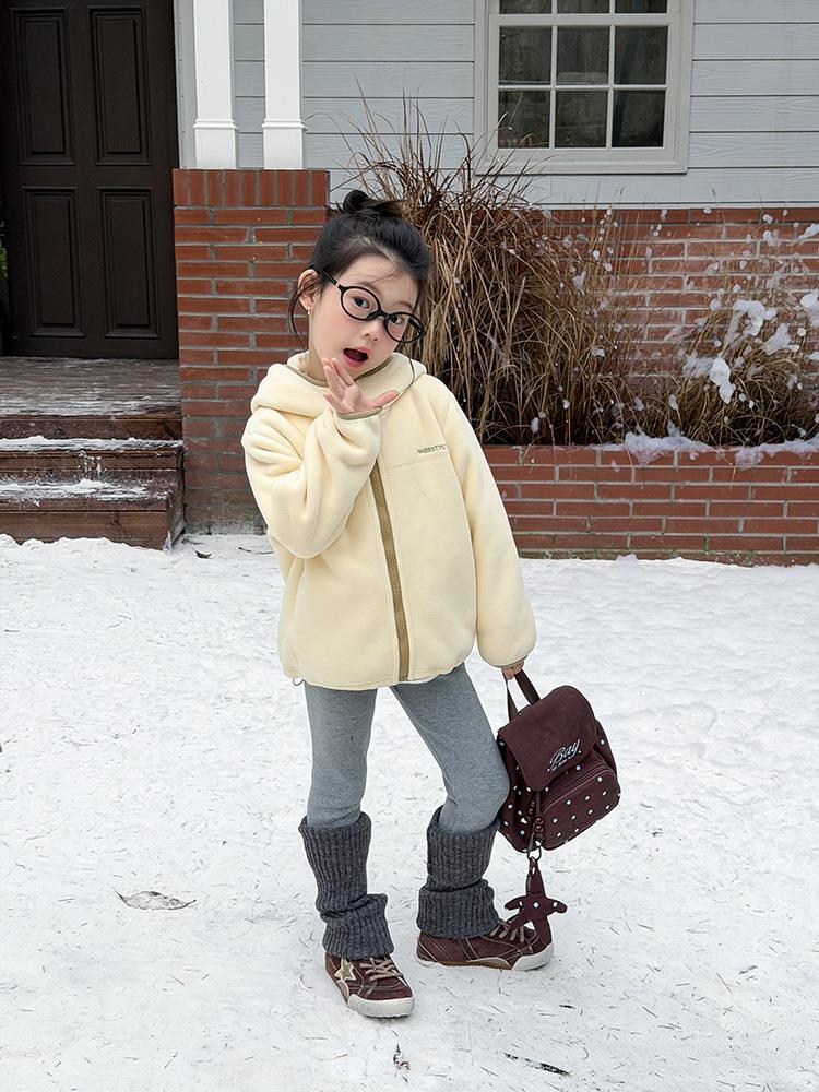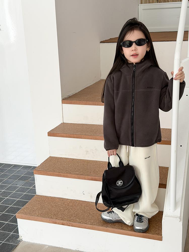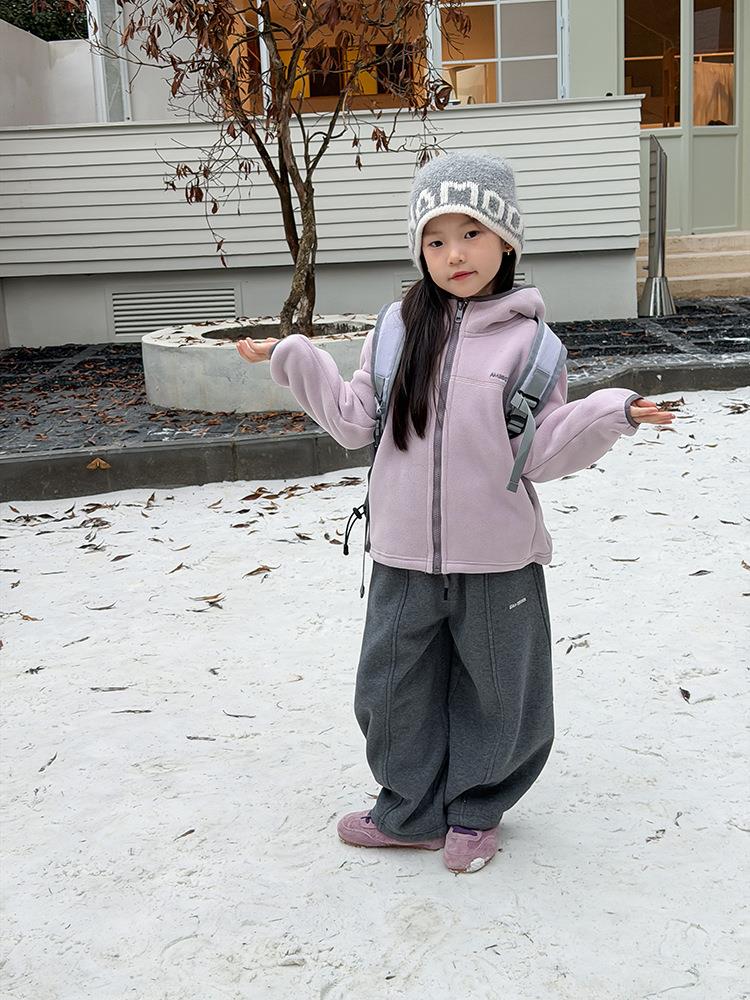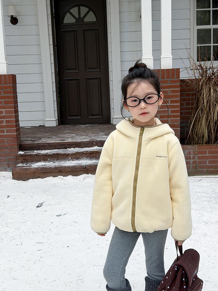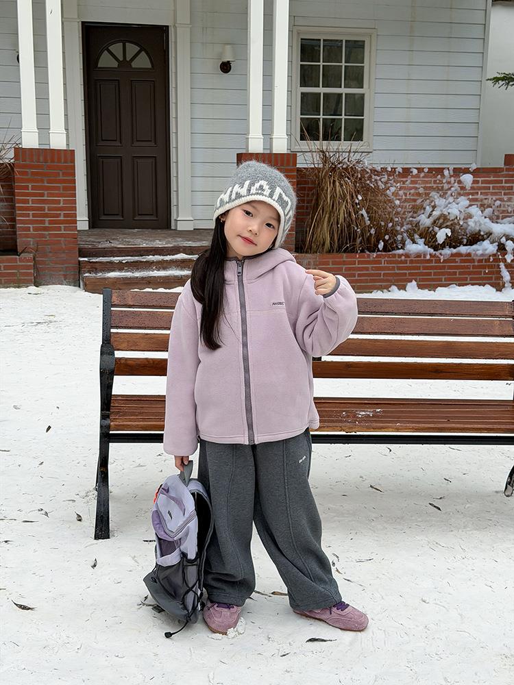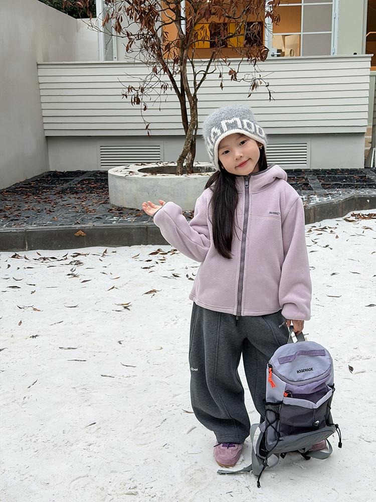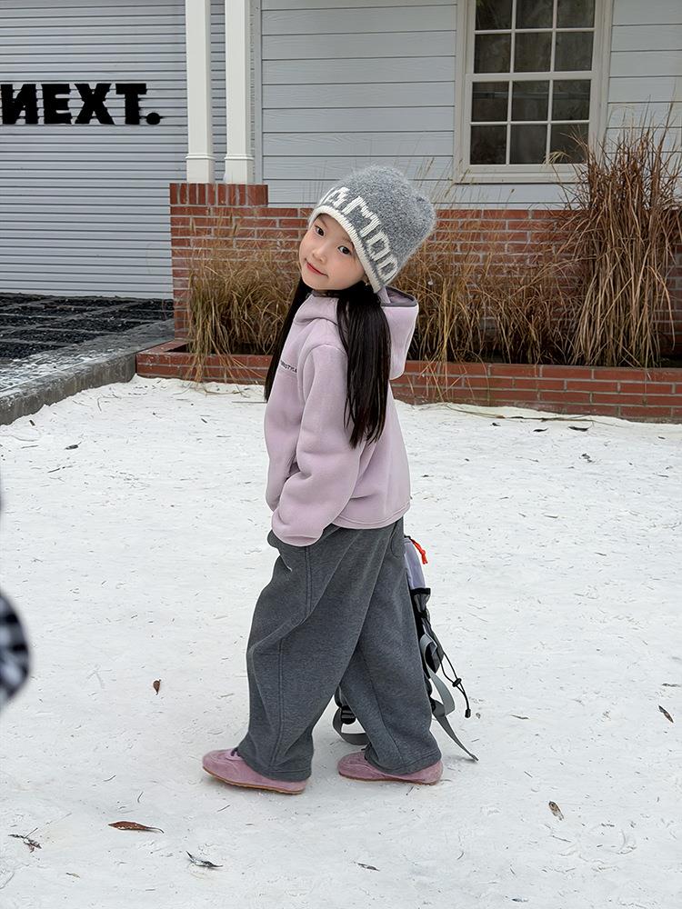 艾摩贝贝儿童冬季软而不压保暖休闲校园时髦卫衣软萌毛绒连帽外套