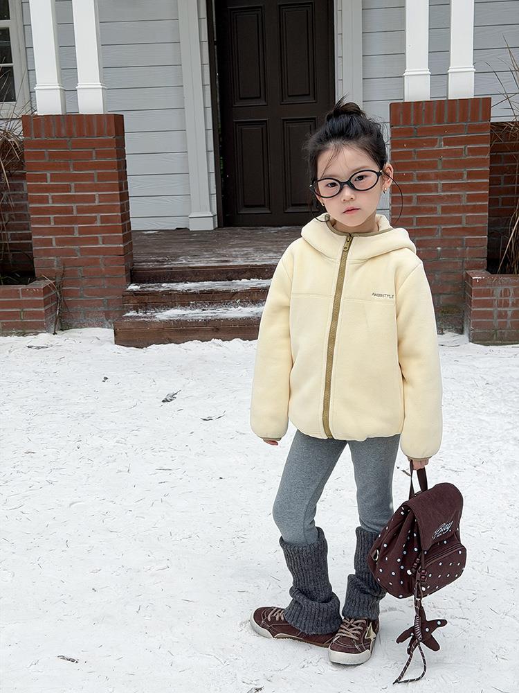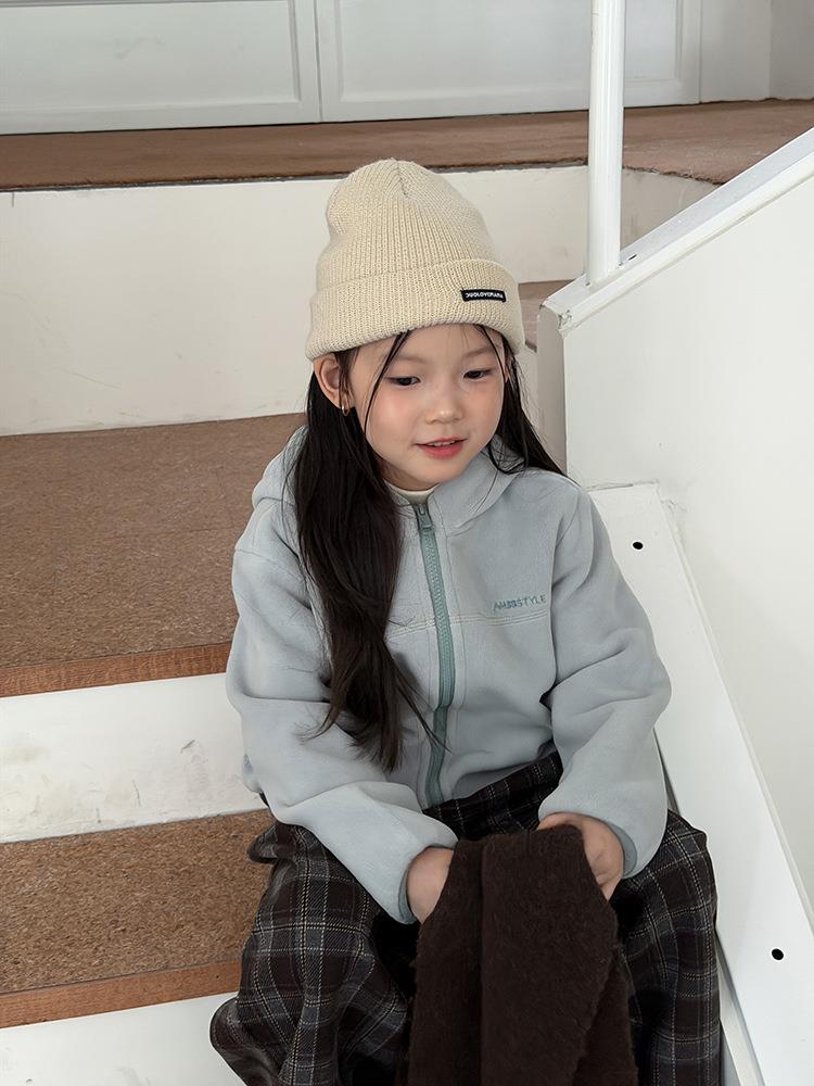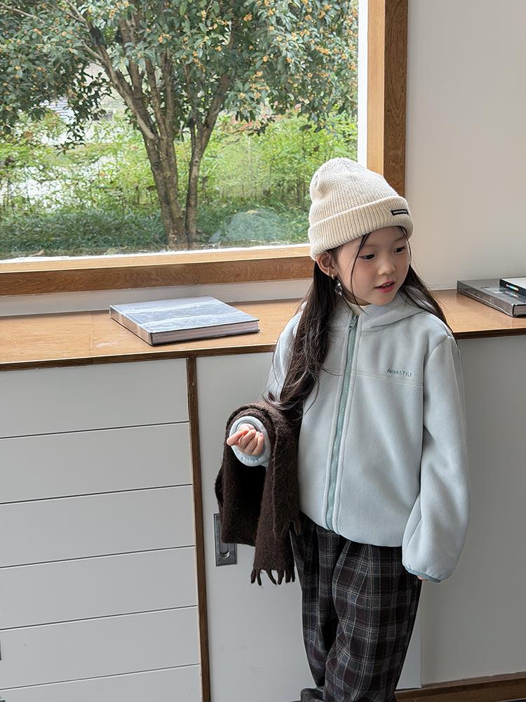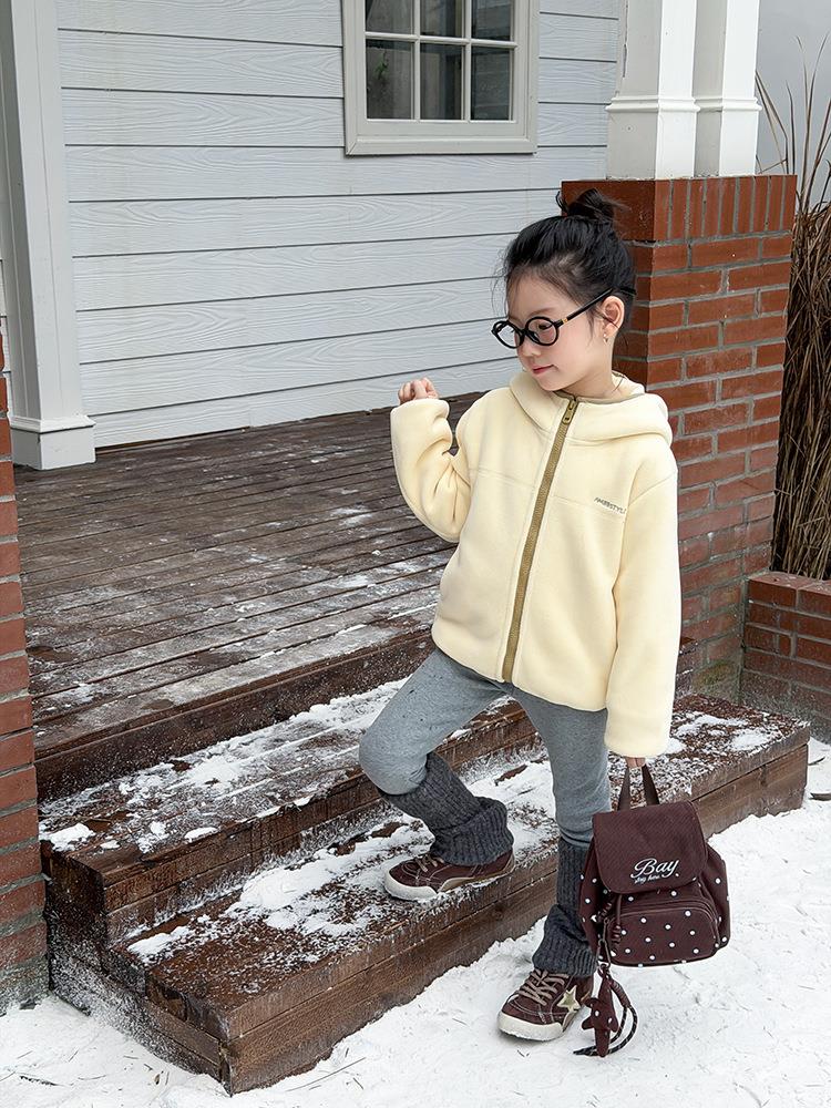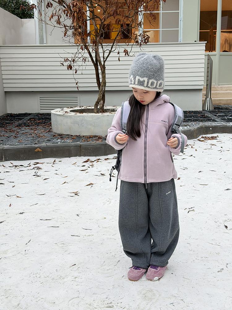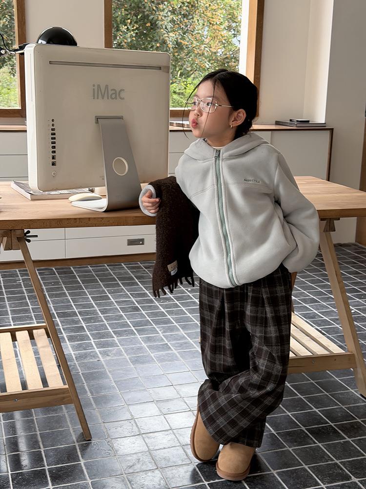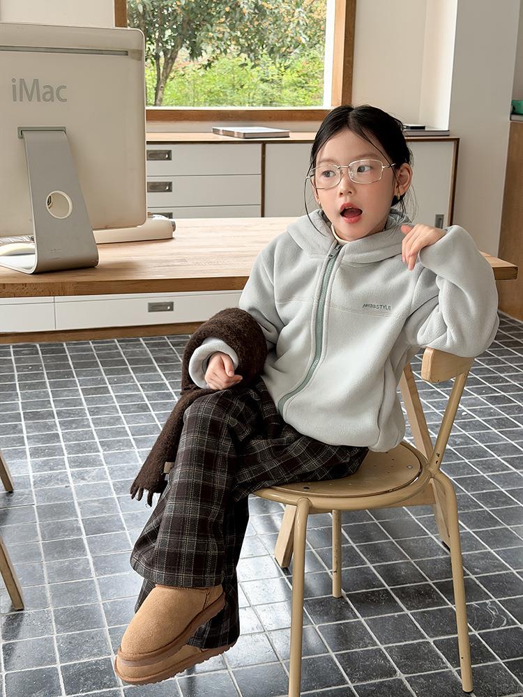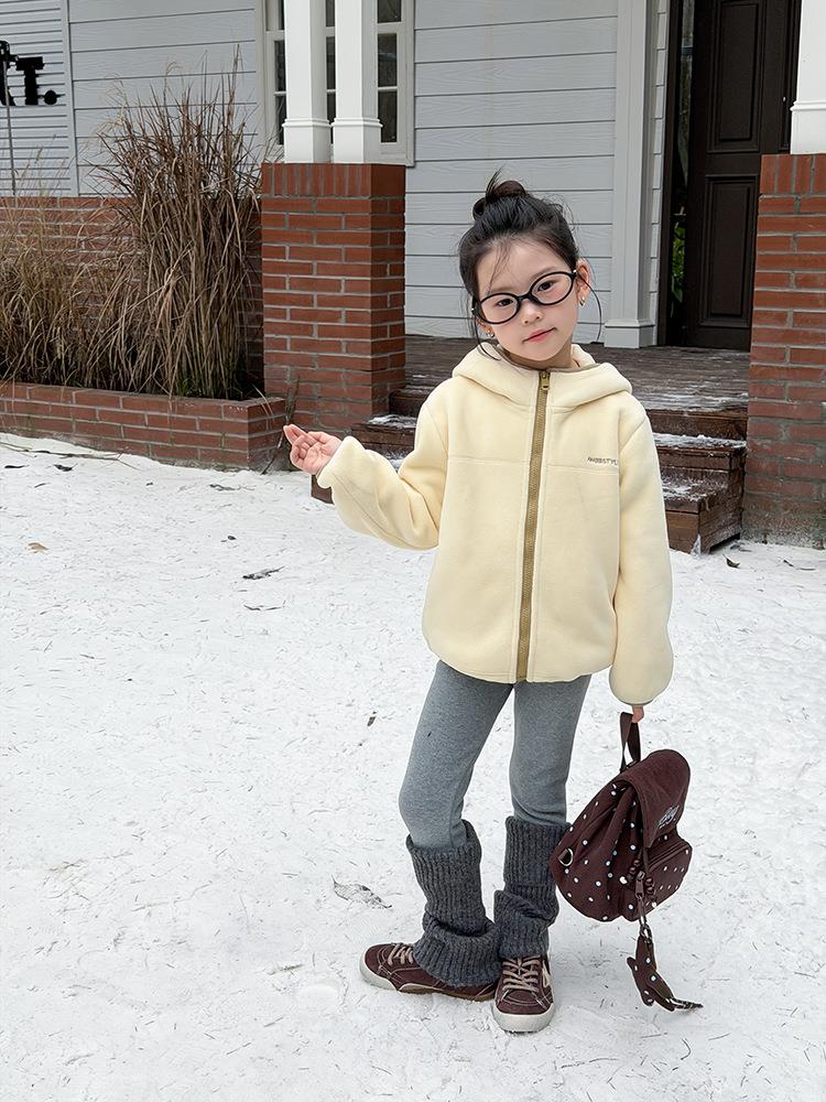 艾摩贝贝儿童冬季软而不压保暖休闲校园时髦卫衣软萌毛绒连帽外套